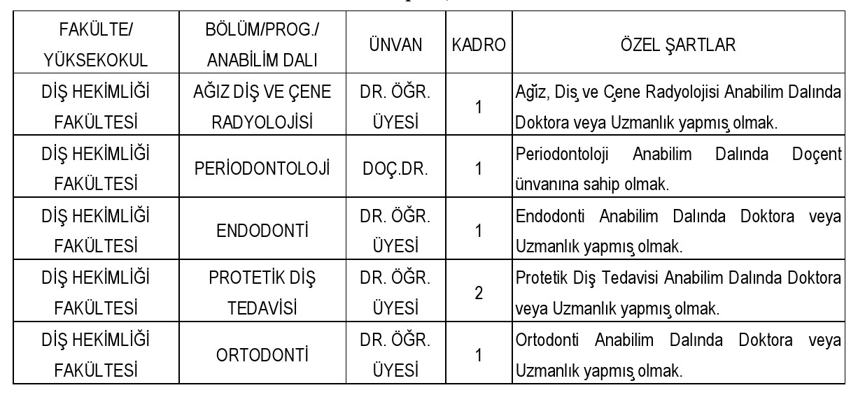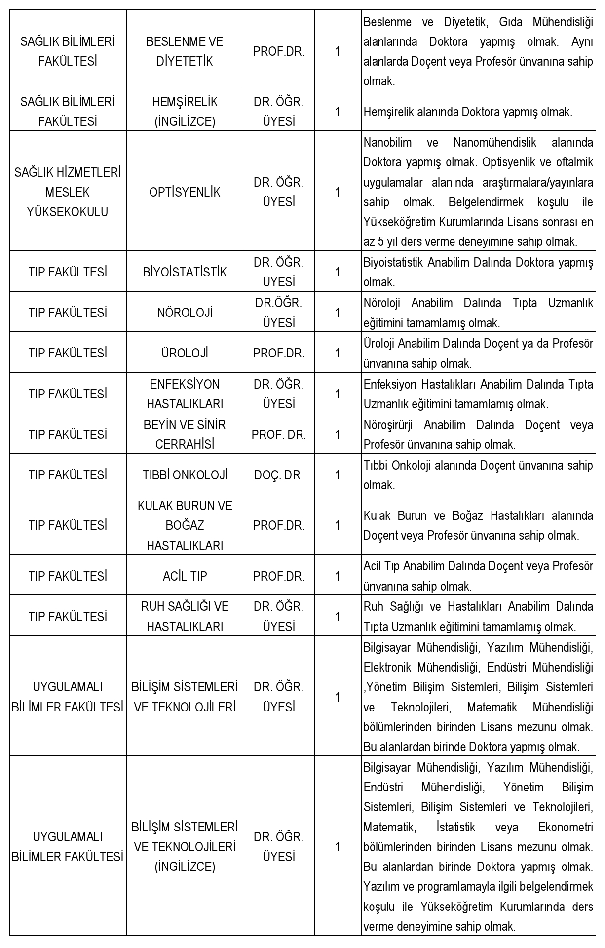 ÖĞRETİM ÜYESİ ALIM İLANI