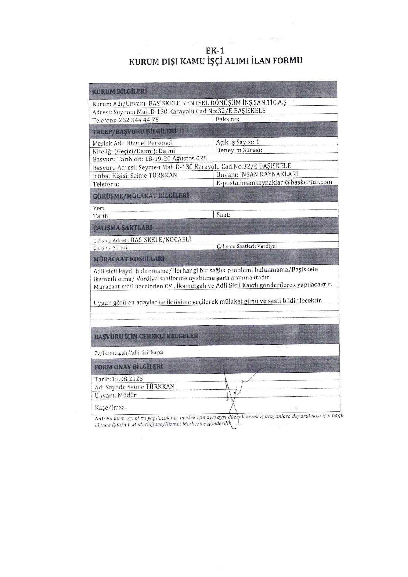 Başiskele Kentsel Dönüşüm 5 İşçi Alacak. Son başvuru tarihi 20 ağustos 2025