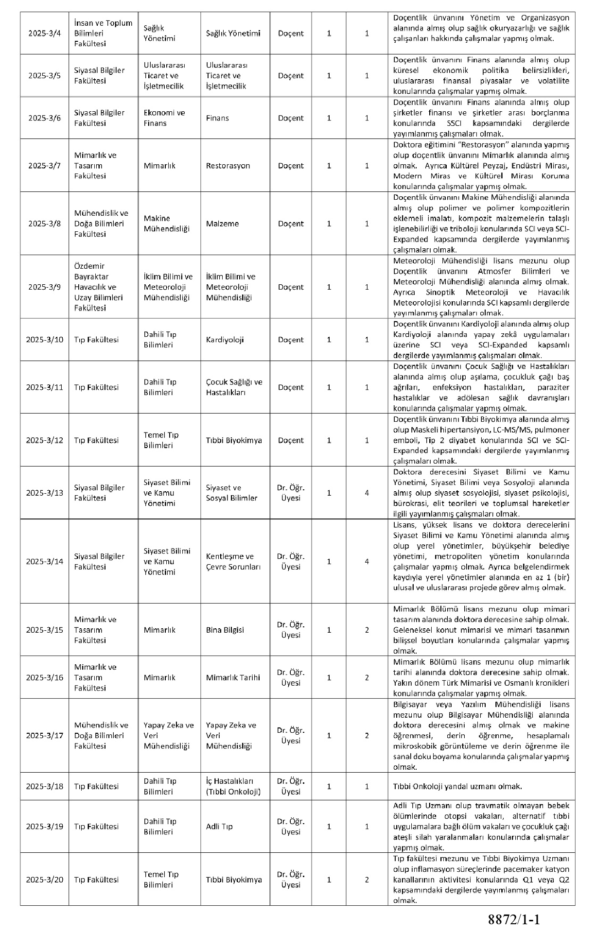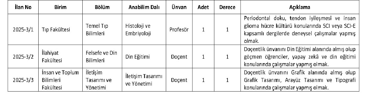 ÖĞRETİM ÜYESİ ALIM İLANI