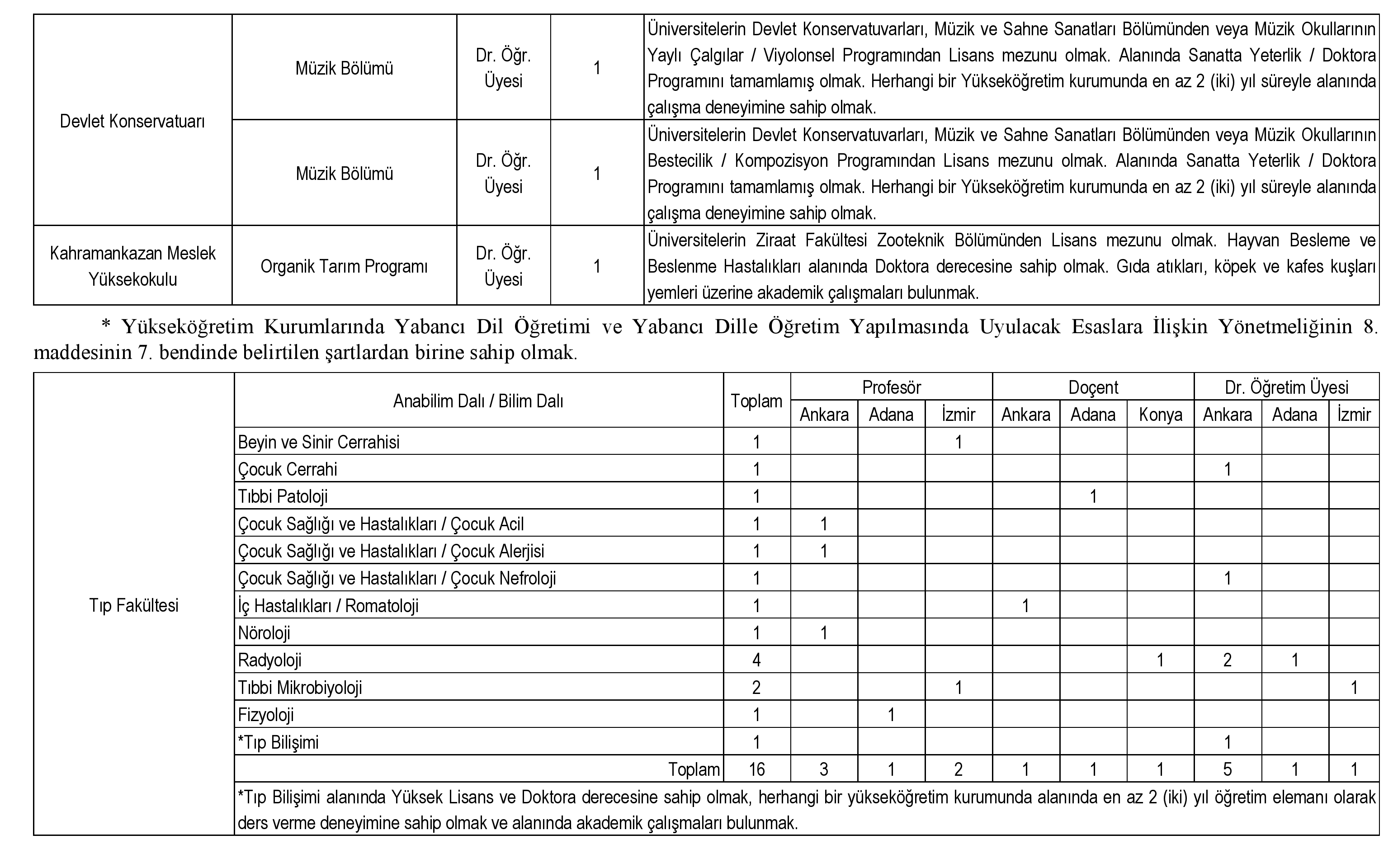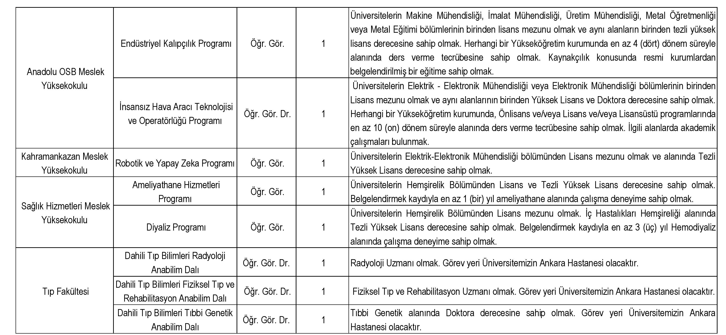- Öğretim üyesi dışındaki öğretim elemanı kadrolarına naklen veya açıktan yapılan her türlü atamada atama yapılacak programın eğitimine hangi ÖSS puanı ile öğrenci alınıyorsa o alanda ALES'ten en az 70 puan almış olmak (Doktorasını tamamlamış olanlardan ALES notu istenmeyecektir).