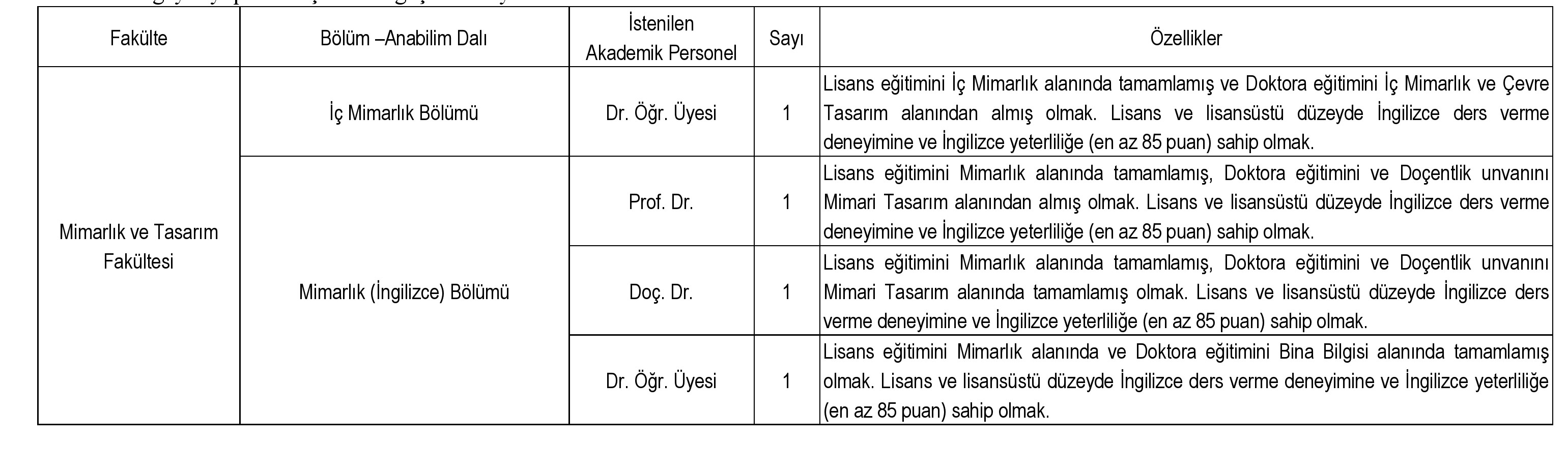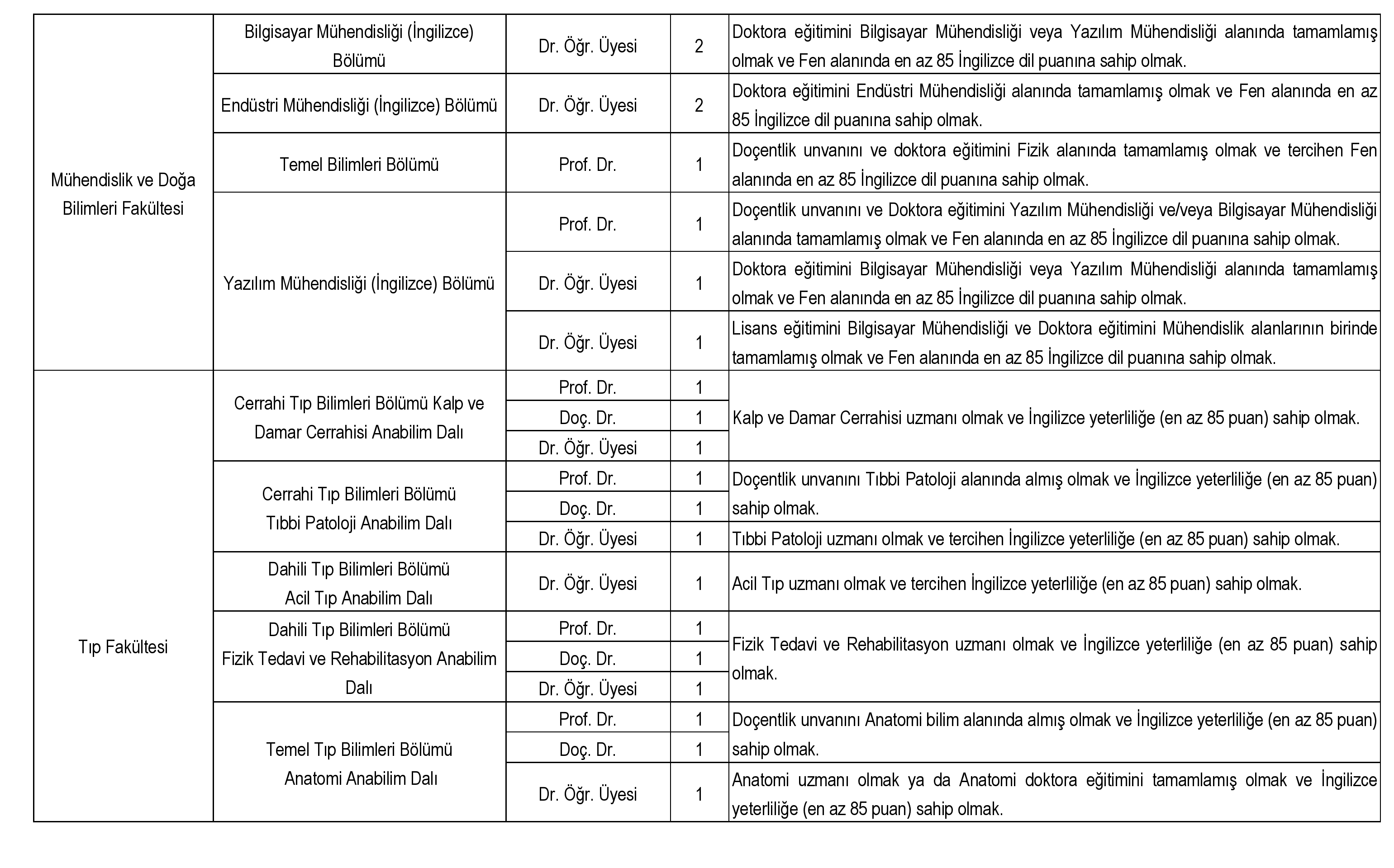 ÖĞRETİM ÜYESİ ALIM İLANI