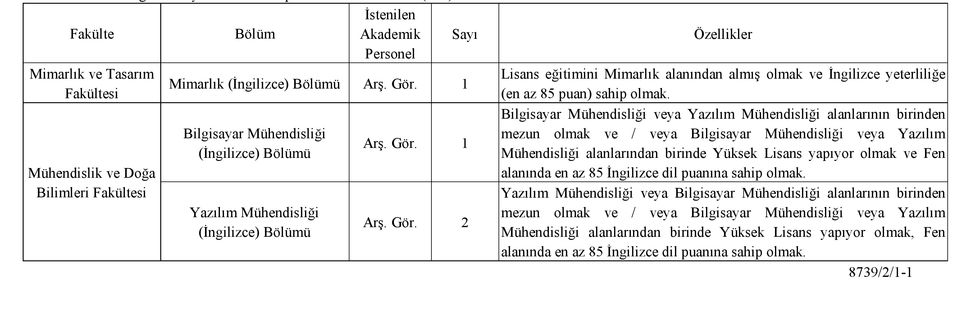 Üniversitemizin aşağıda gösterilen akademik birimlerine 2547 sayılı Kanun ve T.C. Maltepe Üniversitesi Akademik Yükseltilme ve Atanma Yönergesi hükümleri uyarınca tam zamanlı statüde öğretim üyeleri alınacaktır.