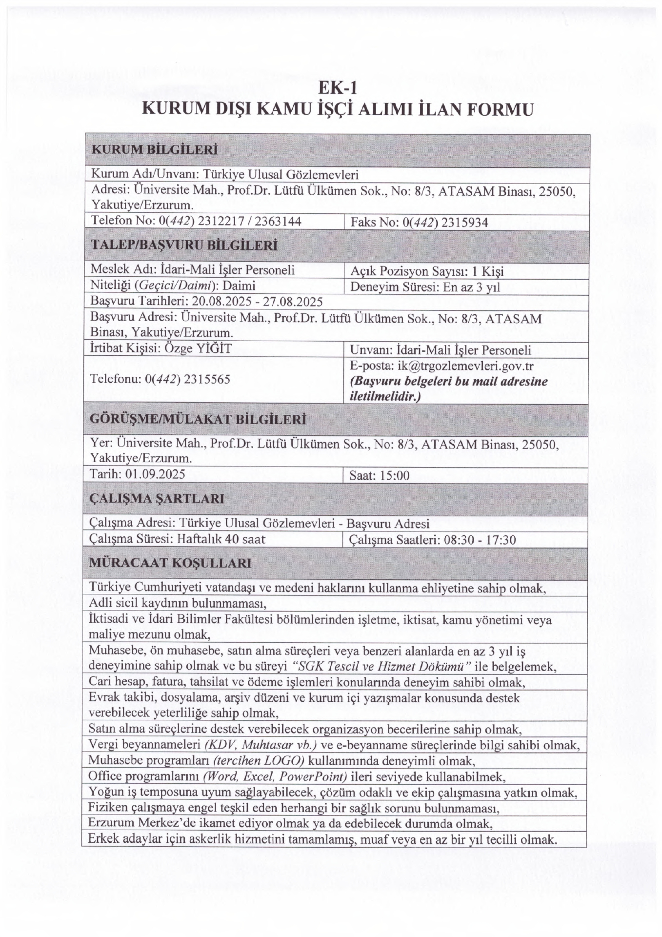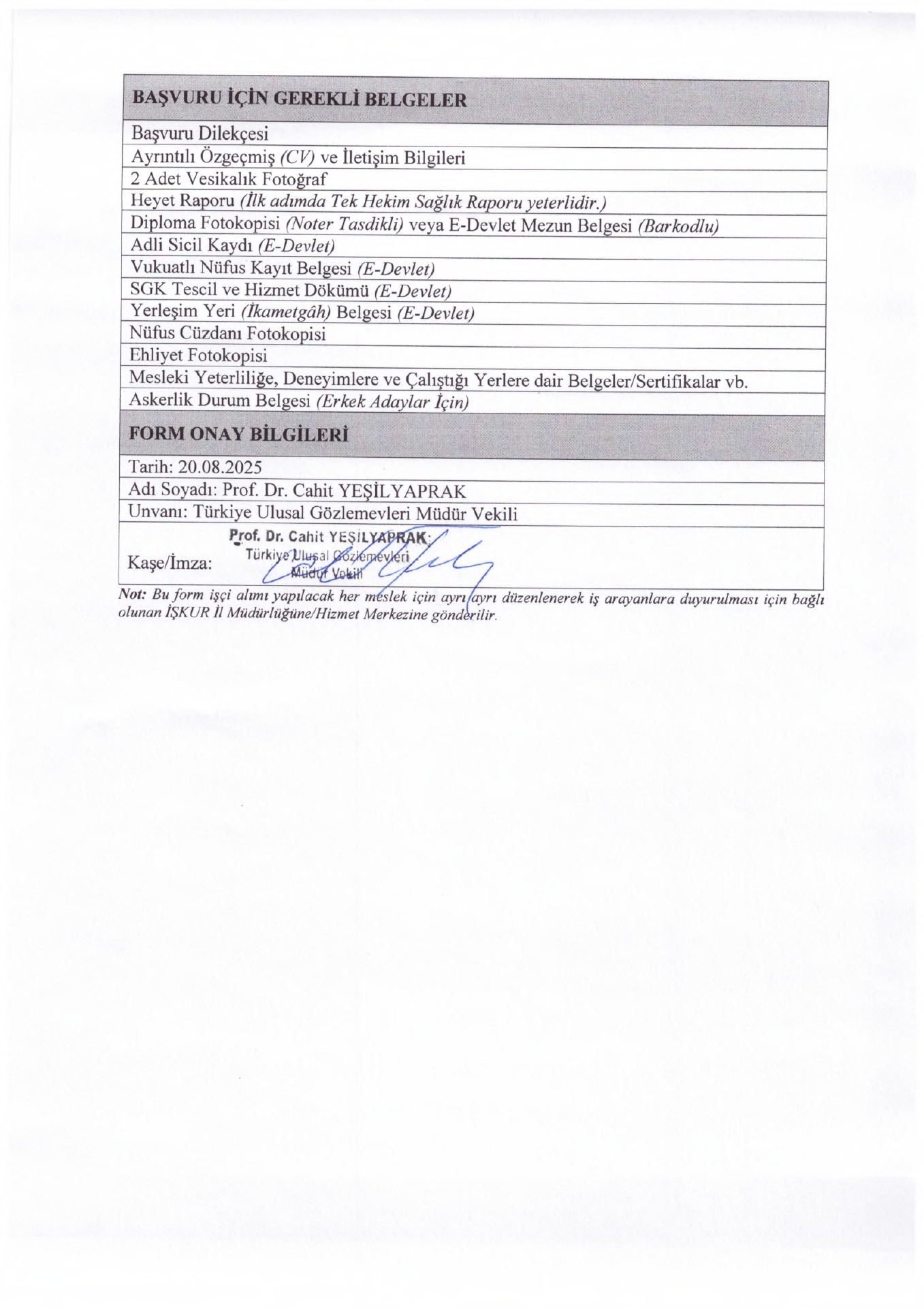 Erzurum Türkiye Ulusal Gözlemevleri 1 İşçi Alacak. Son başvuru tarihi 27 ağustos 2025