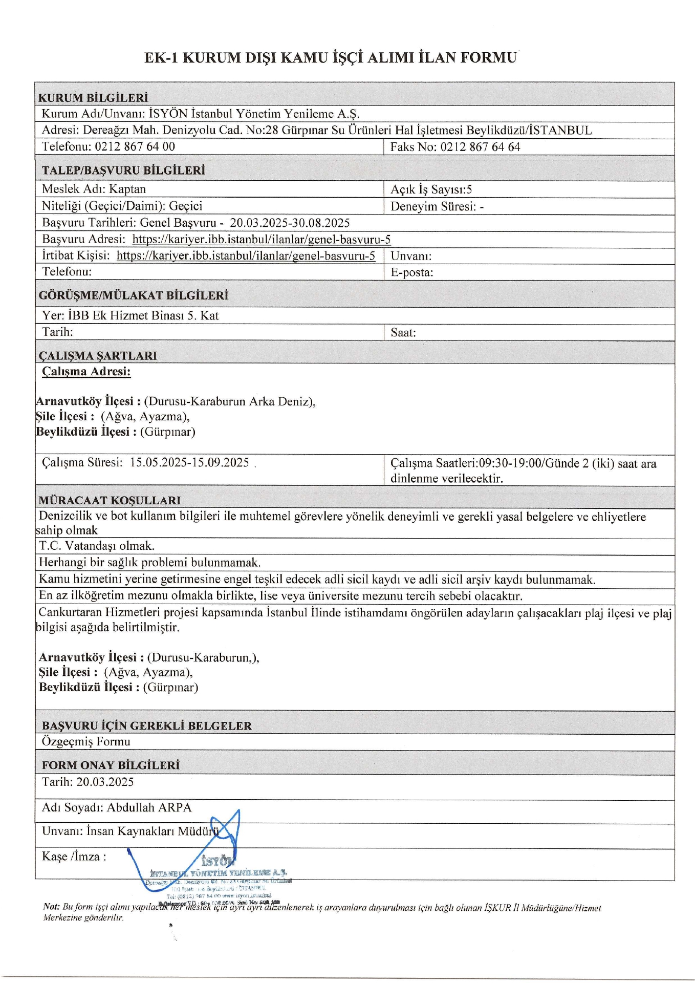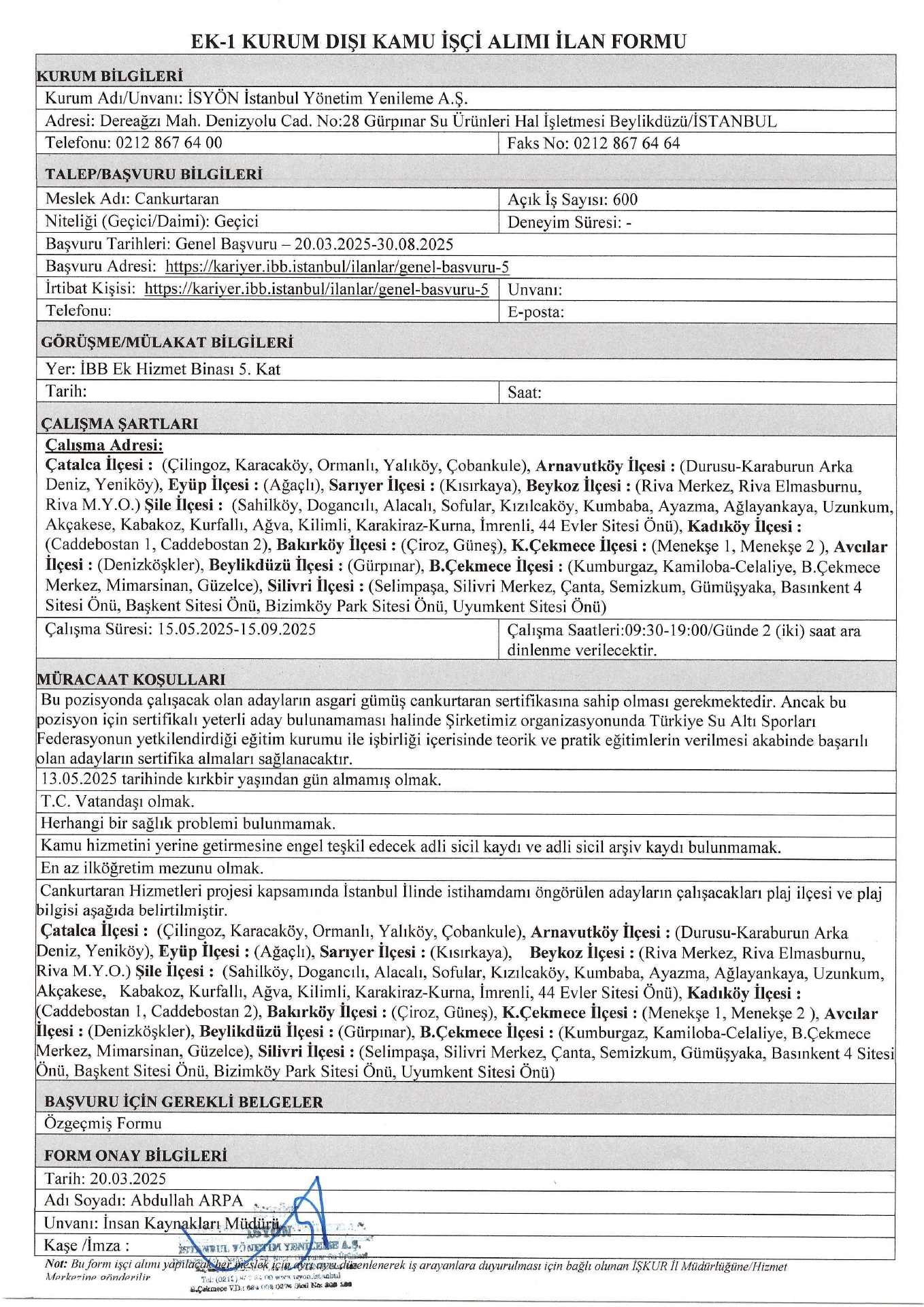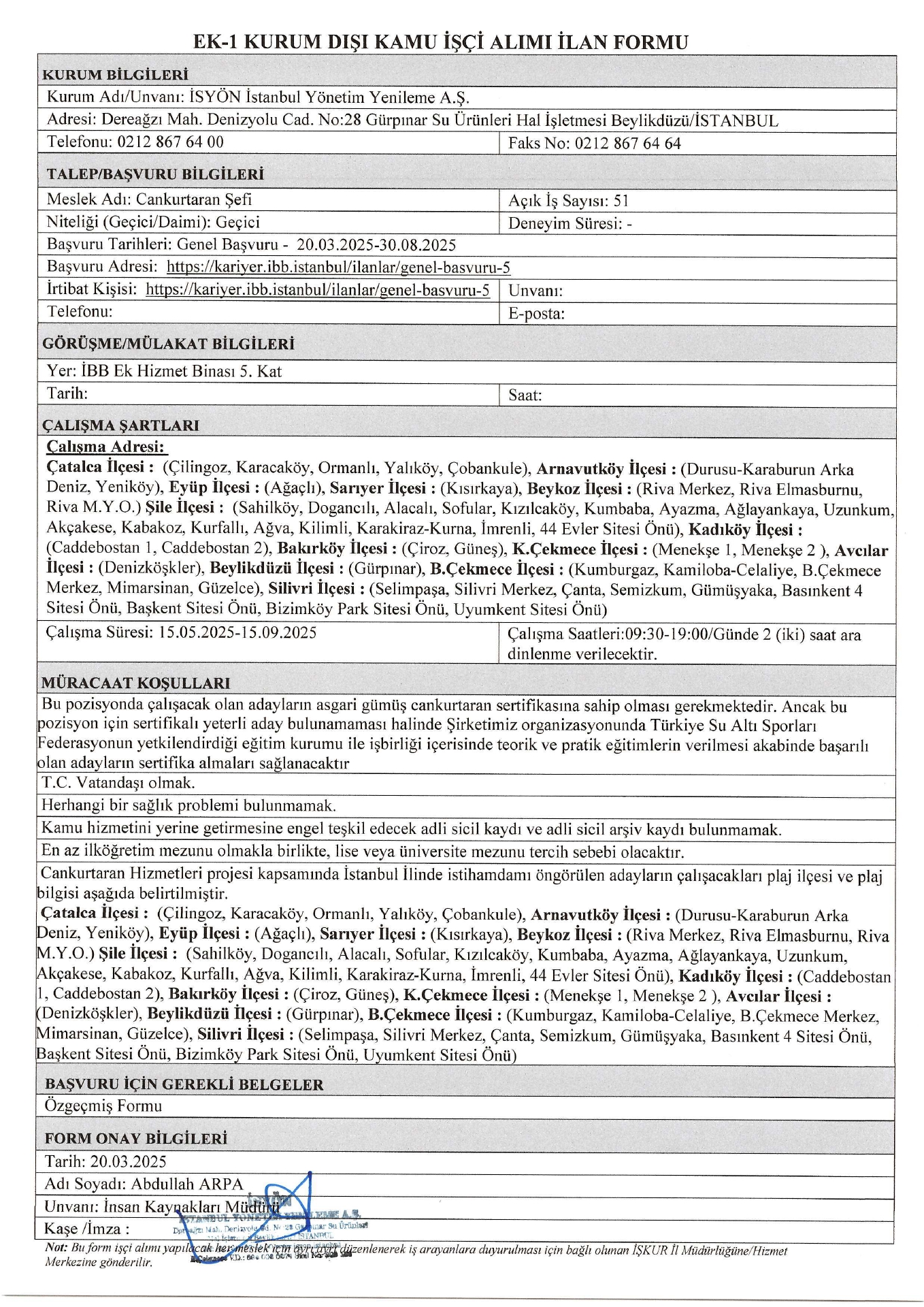 İstanbul İsyön Geçici 60 İşçi Alacak. Son başvuru tarihi 30 ağustos 2025