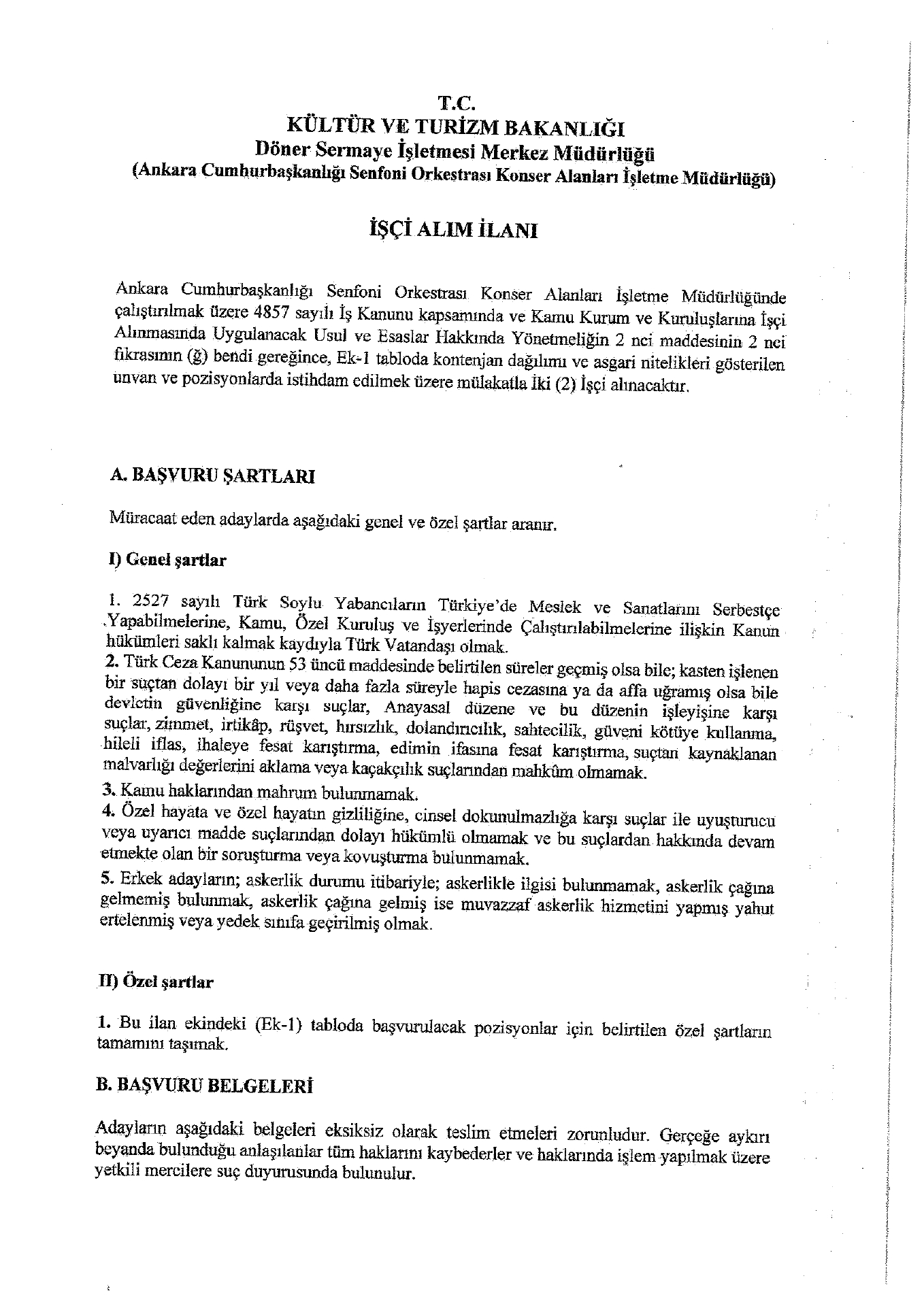 Kültür ve Turizm Bakanlığı 2 İşçi Alacak