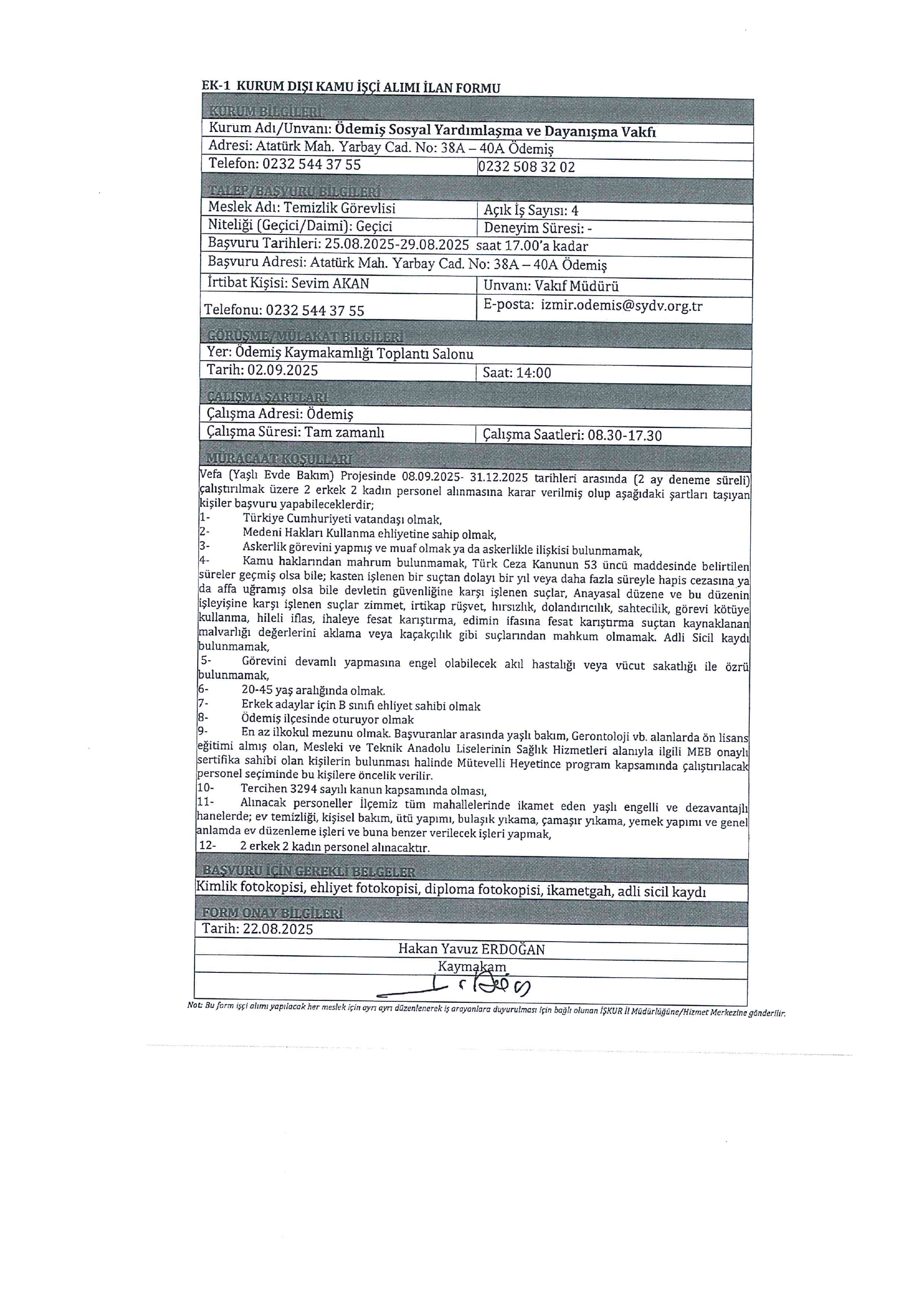İzmir Ödemiş SYDV Geçici 4 İşçi Alacak. Son başvuru tarihi 29 ağustos 2025