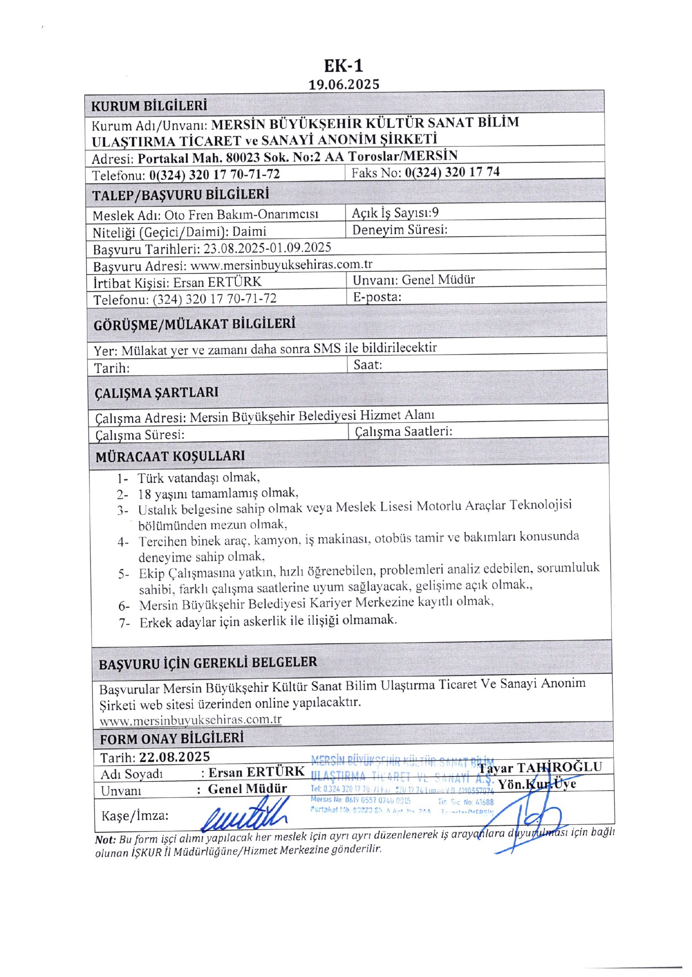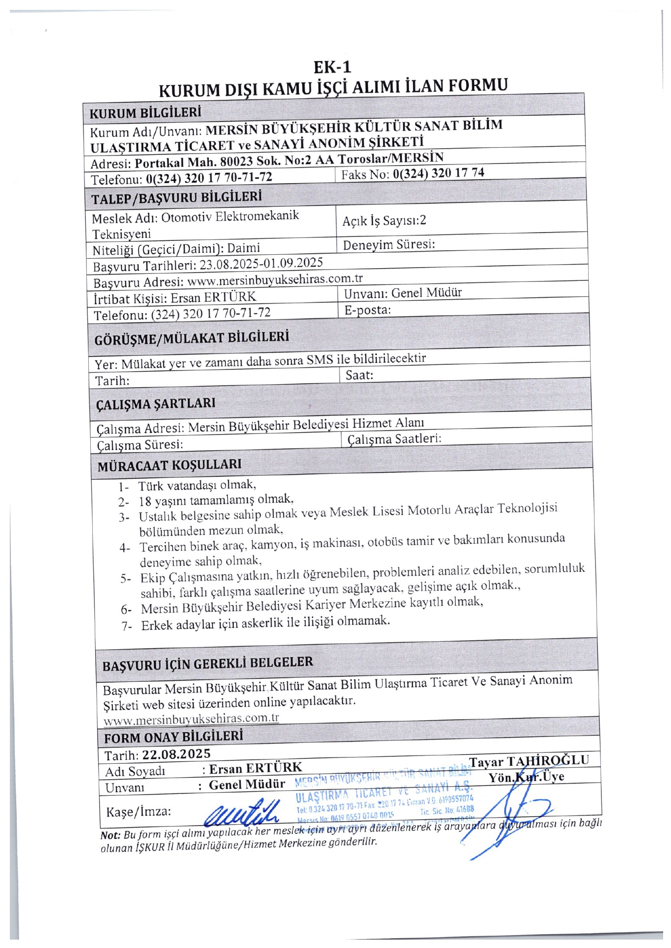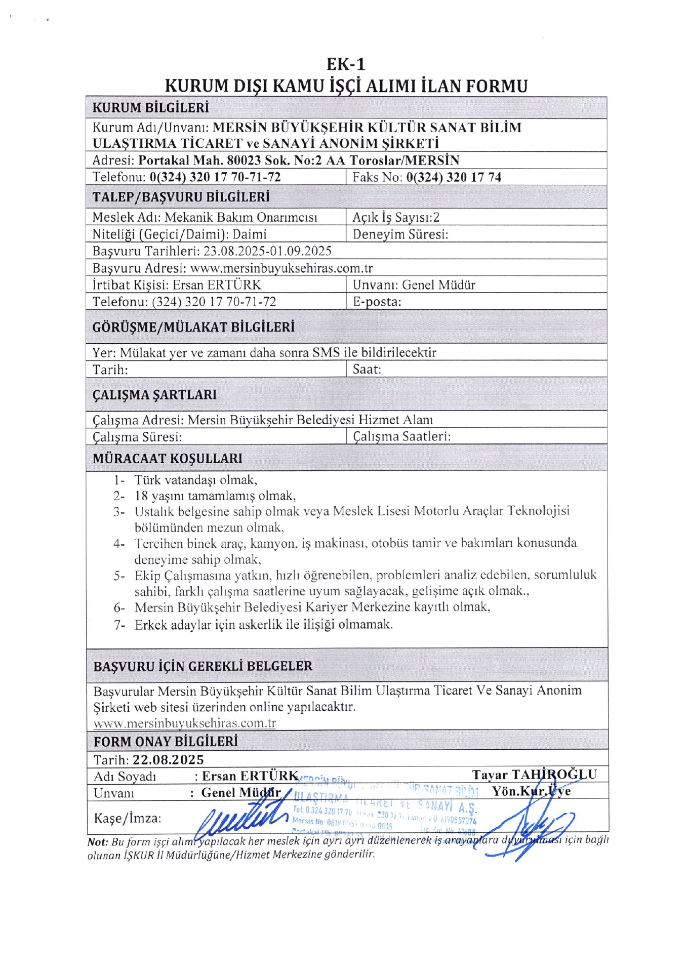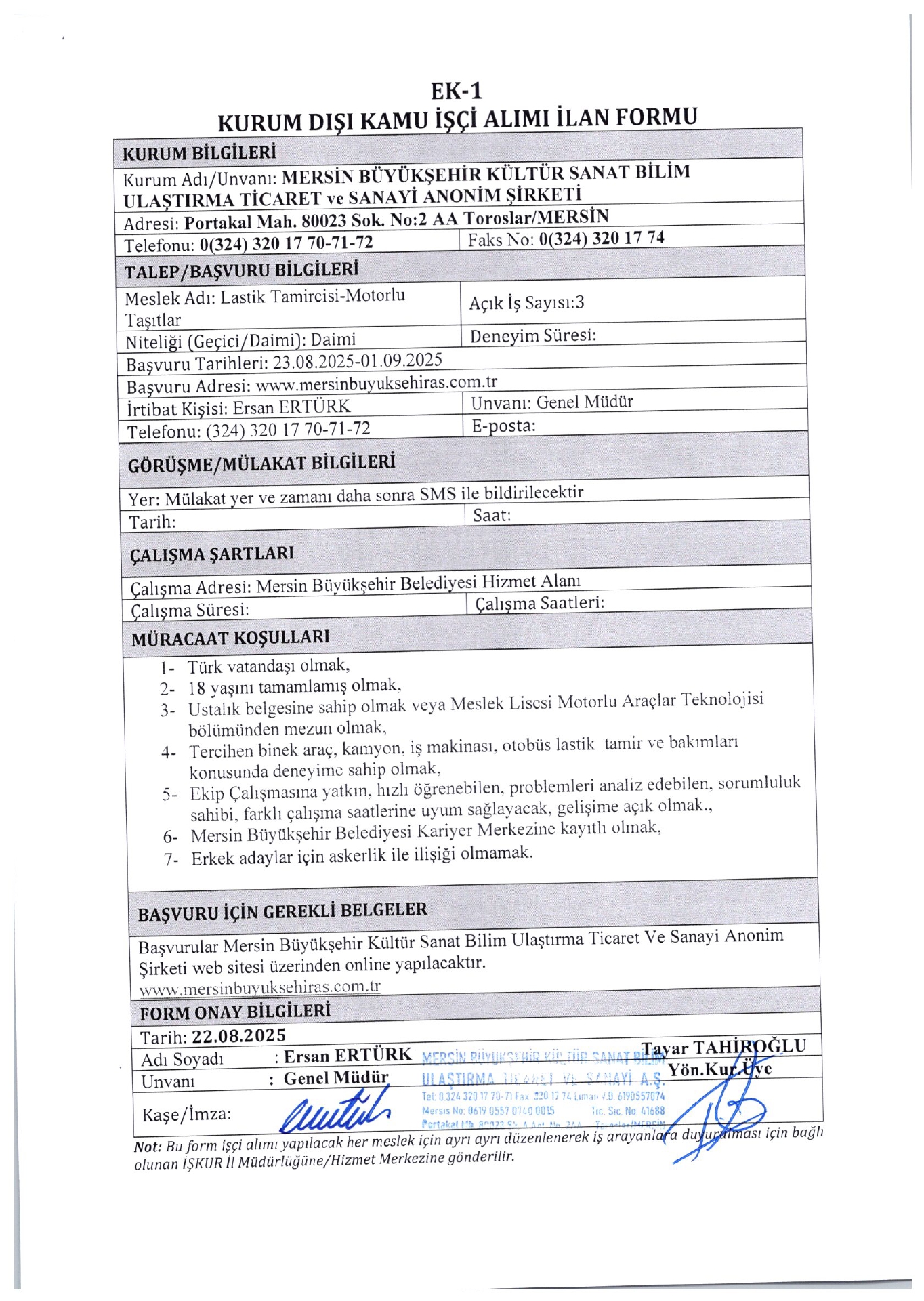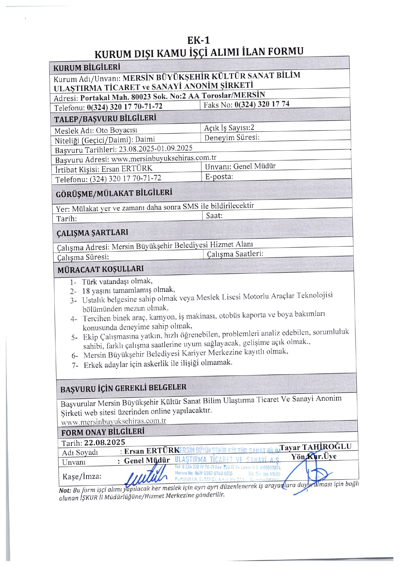 İlan Giriş : 23 Ağustos 2025 01:19, Son Güncelleme : 23 Ağustos 2025 01:47