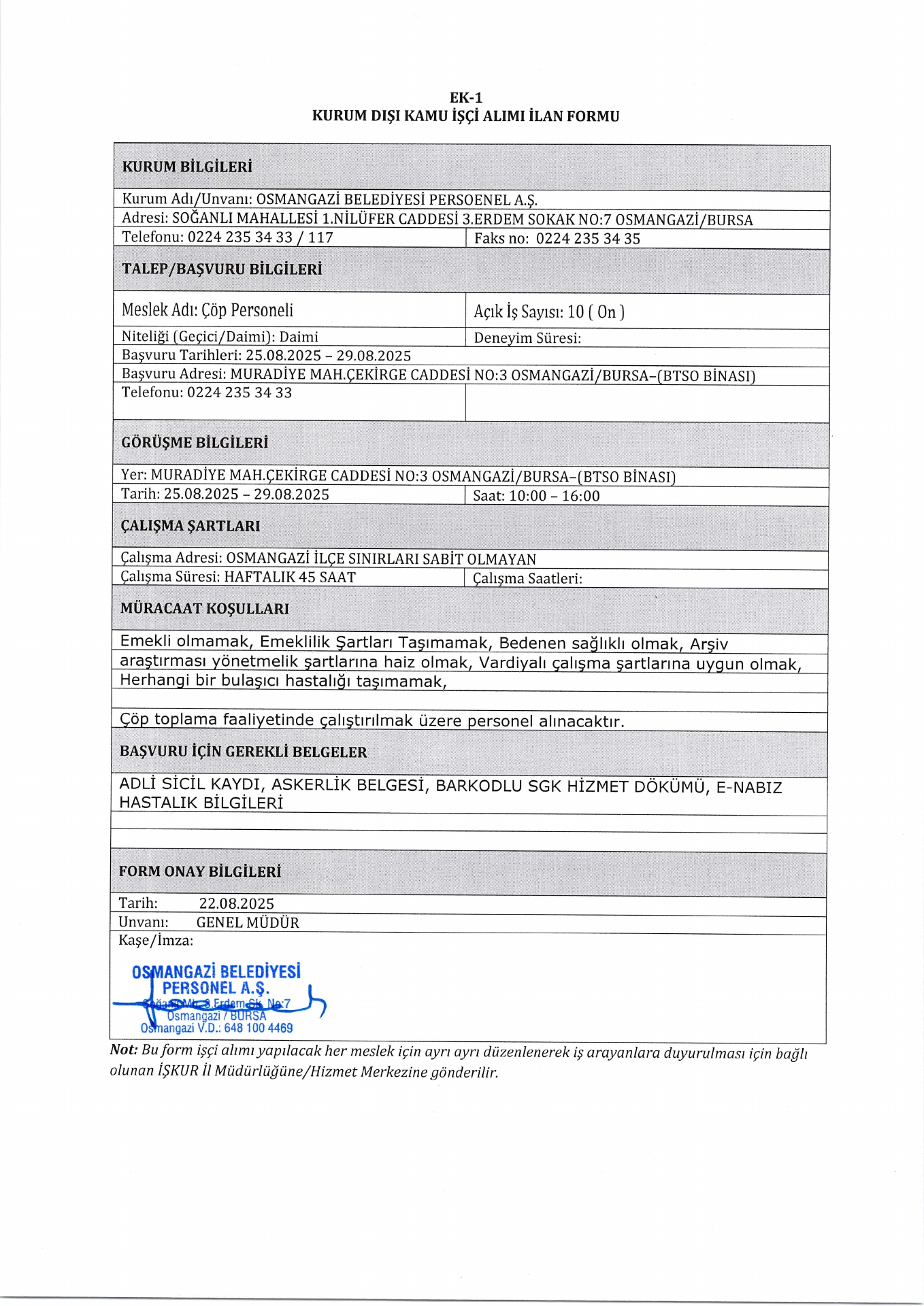 Bursa Osmangazi Belediyesi 10 İşçi Alacak