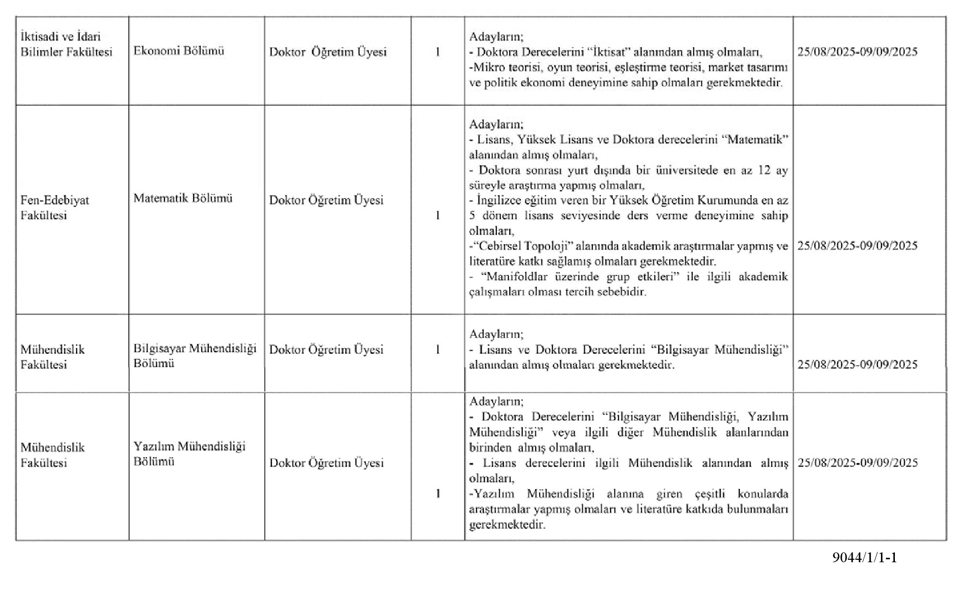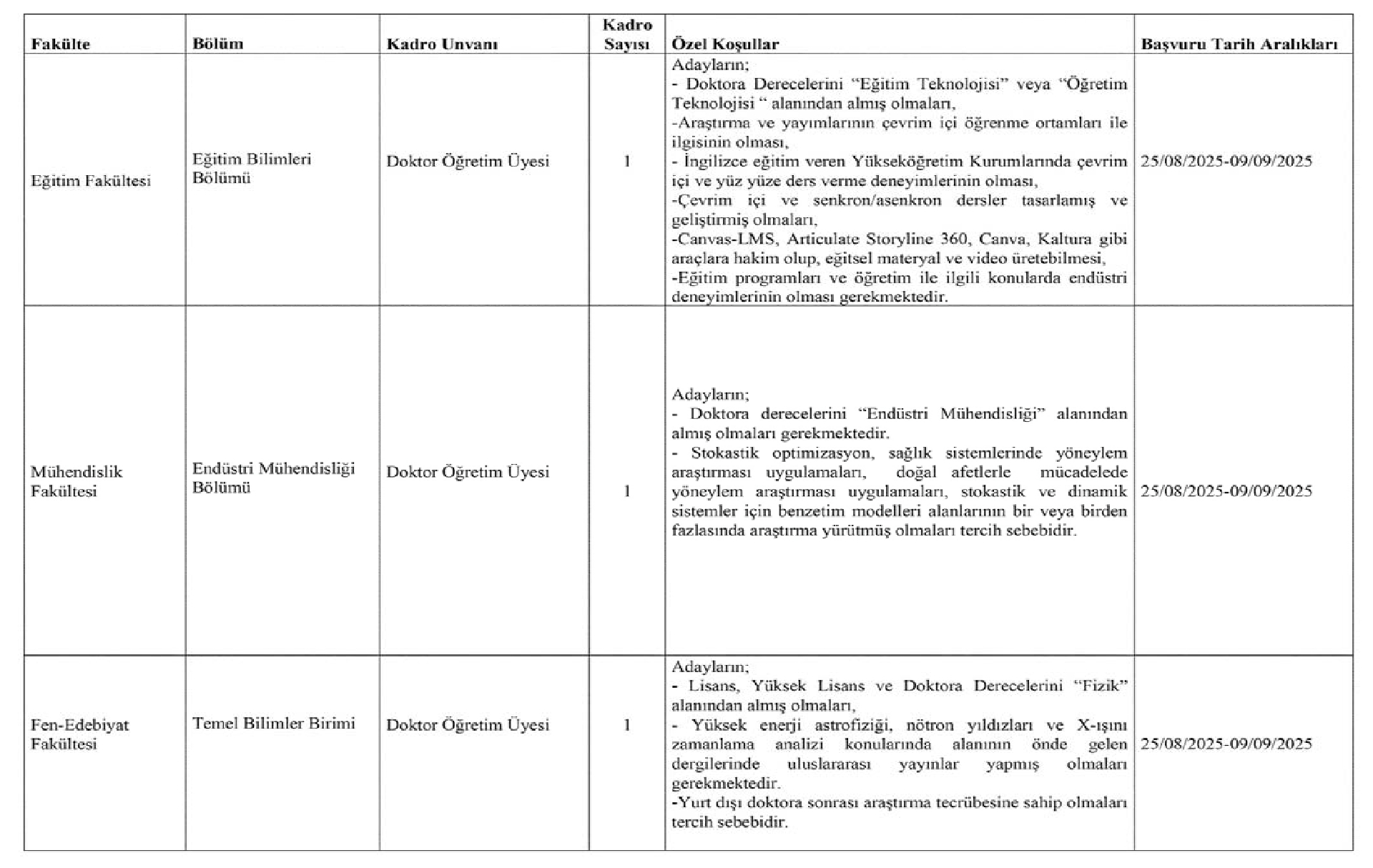 TED Üniversitesi Öğretim Üyesi ve Elemanı Alım İlanı. Son başvuru tarihi 8 eylül 2025