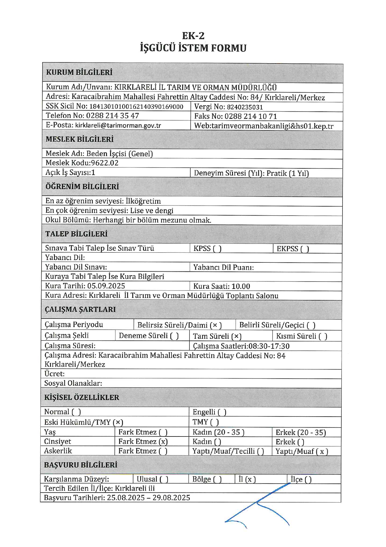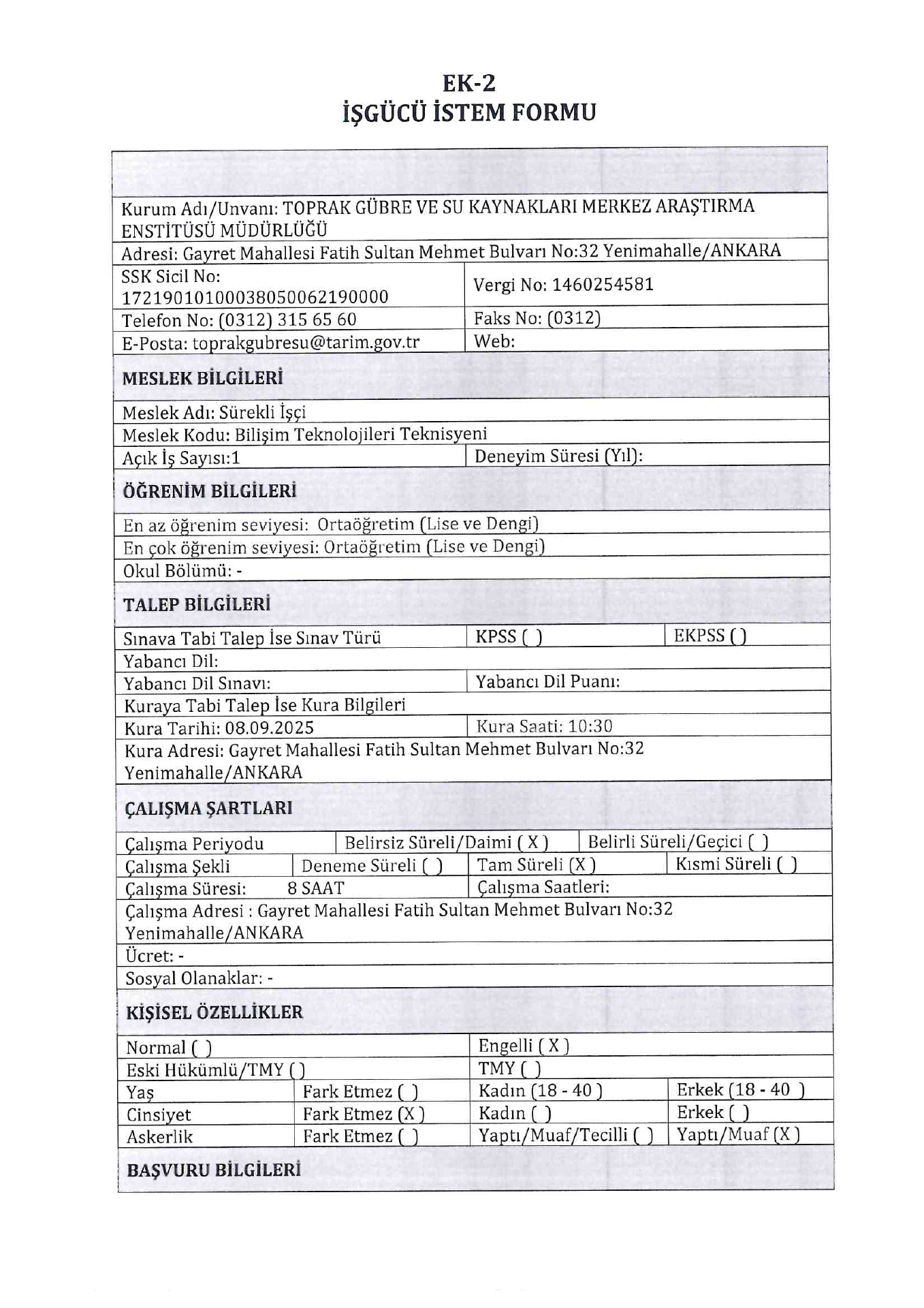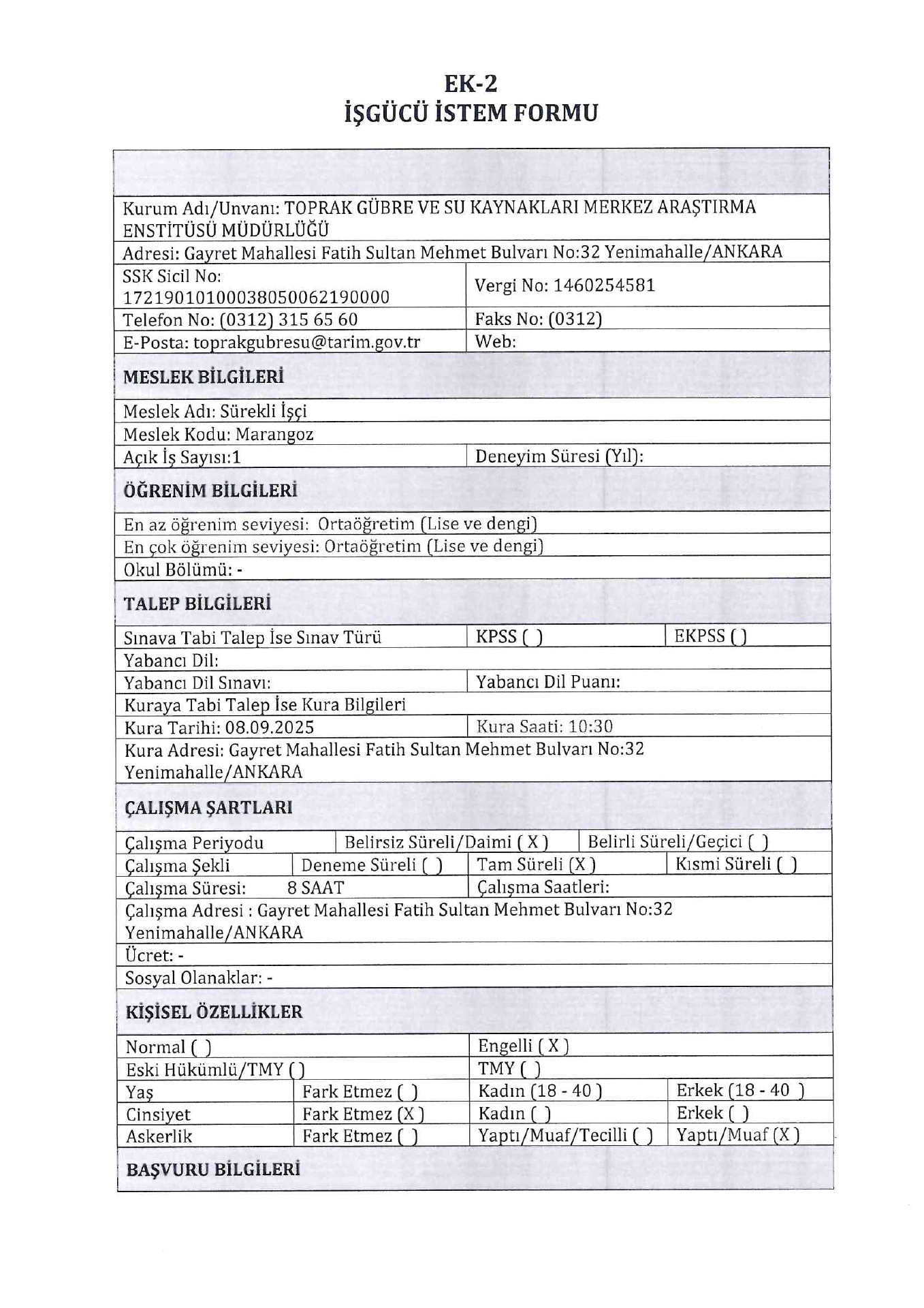 Tarım ve Orman Bakanlığı 3 Engelli ve Eski Hükümlü İşçi Alacak. Son başvuru tarihi 29 ağustos 2025