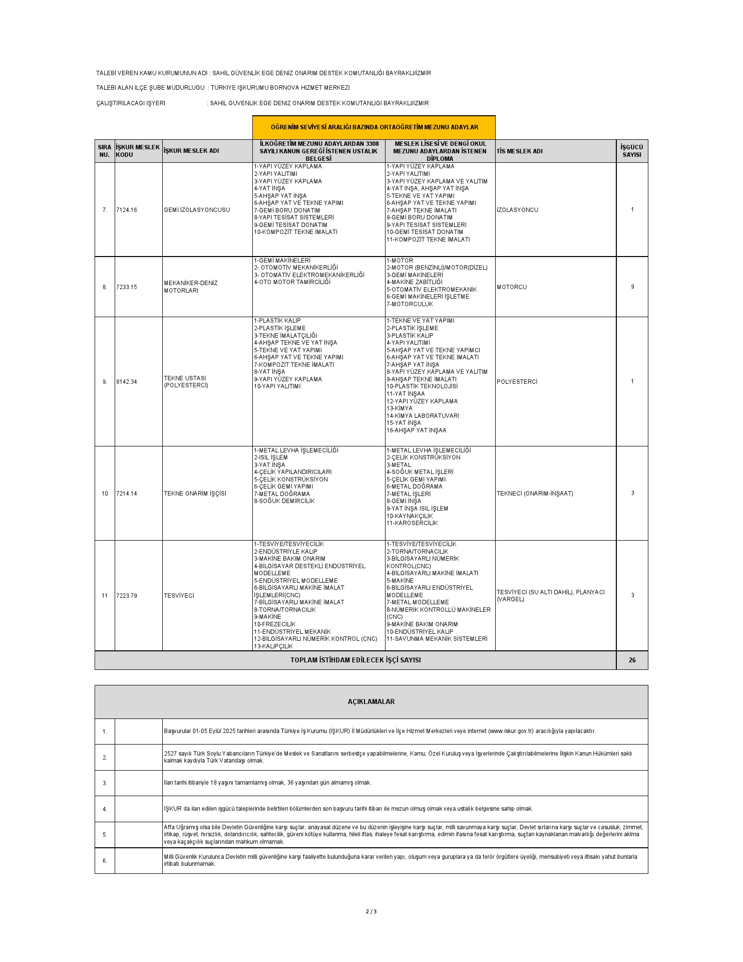 Sahil Güvenlik Komutanlığı 26 İşçi Alacak