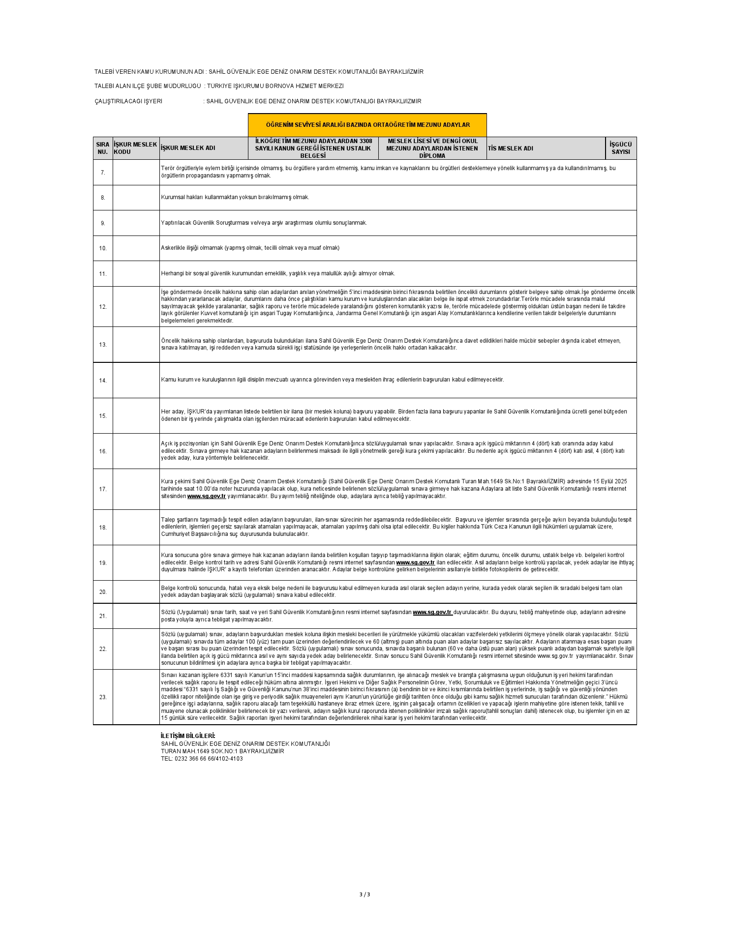 Sahil Güvenlik Komutanlığı 26 İşçi Alacak. Son başvuru tarihi 5 eylül 2025