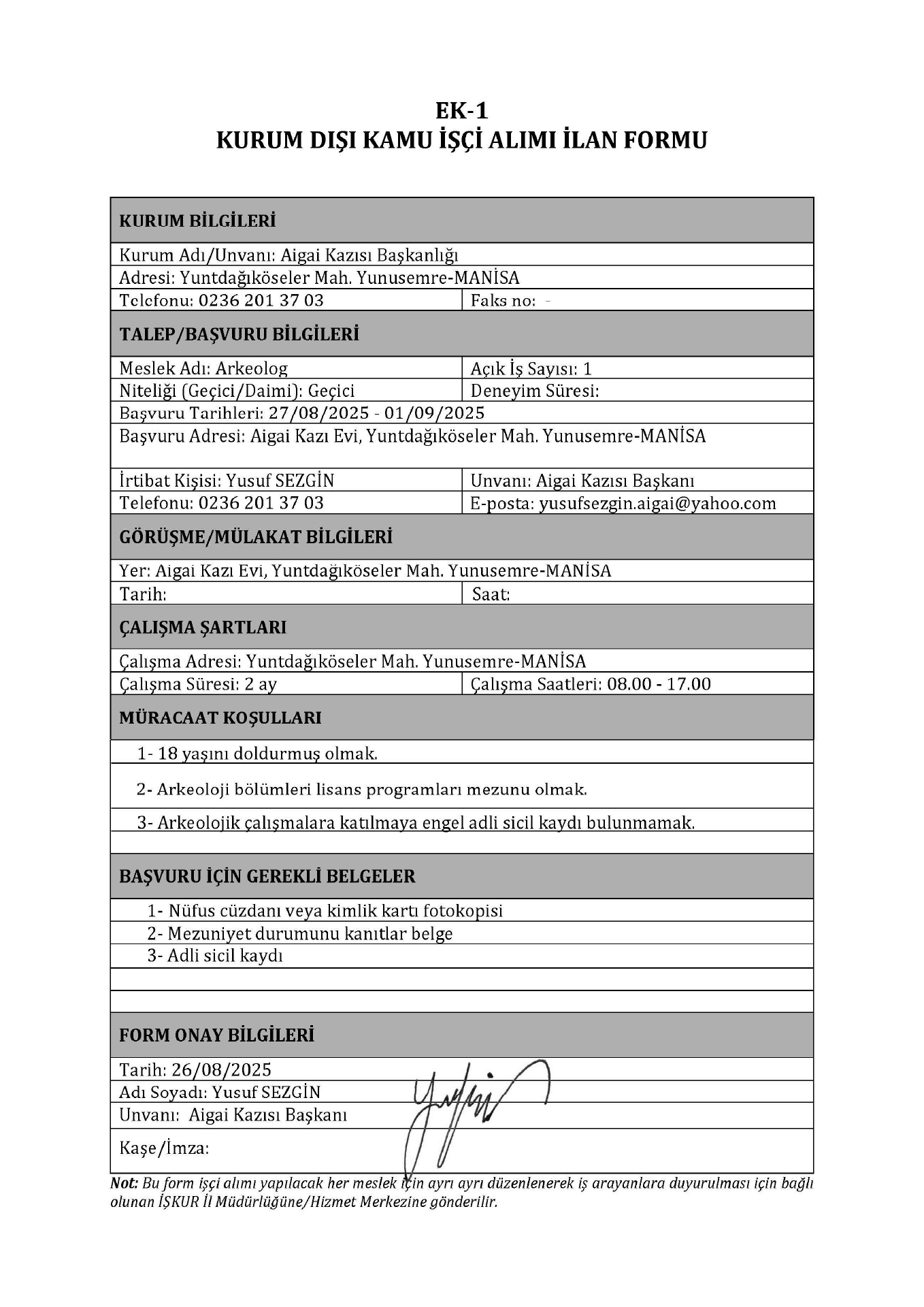 Manisa Aigai Kazısı Geçici 1 İşçi Alacak. Son başvuru tarihi 1 eylül 2025