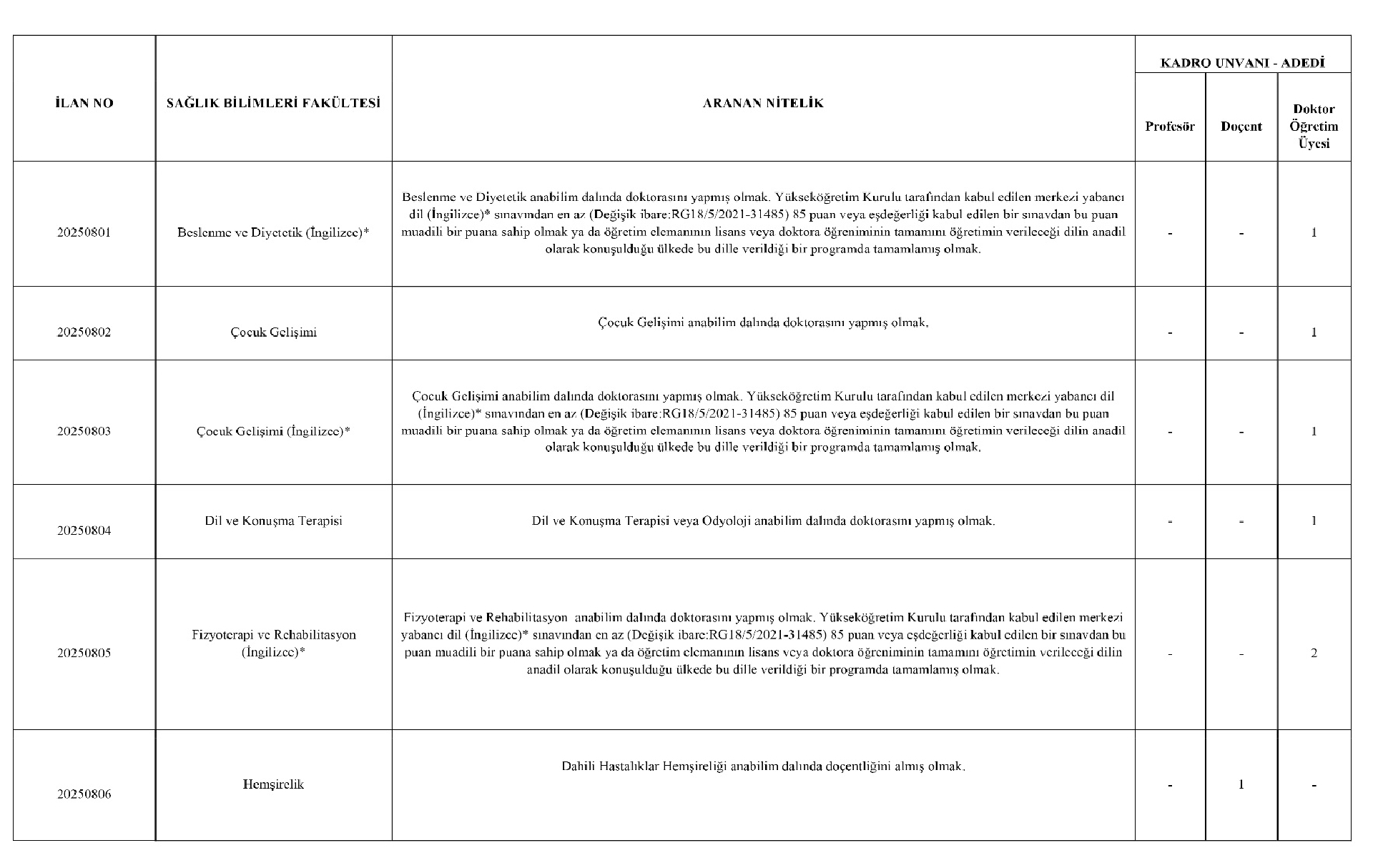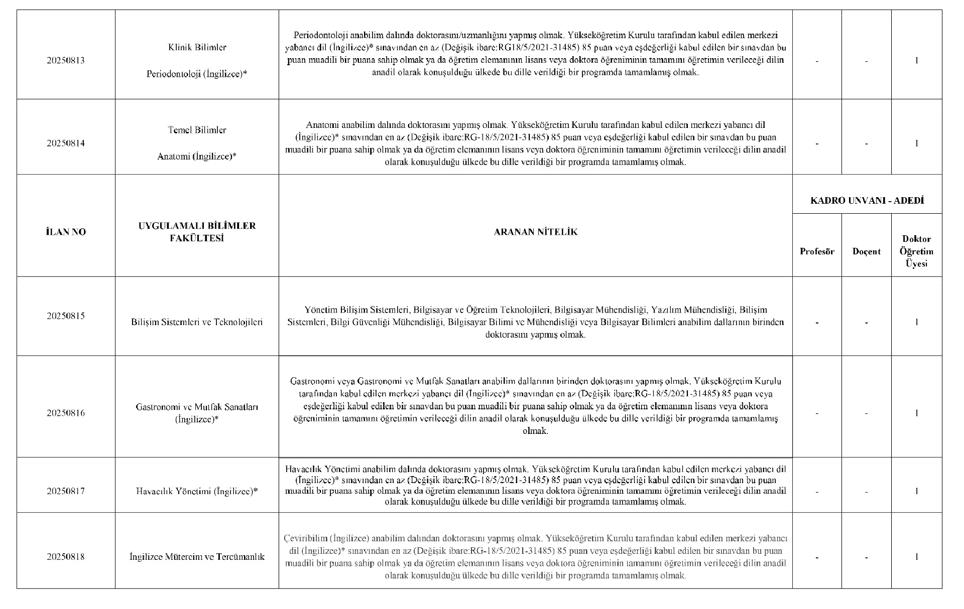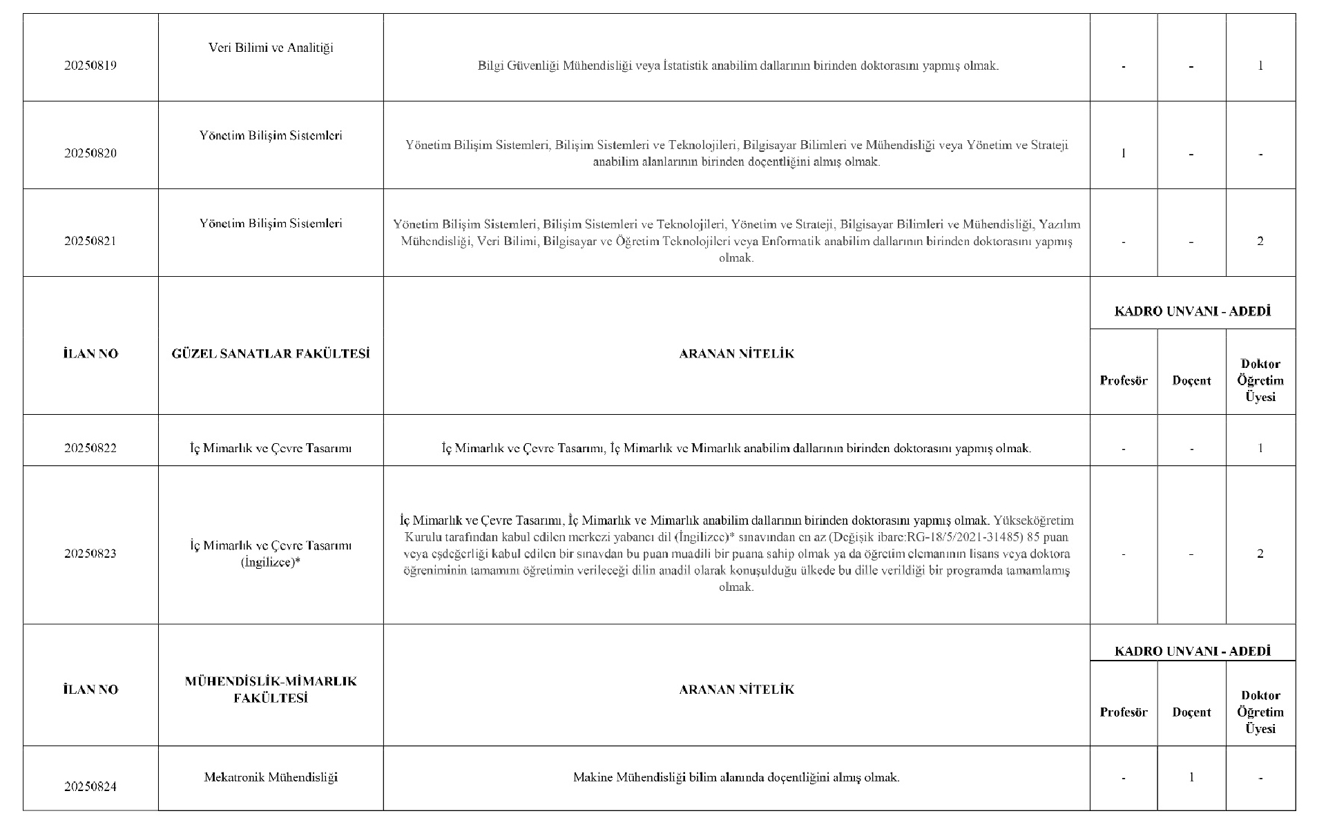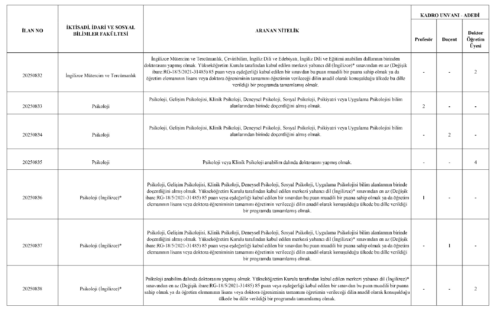 AKADEMİK PERSONEL ALIM İLANI (PROFESÖR, DOÇENT, DOKTOR ÖĞRETİM ÜYESİ)