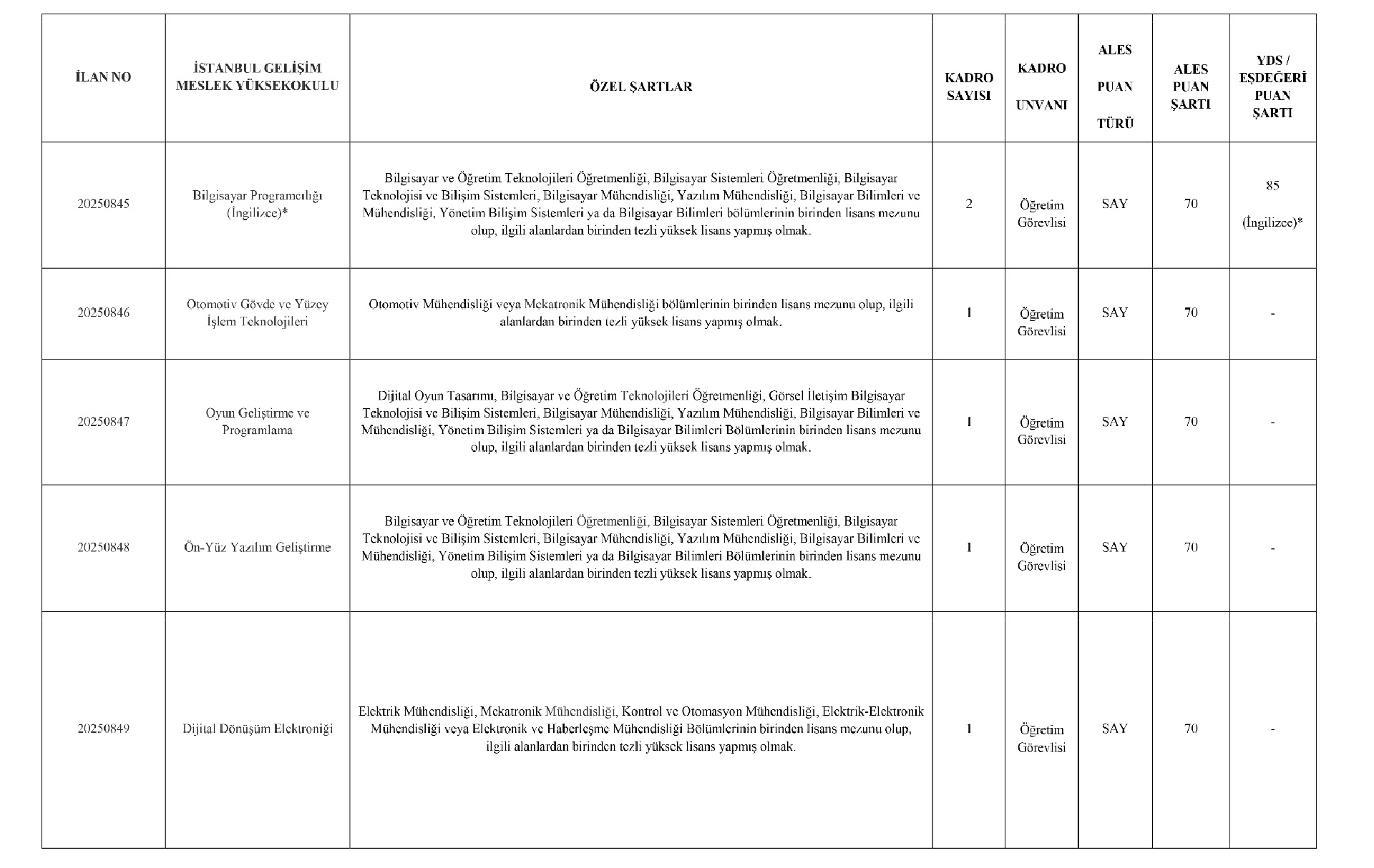 Kadro detayları www^gelisiiriudidr adresimizde bulunmakladır.