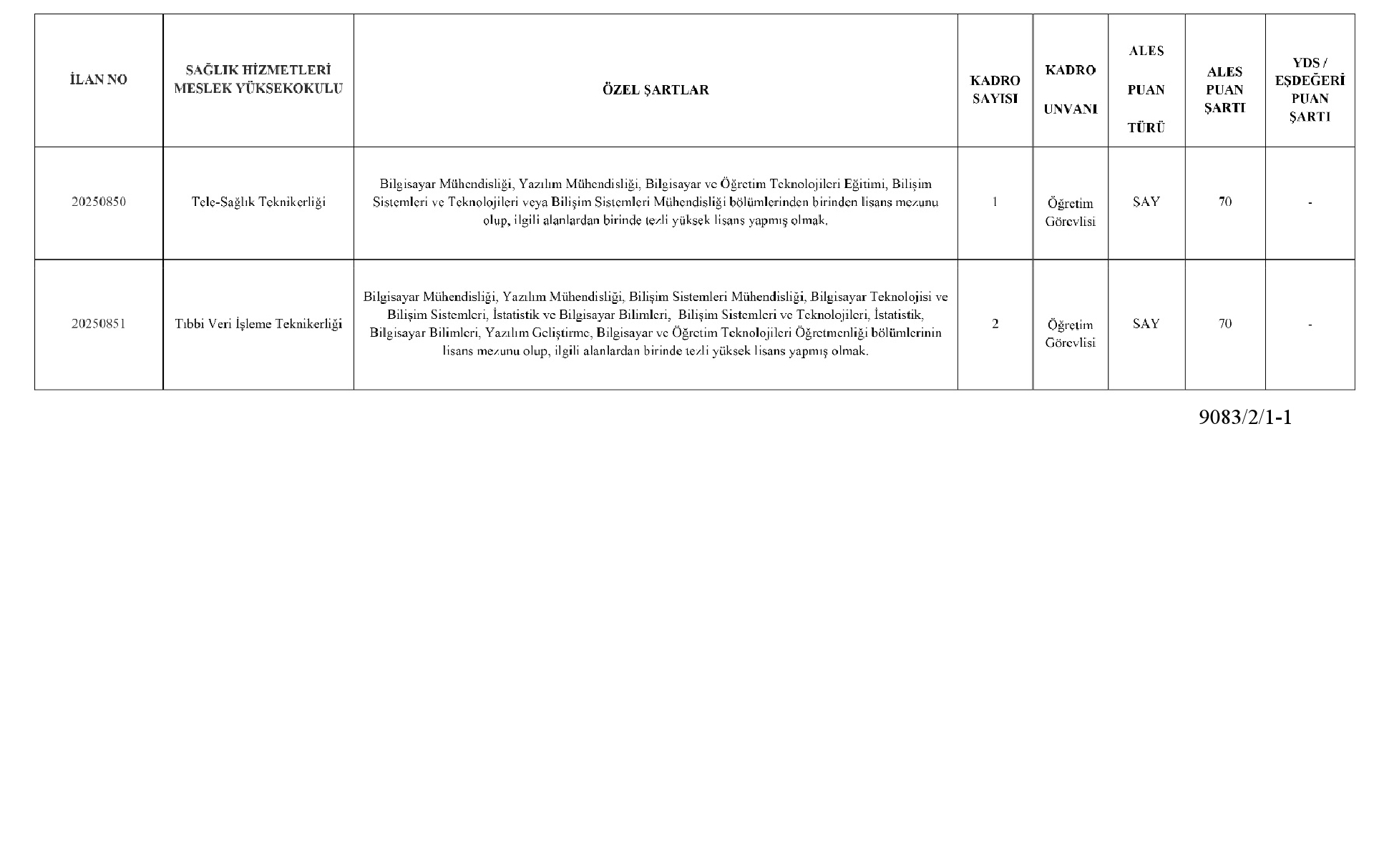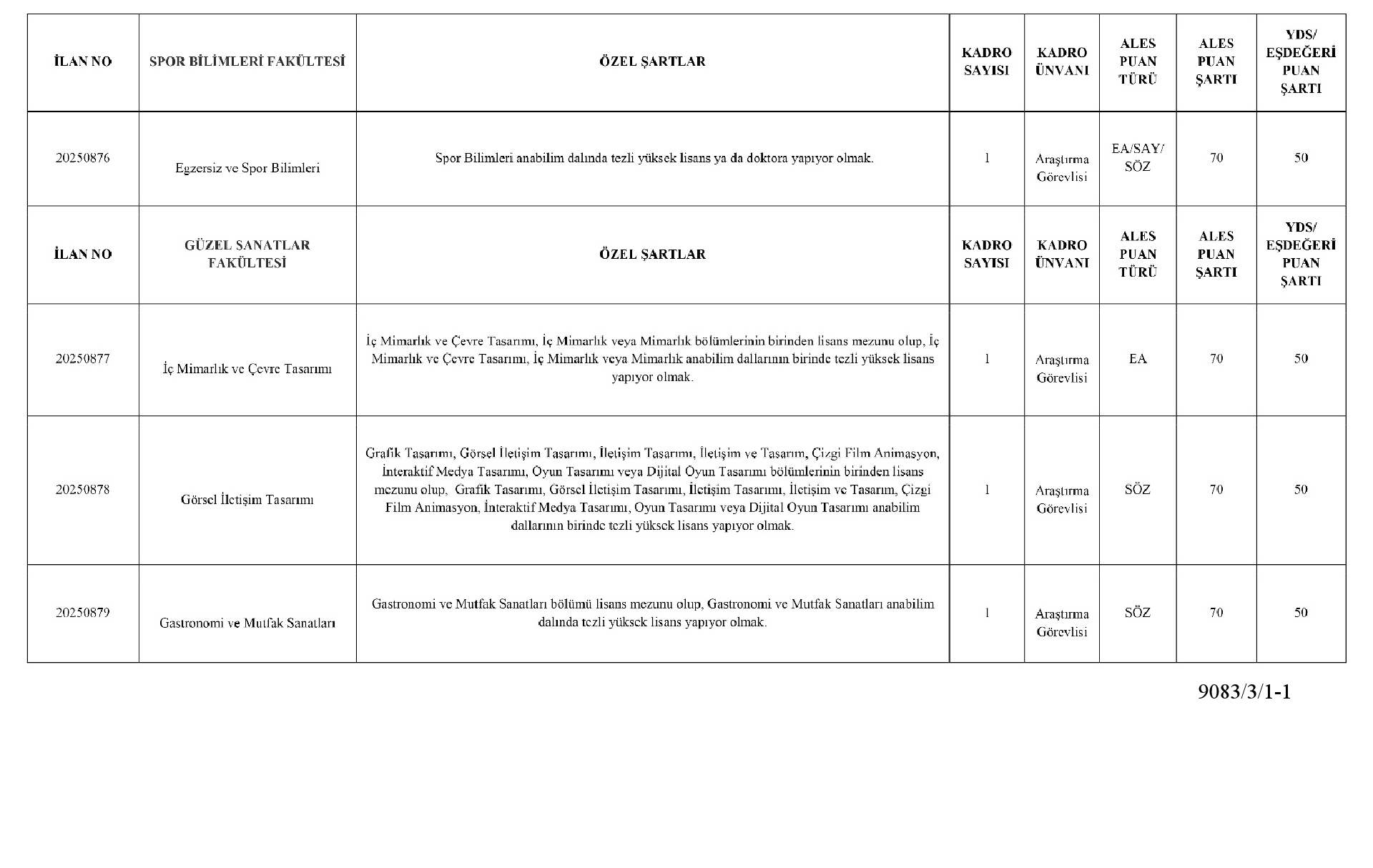 Başvuru Koşulu : Adaylar i lan edilen kadrolardan sadece 1 (bir) kadro ilanına başvuru yapabilir.
