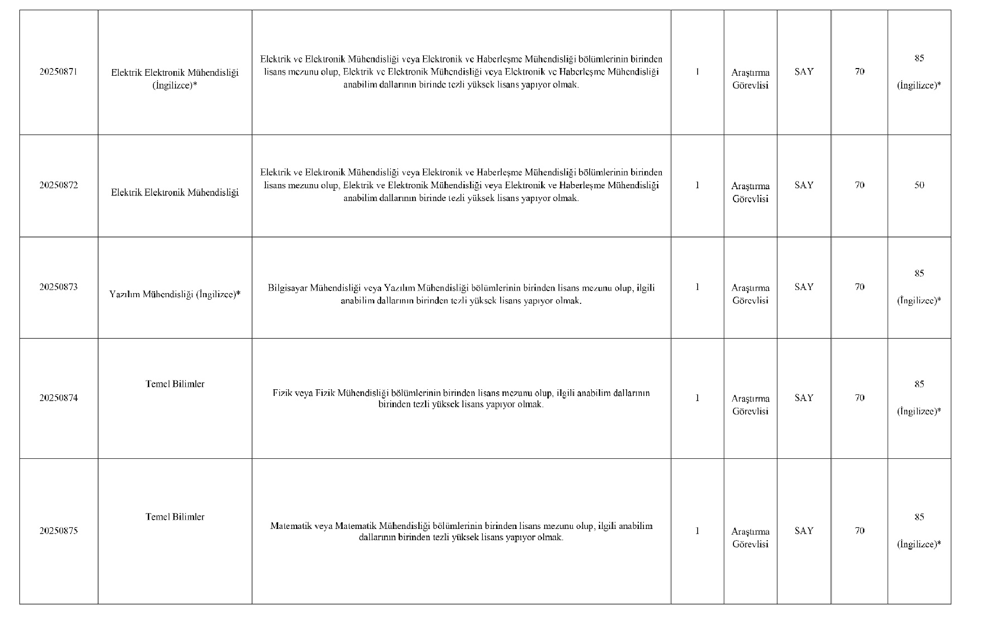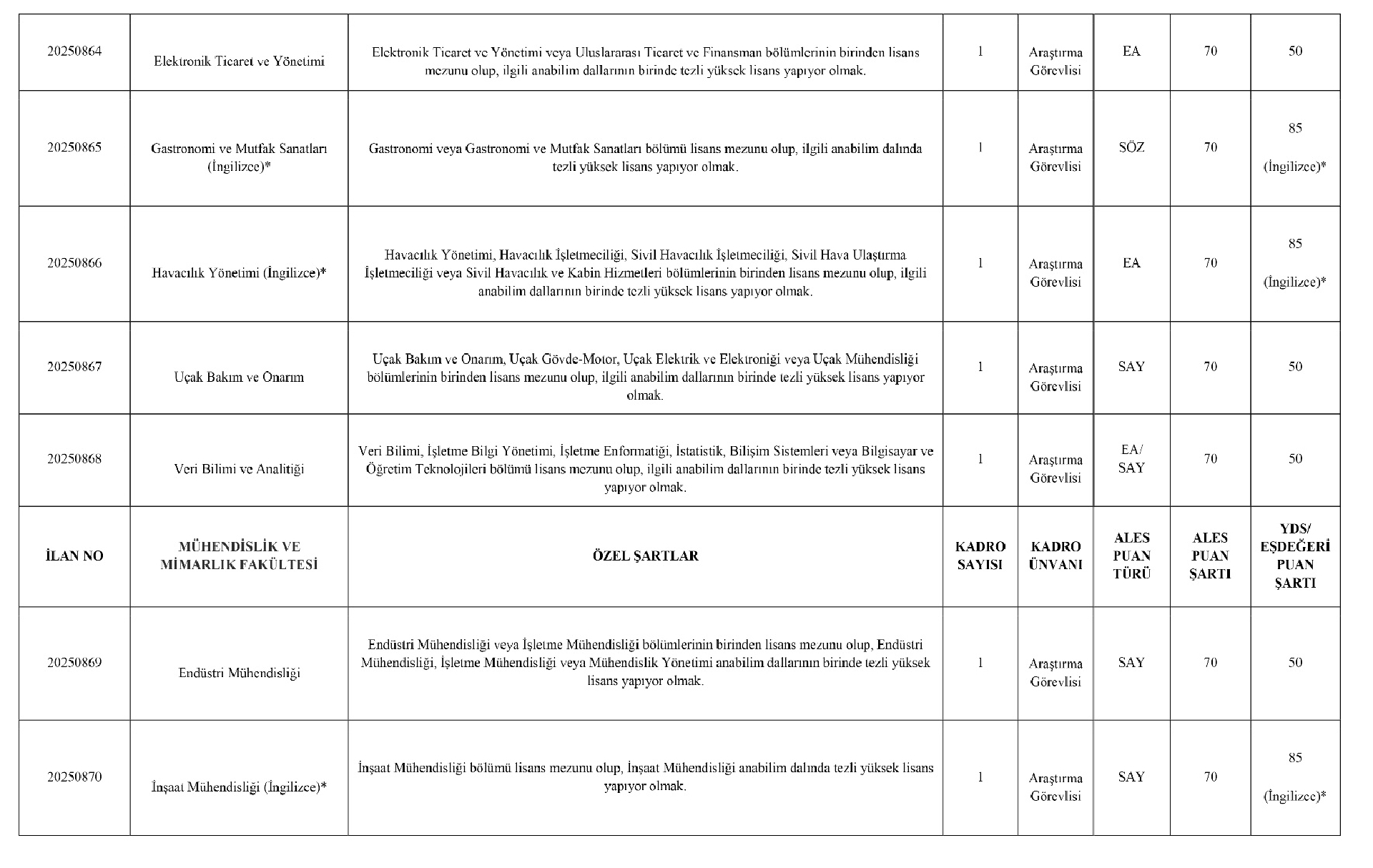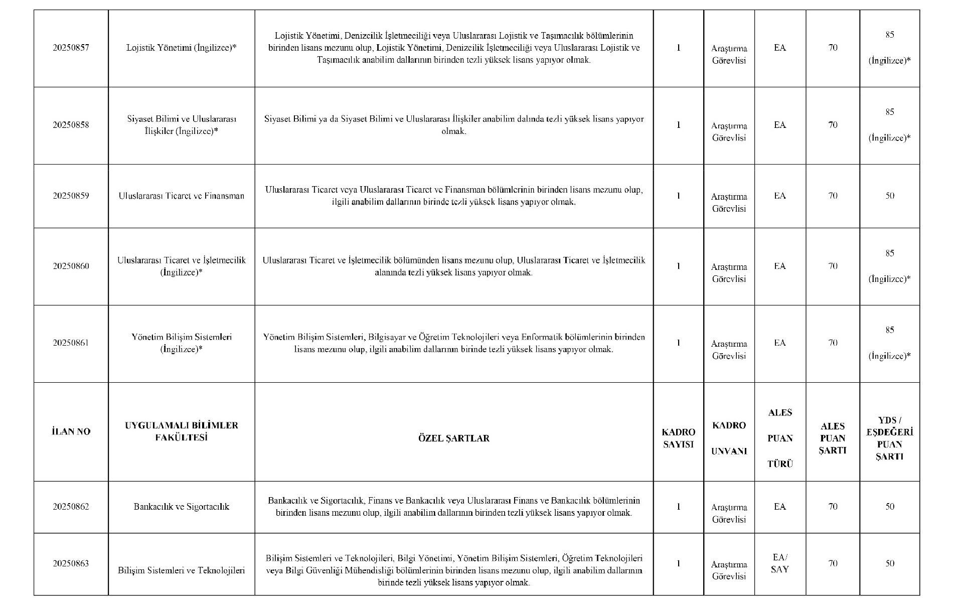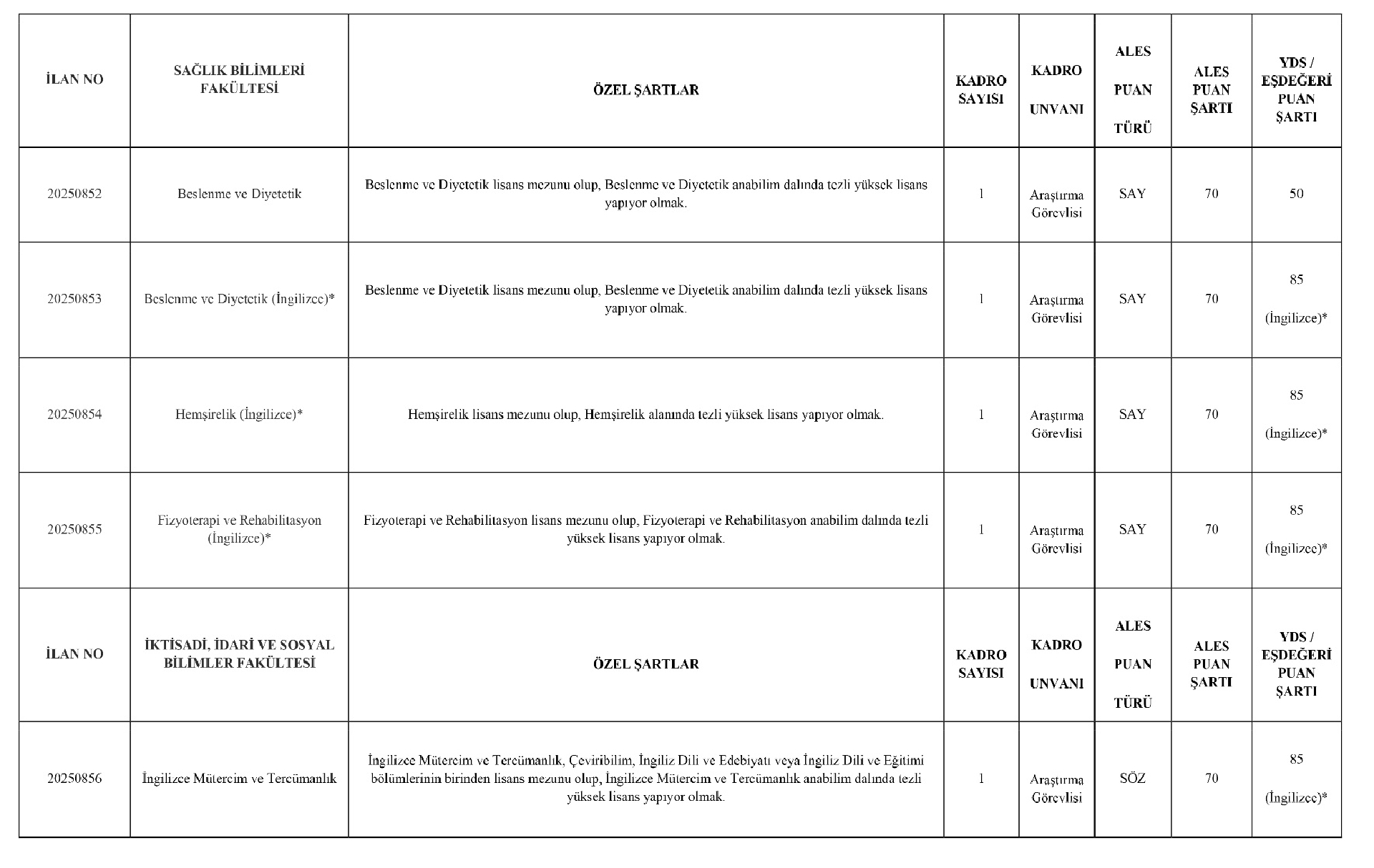 AKADEMİK PERSONEL ALIM İLANI (ARAŞTIRMA GÖREVLİSİ)