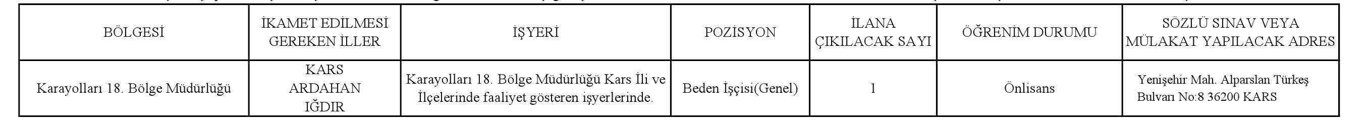 NOT:Adayların ikametleri Kars, Ardahan, Iğdır ili ve ilçeleri olması gerekir.