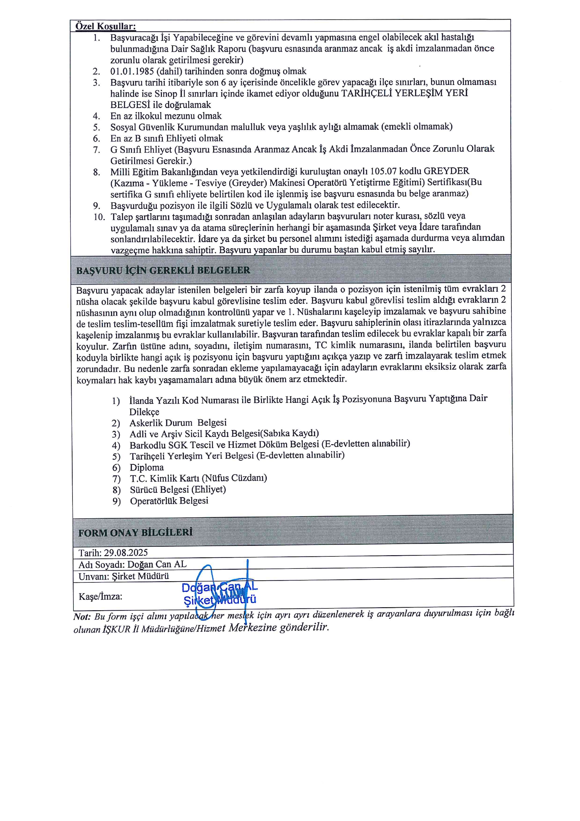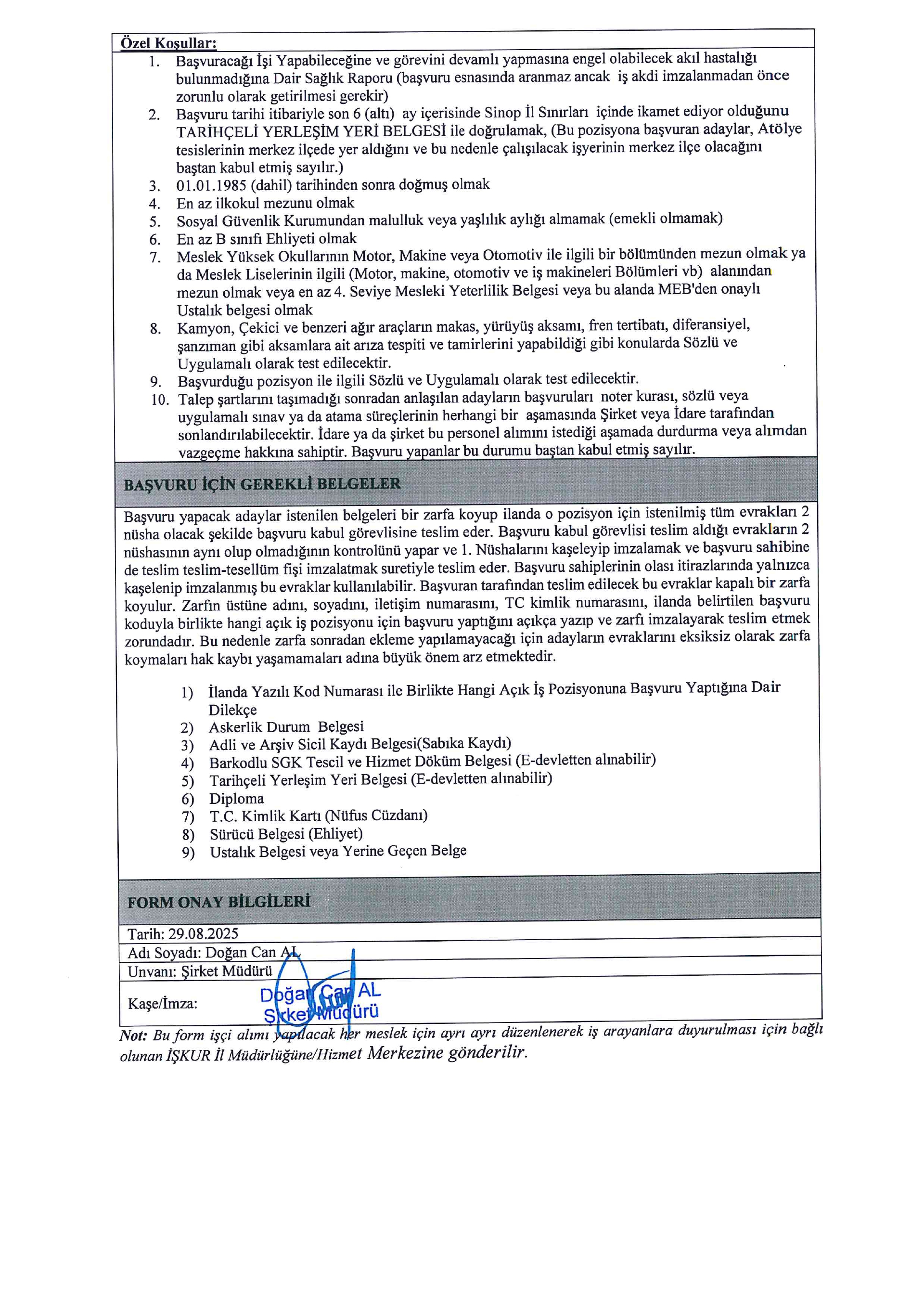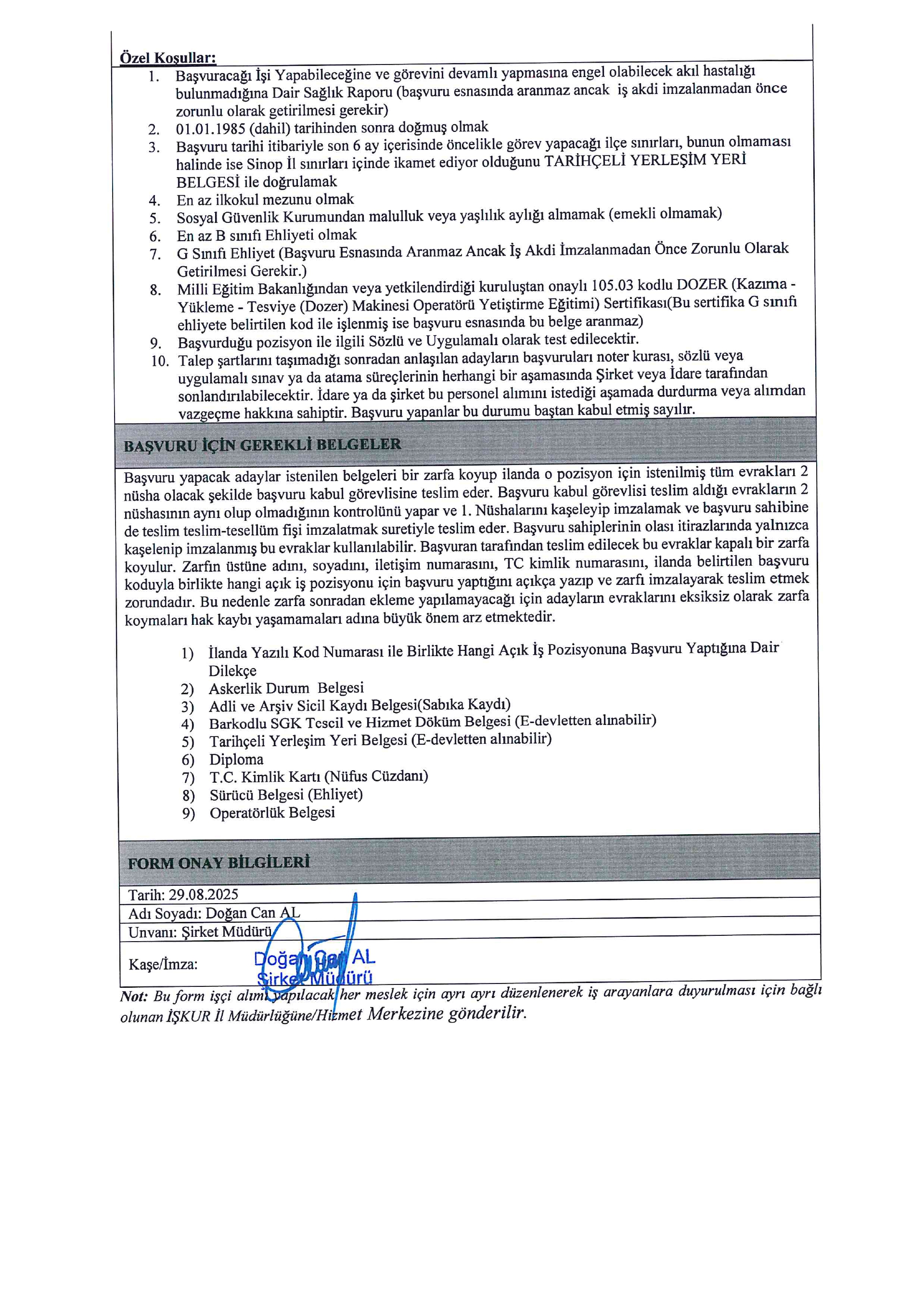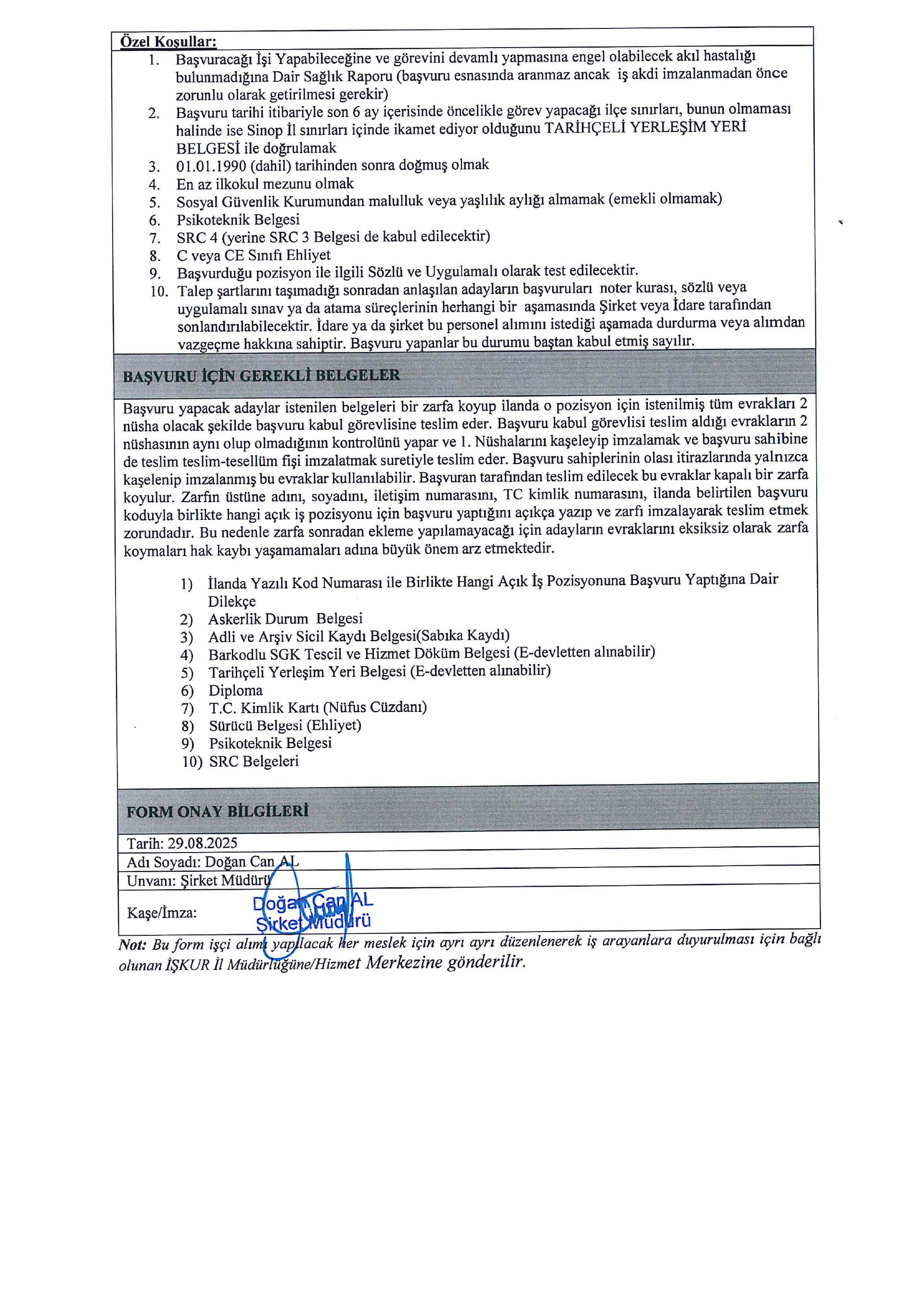 Sinop İl Özel İdaresi 14 İşçi Alacak. Son başvuru tarihi 10 eylül 2025