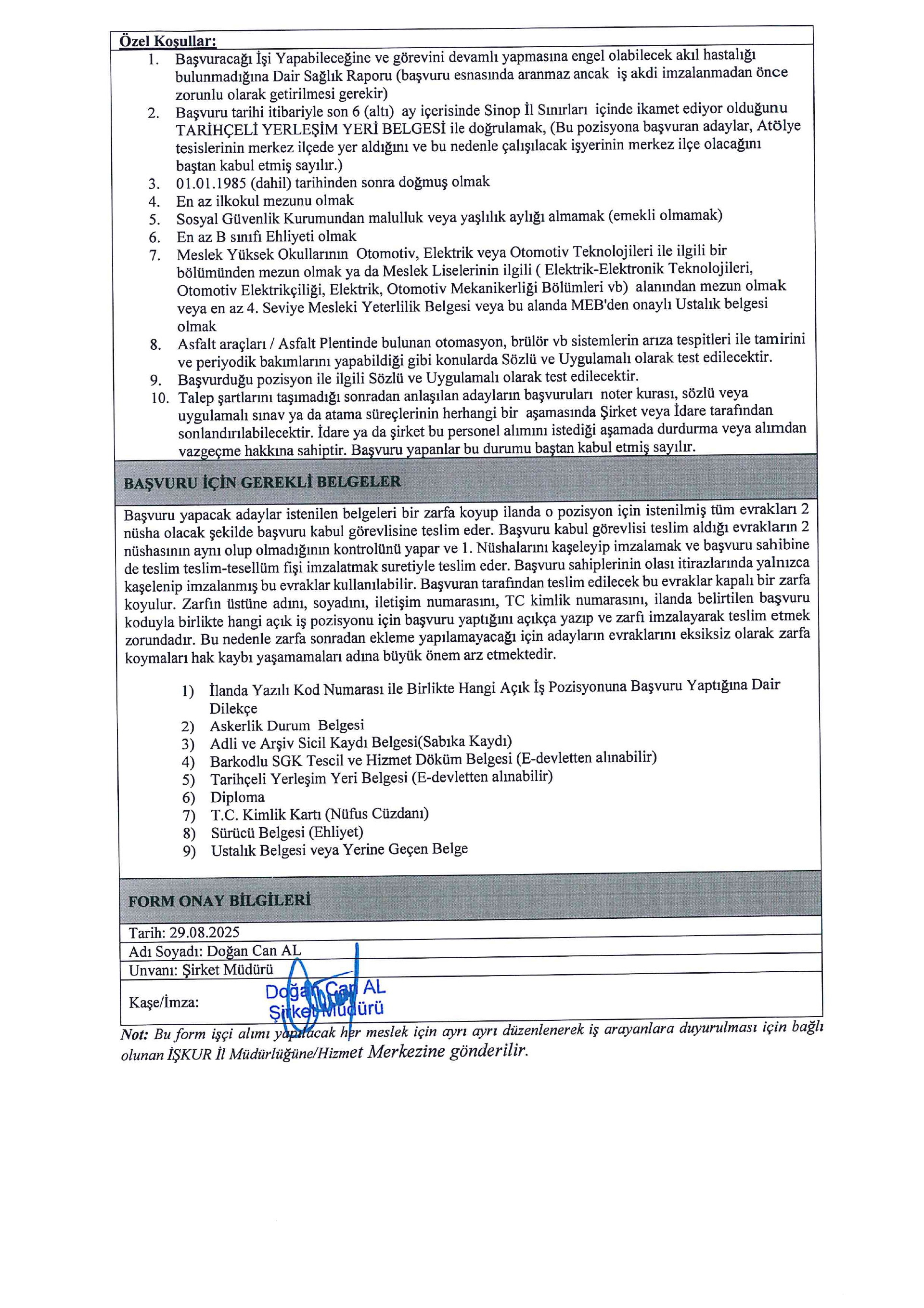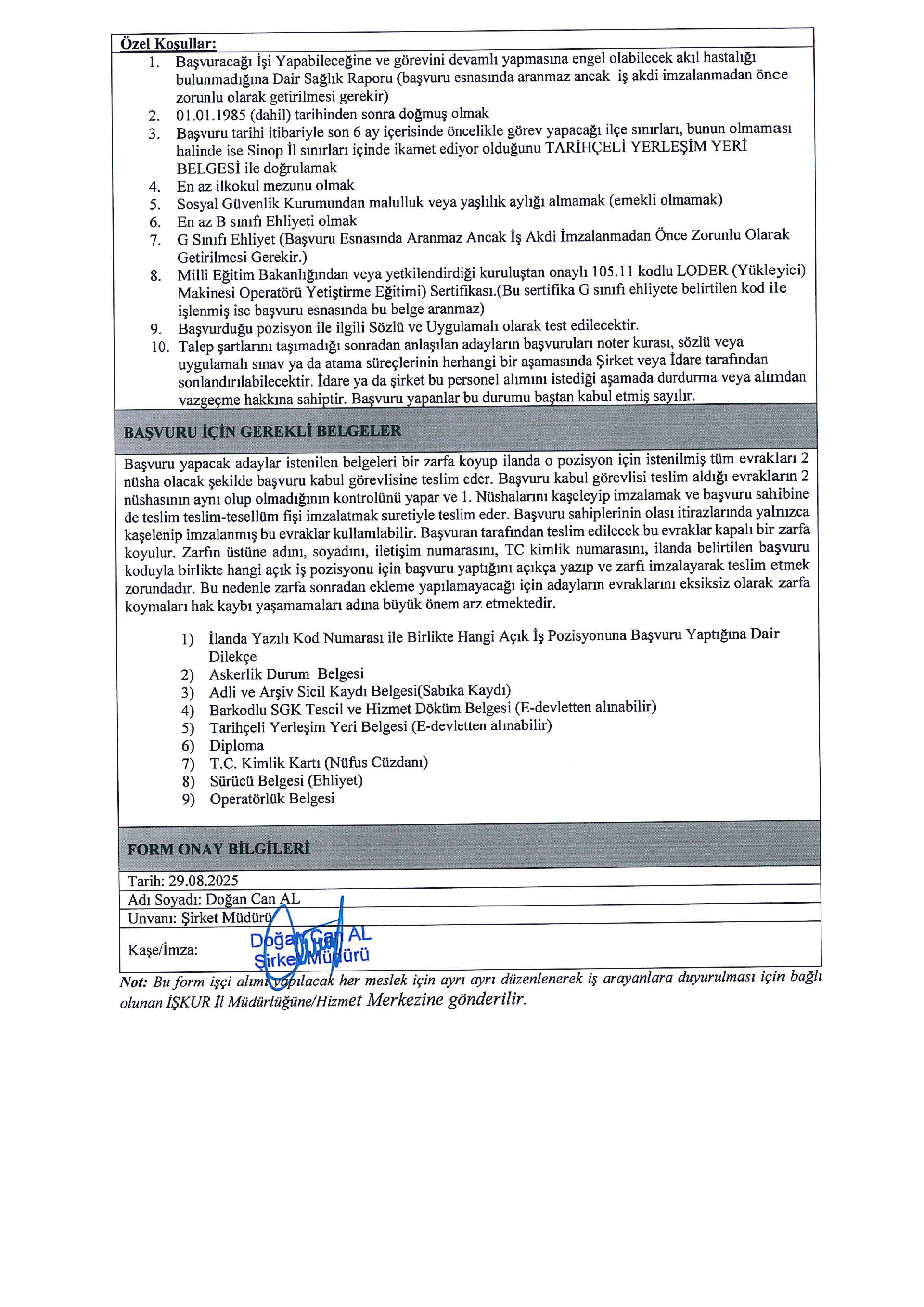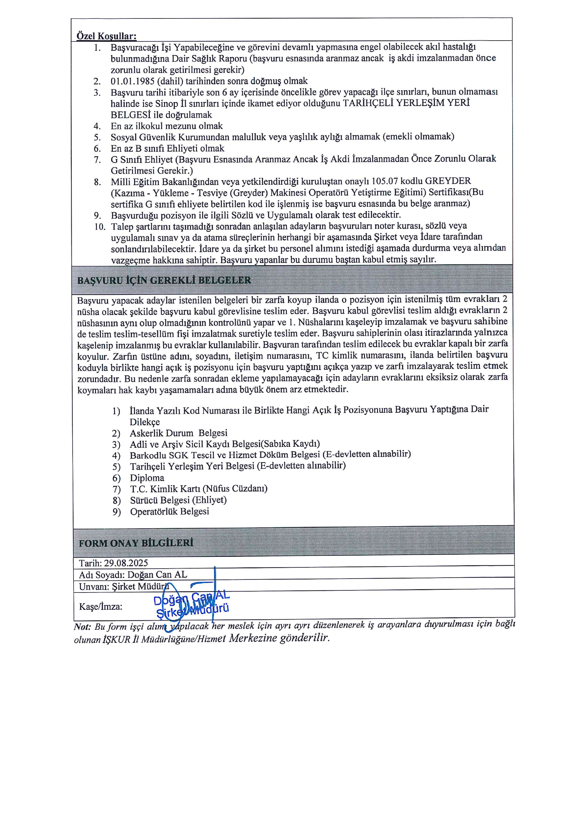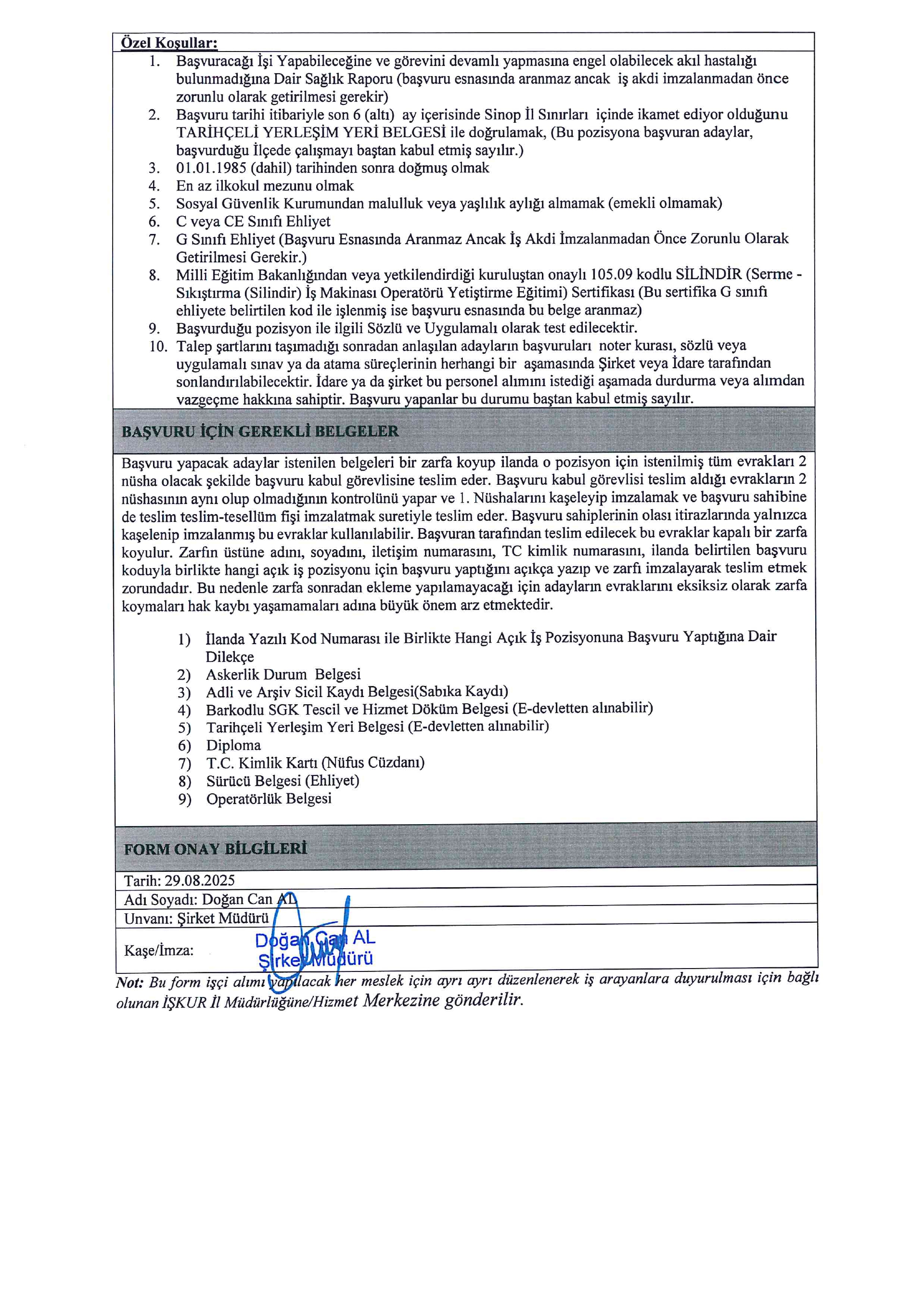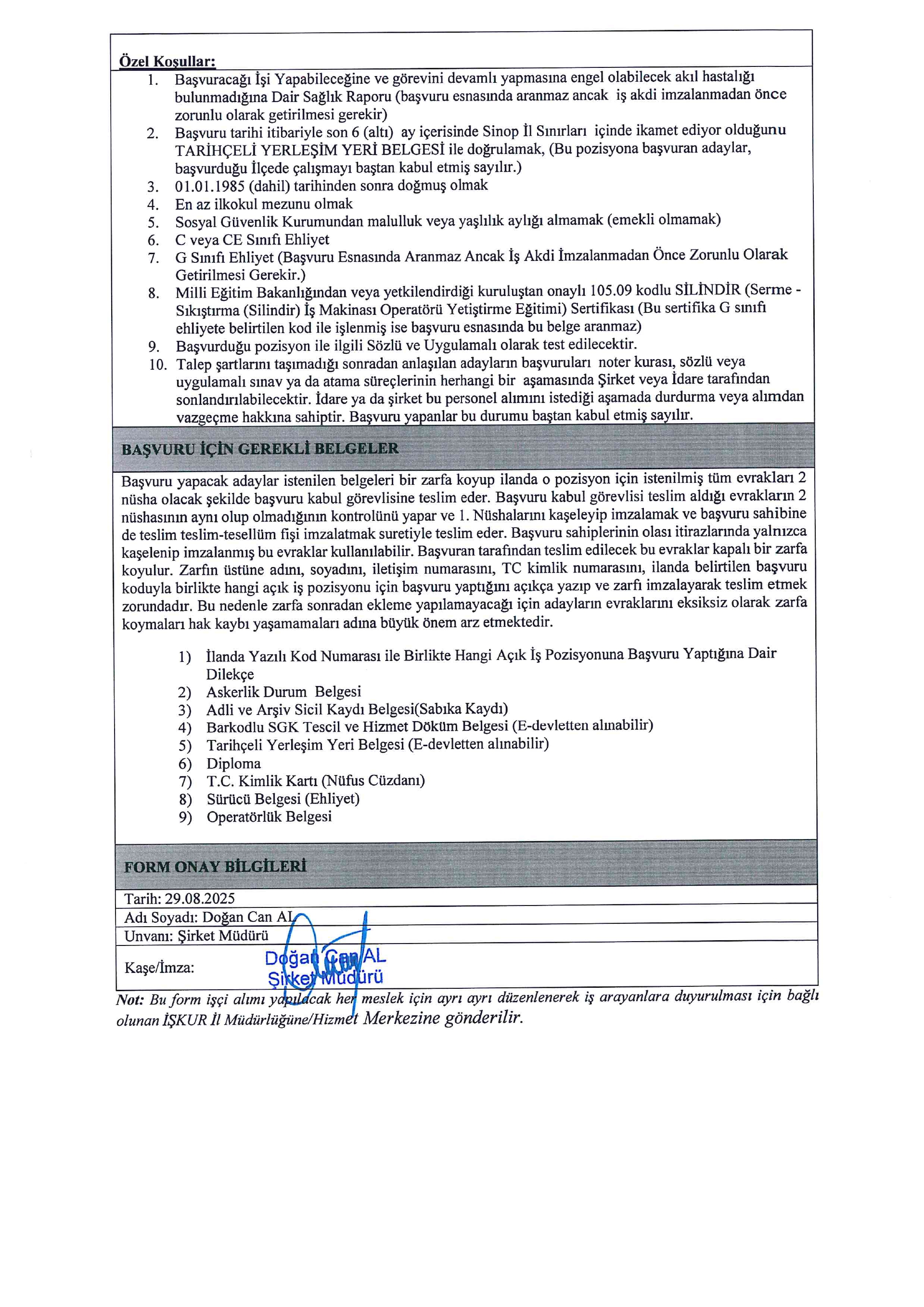 Sinop İl Özel İdaresi 14 İşçi Alacak. Son başvuru tarihi 10 eylül 2025