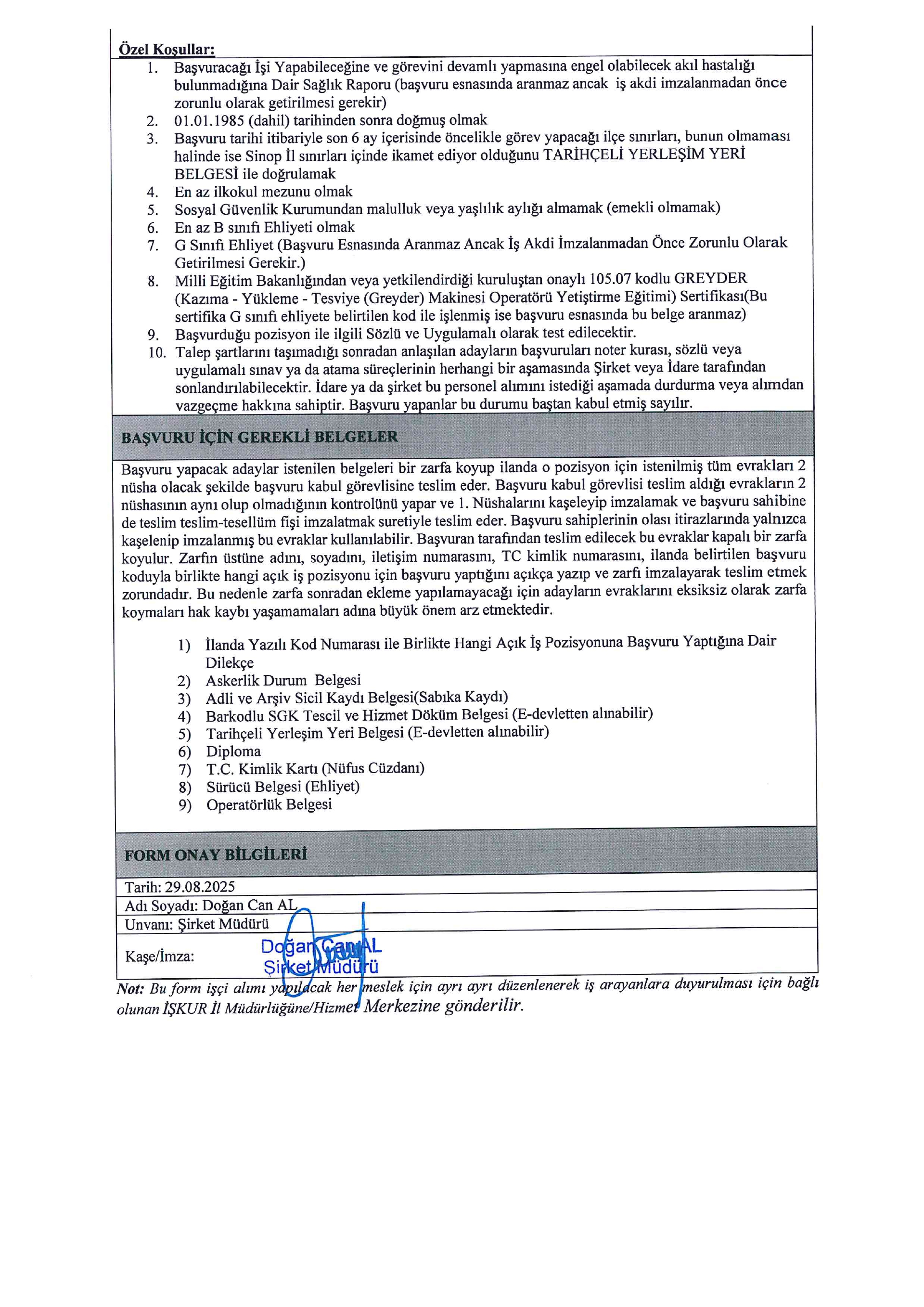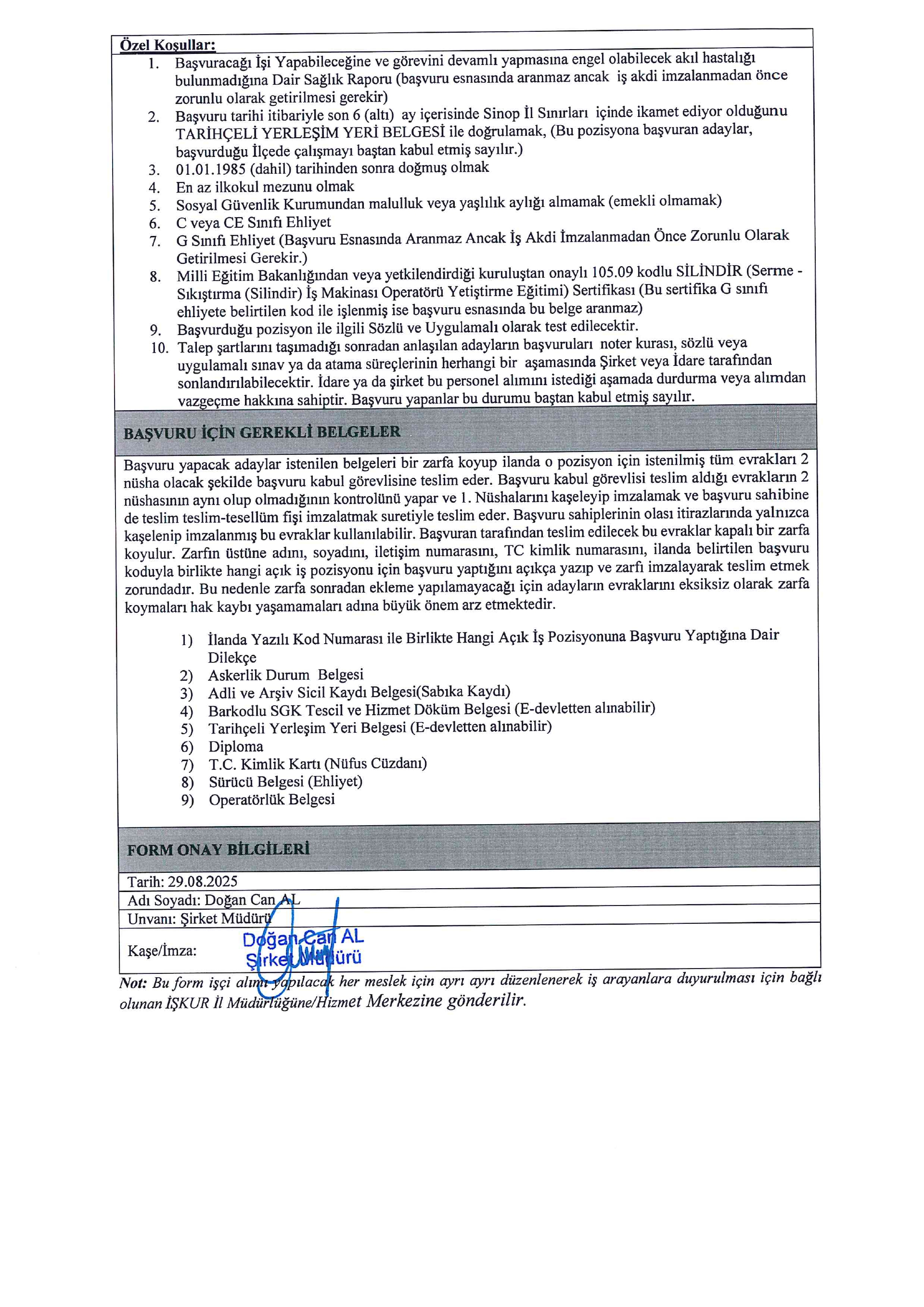İlan Giriş : 01 Eylül 2025 23:26, Son Güncelleme : 01 Eylül 2025 23:34