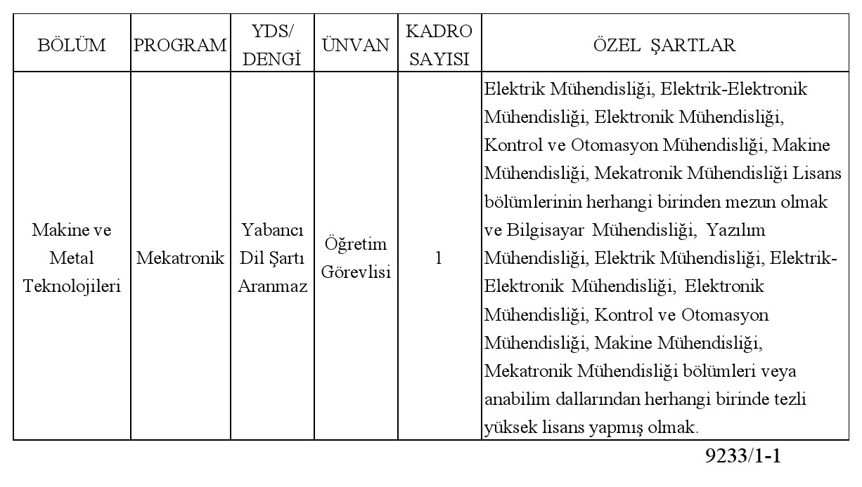 Meslek Yüksekokulumuzun aşağıda belirtilen programlarına 2547 sayılı Kanunun ve Öğretim Üyeliğine Yükseltilme ve Atanma Yönetmeliğinin ilgili maddeleri ile 09.11.2018 tarihli ve 30590 sayılı Resmi Gazete'de yayımlanarak yürürlüğe giren "Öğretim Üyesi Dışındaki Öğretim Elemanları Kadrolarına Yapılacak Atamalarda Uygulanacak Merkezi Sınav ile Giriş Sınavlarına İlişkin Usul ve esaslar Hakkında Yönetmeliğin" ilgili maddeleri uyarınca Öğretim Görevlisi alınacaktır. Adayların 657 sayılı Kanunun 48 inci maddesinde belirtilen şartları taşıması gerekmektedir.
