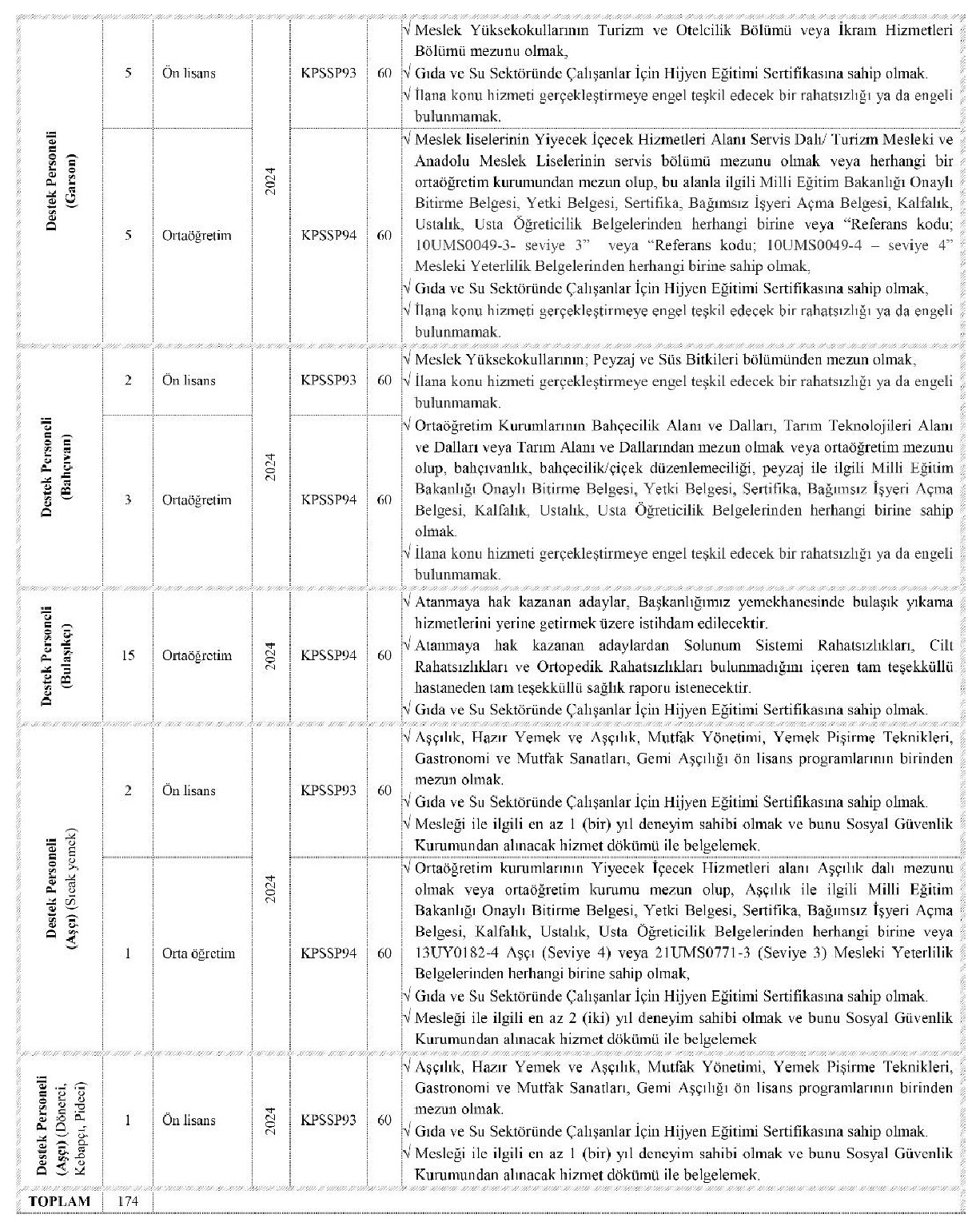 3- Destek Personeli (Aşçı) pozisyonu için;