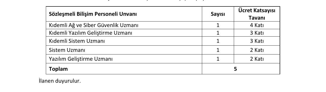 a) Bilişim personeli olarak sözleşme yapılabilecek boş pozisyon sayısı 5 (beş) tir.