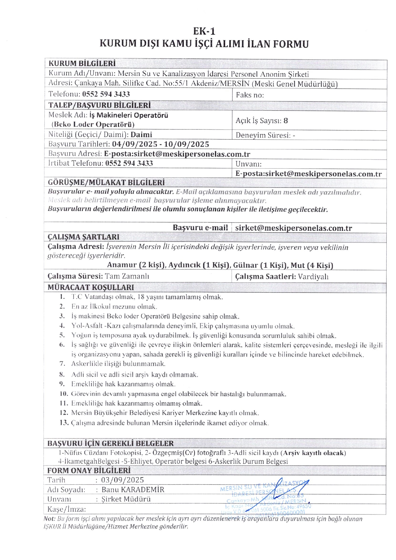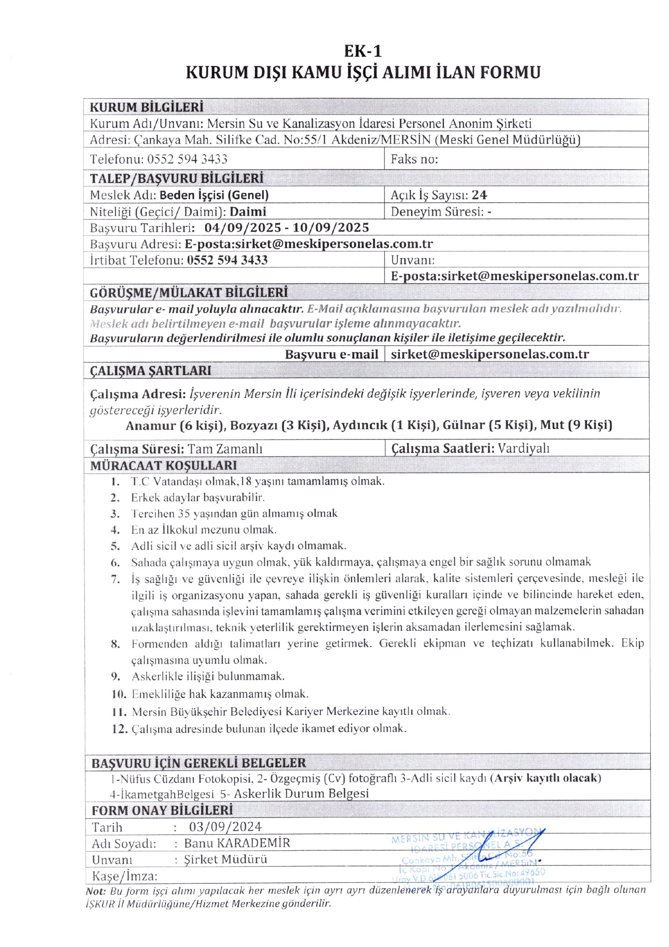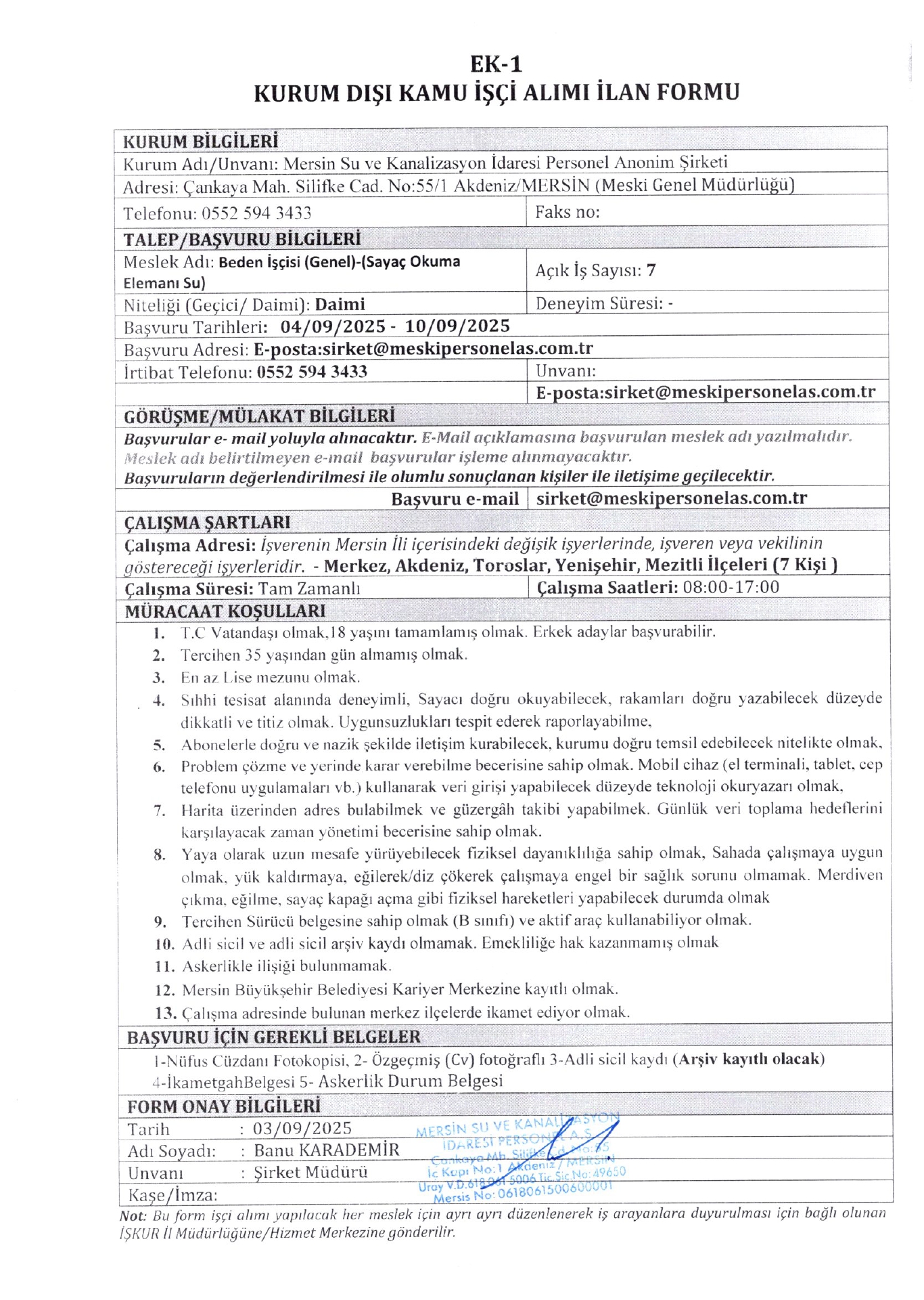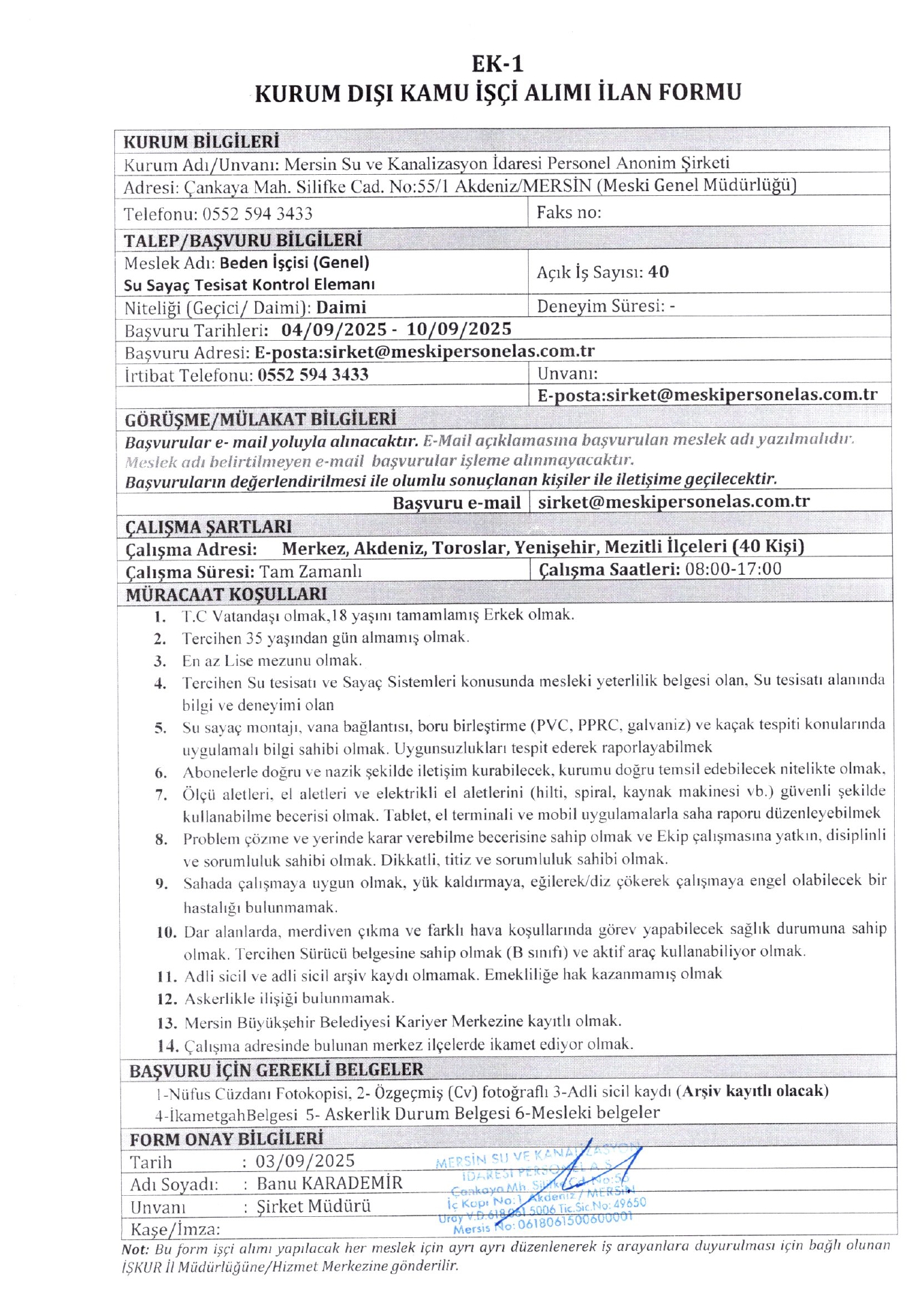 Mersin Su ve Kanalizasyon İdaresi 79 İşçi Alacak. Son başvuru tarihi 10 eylül 2025
