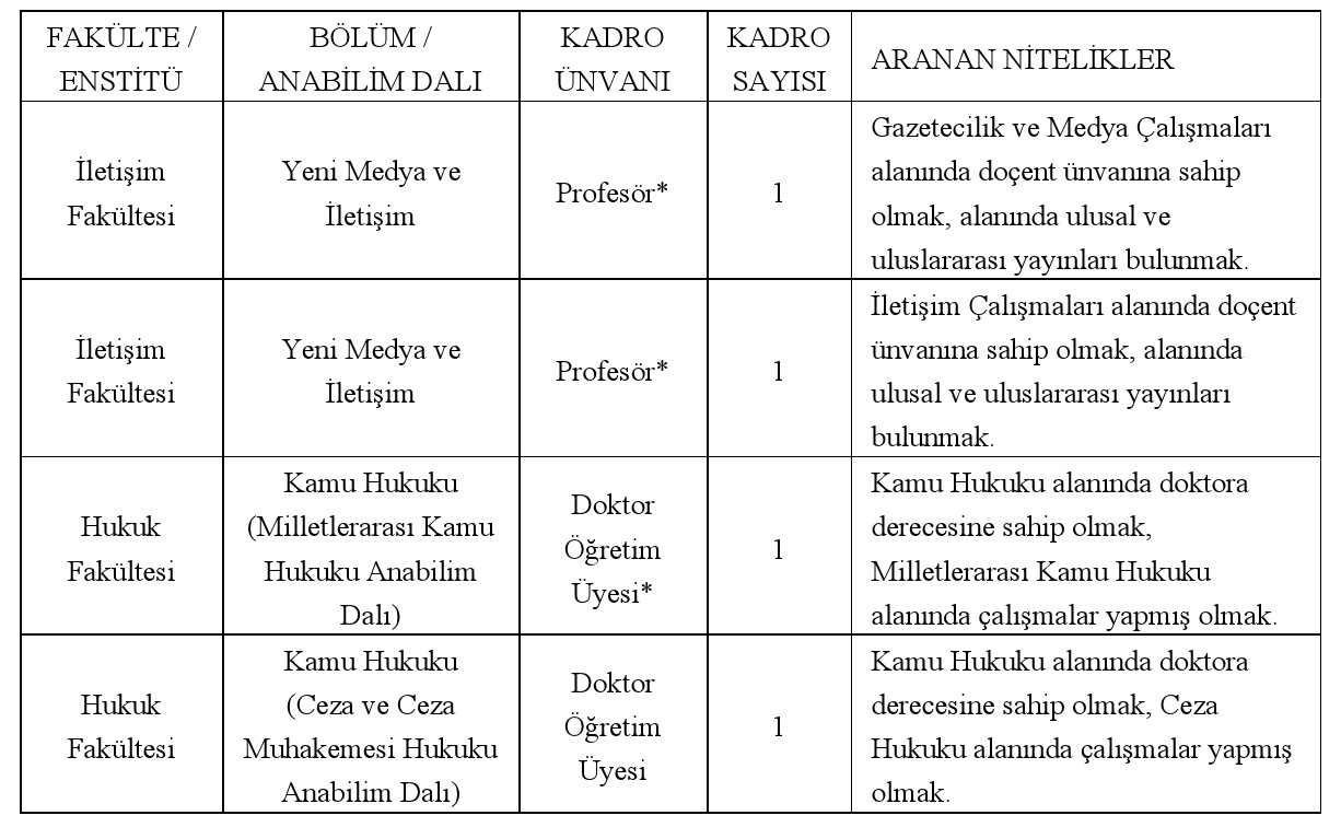 ÖĞRETİM ÜYESİ ALIM İLANI