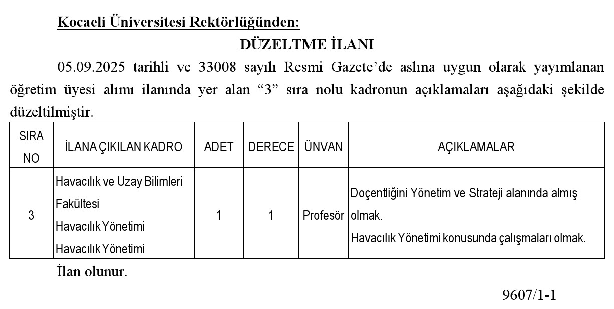 Kocaeli Üniversitesi Öğretim Üyesi ve Elemanı Alım İlanı. Son başvuru tarihi 19 eylül 2025