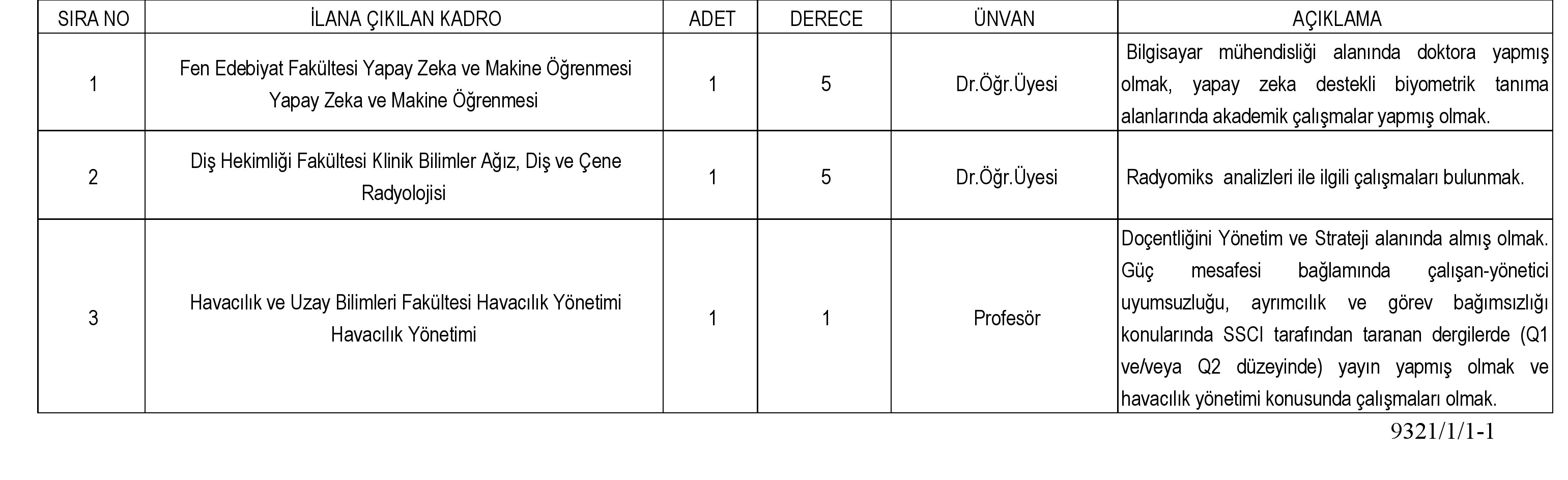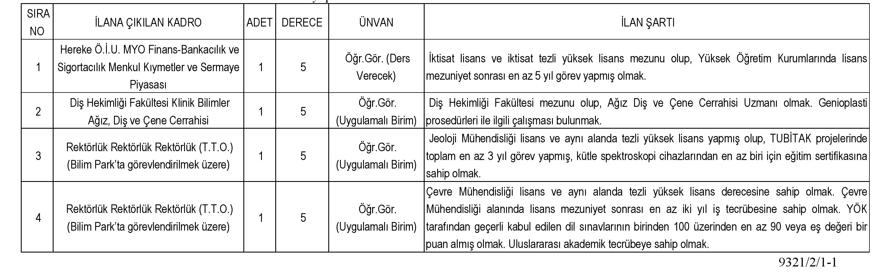 ÖĞRETİM ÜYESİ ALIM İLANI