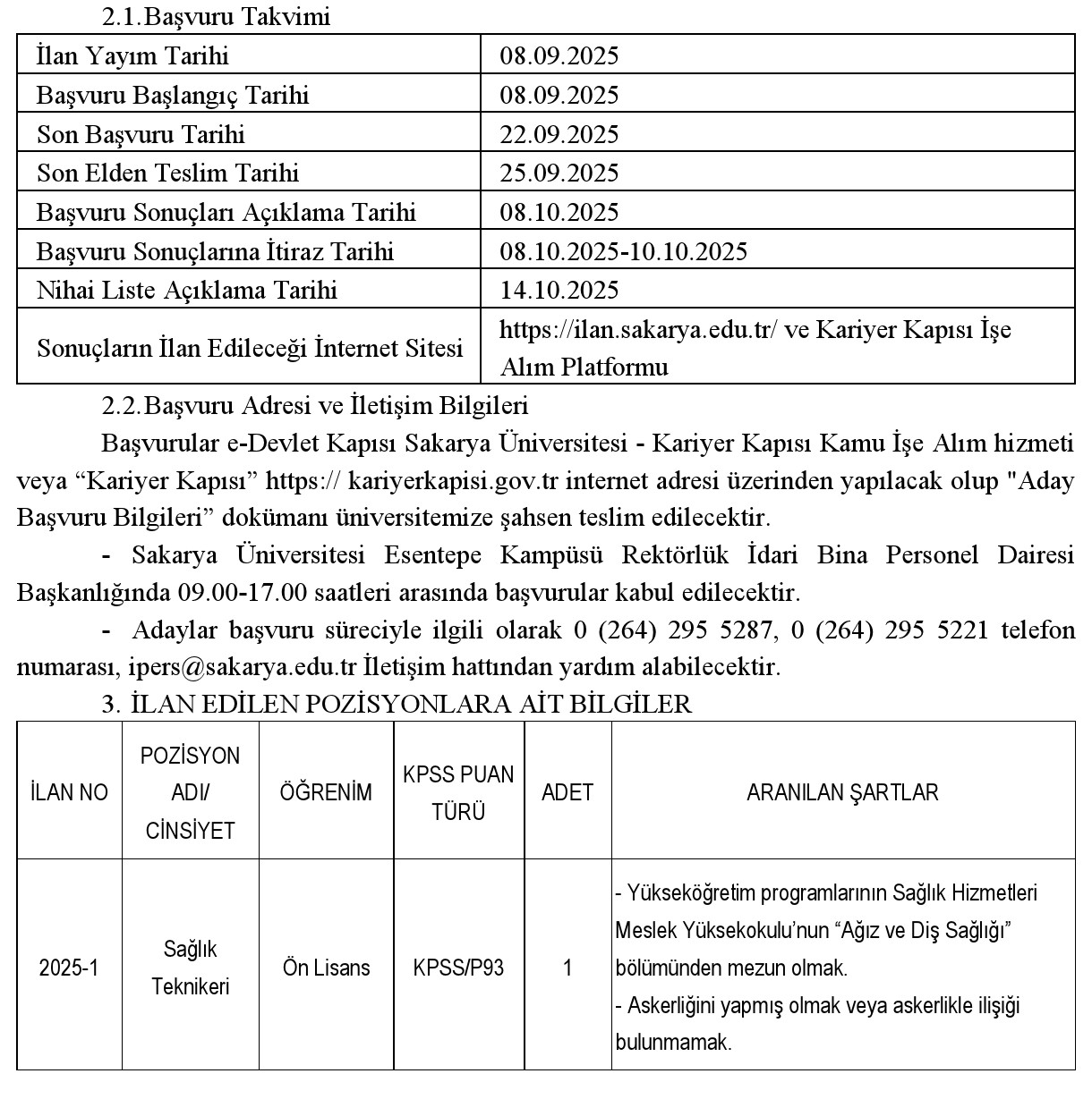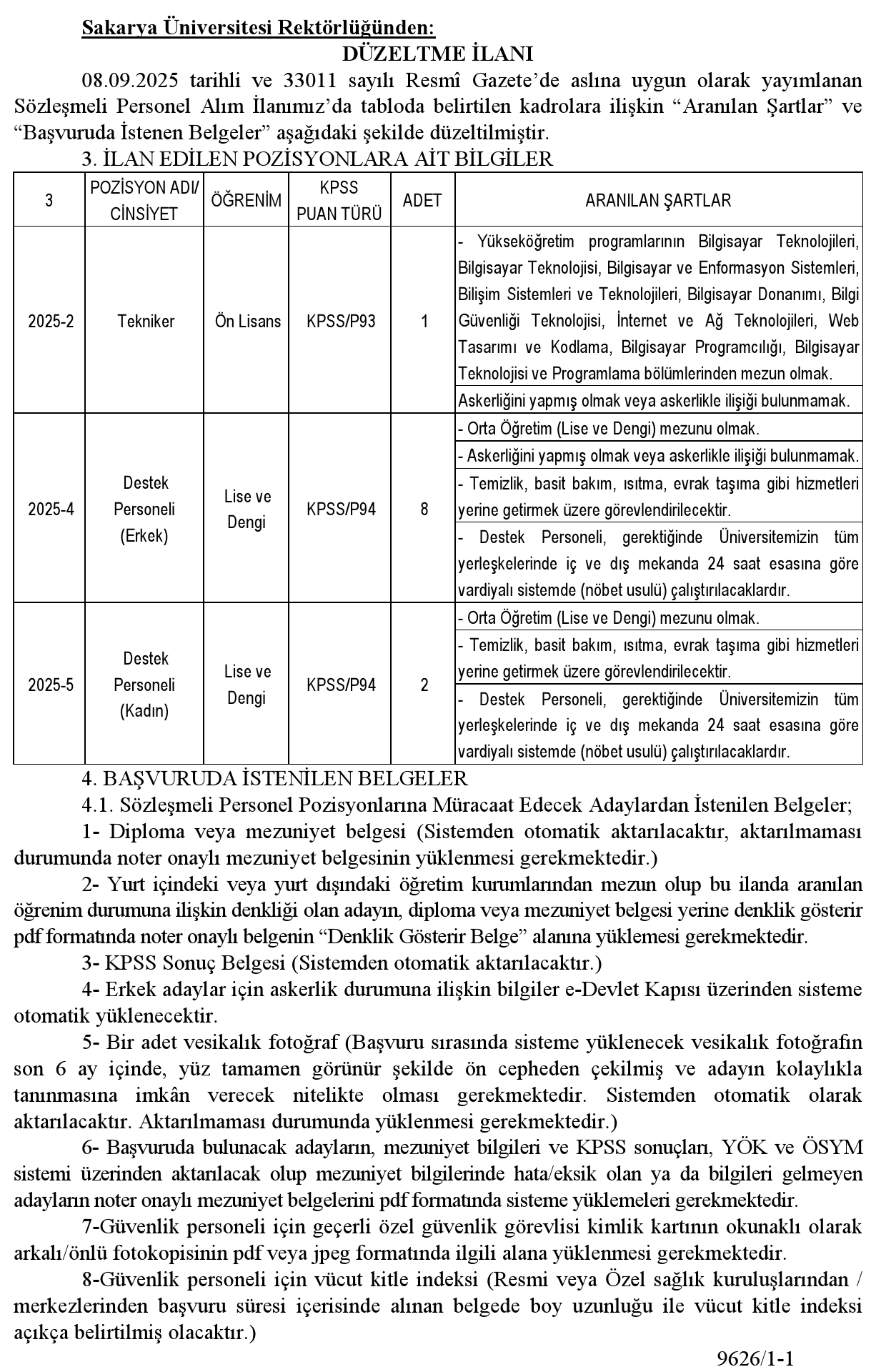 Sakarya Üniversitesi 17 sözleşmeli personel alacak. Son başvuru tarihi 22 eylül 2025