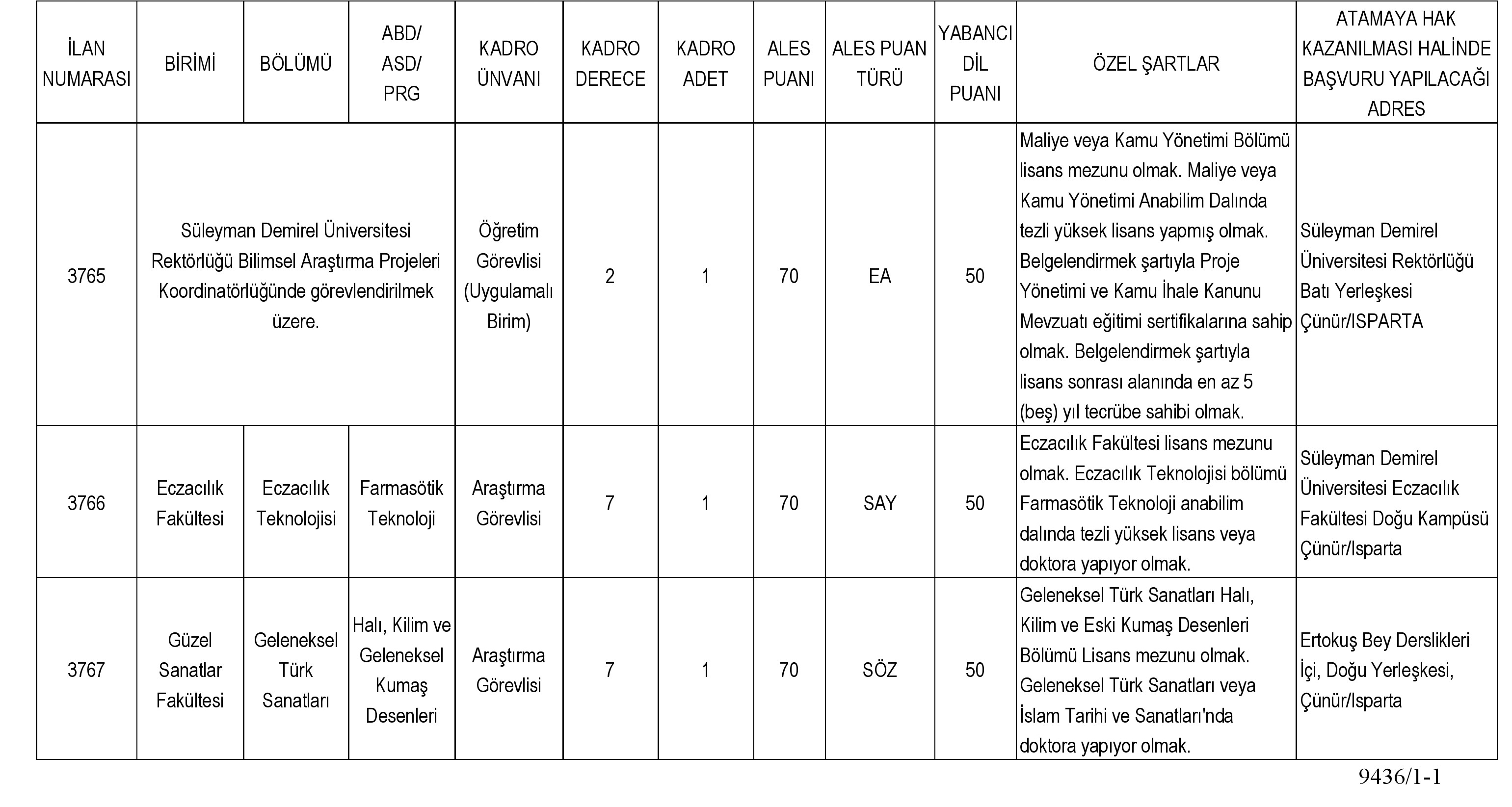 Süleyman Demirel Üniversitesi Öğretim Üyesi ve Elemanı Alım İlanı