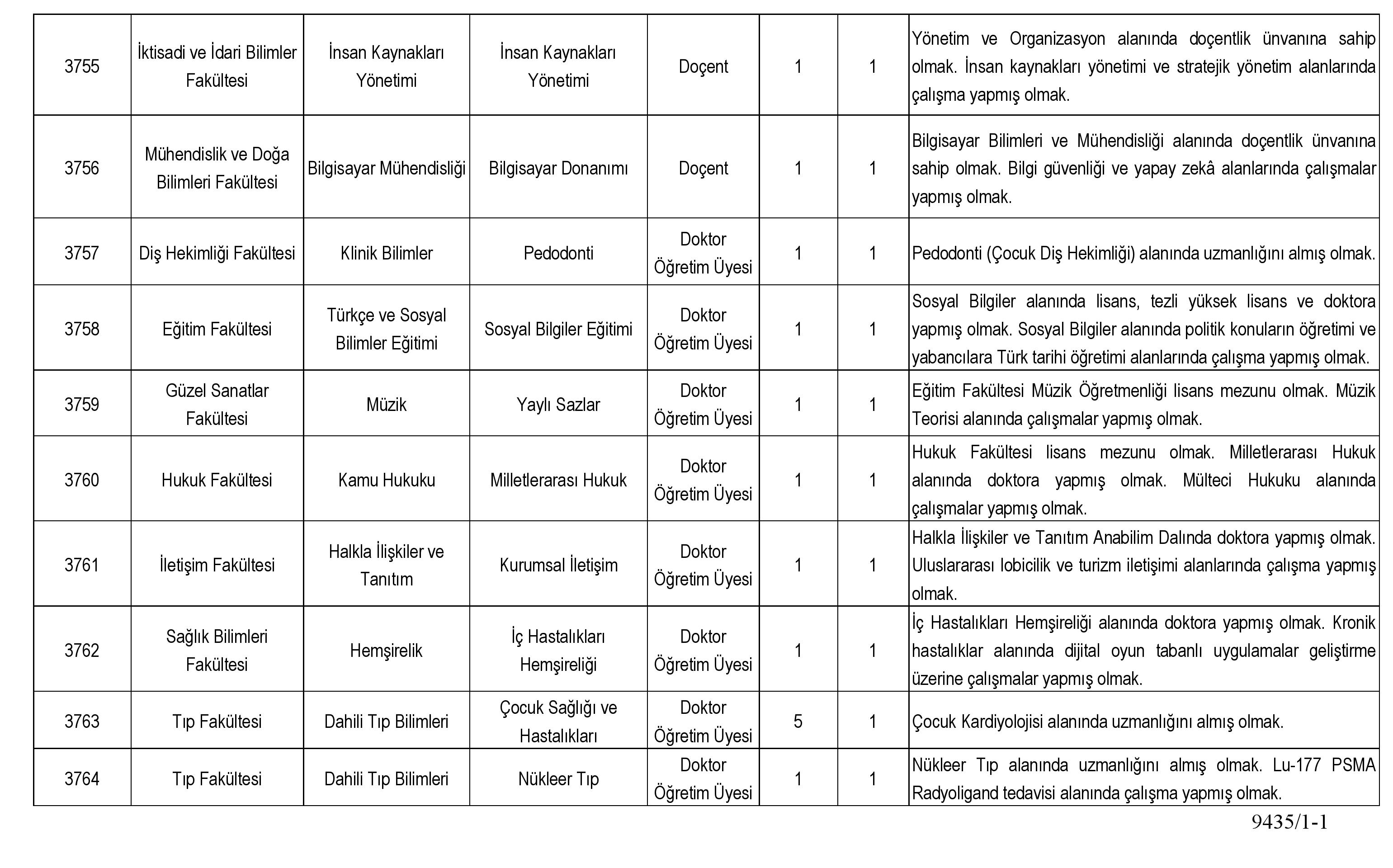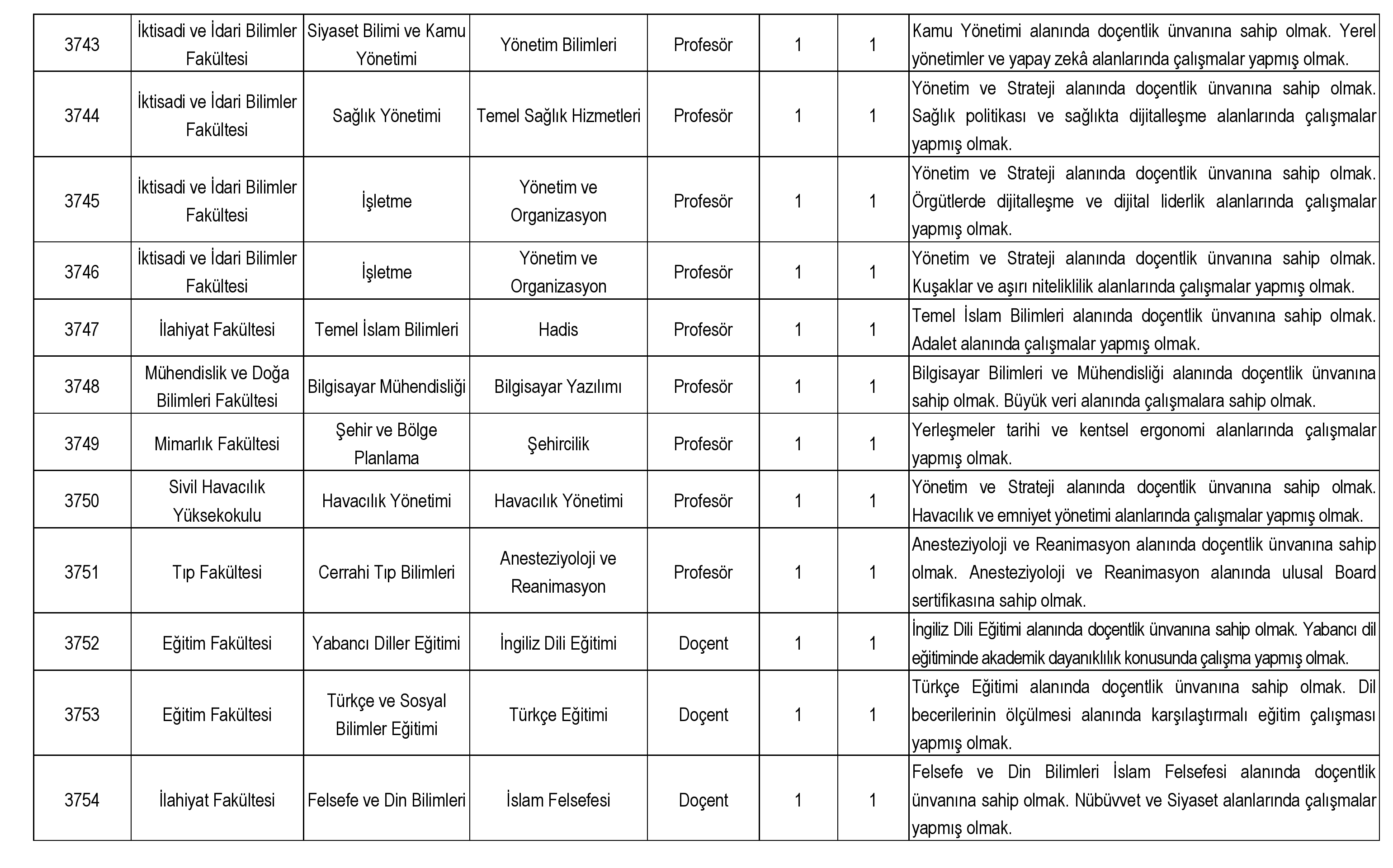 ÖĞRETİM ÜYESİ ALIM İLANI