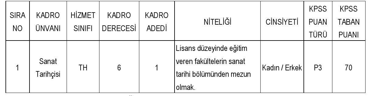 Mardin ili Artuklu Belediye Başkanlığı bünyesinde, 657 sayılı Devlet Memurları Kanununa tabi olarak istihdam edilmek üzere; Mahalli İdarelere İlk Defa Atanacaklara Dair Sınav ve Atama Yönetmeliği hükümlerine göre aşağıda unvanı, sınıfı, derecesi, adedi, nitelikleri, KPSS puan türü, KPSS taban puanı ve diğer şartları taşımak kaydıyla belirtilen boş kadrolara açıktan atama yoluyla memur alınacaktır.