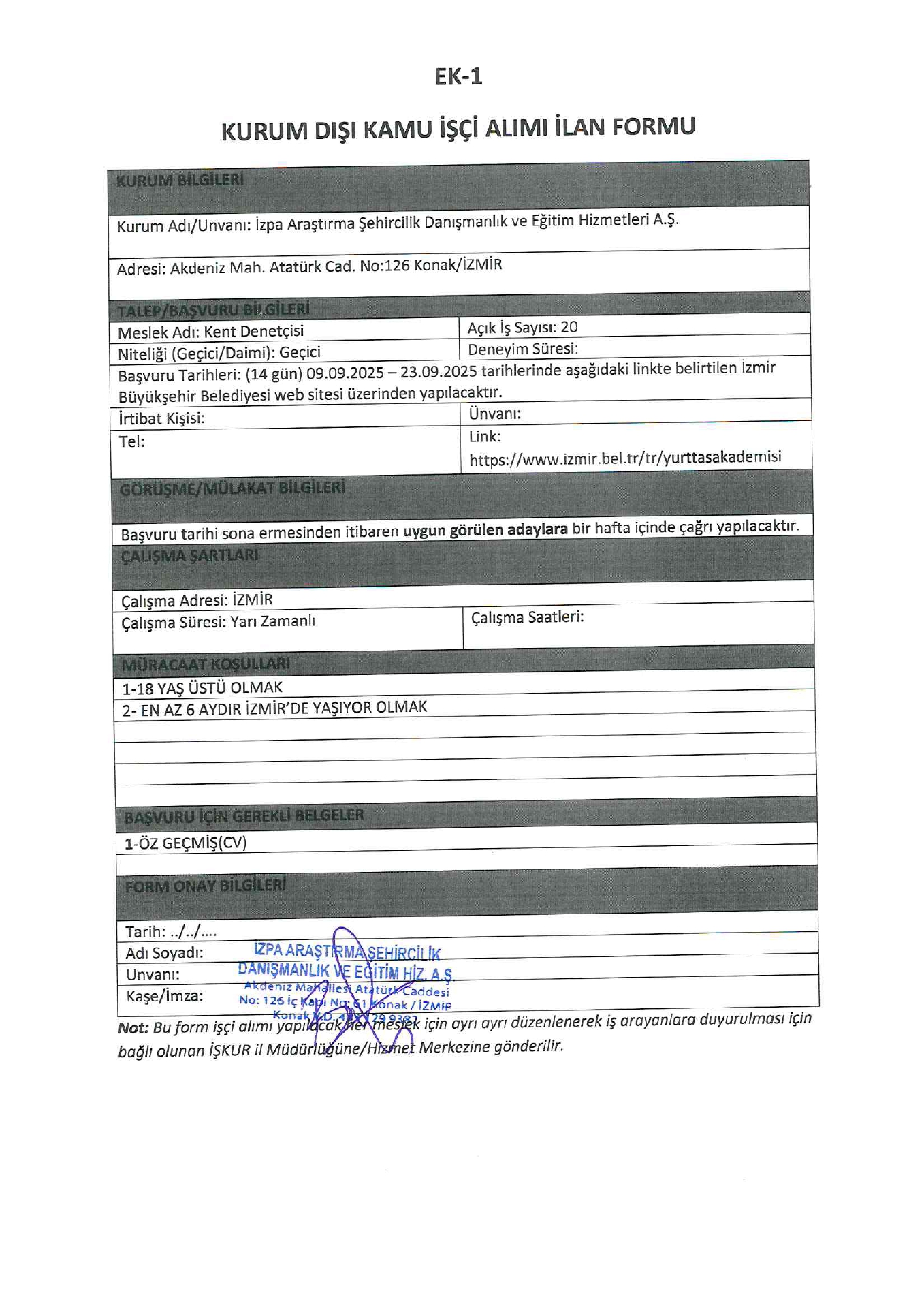 İzmir İzpa Araştırma Geçici 20 İşçi Alacak. Son başvuru tarihi 23 eylül 2025
