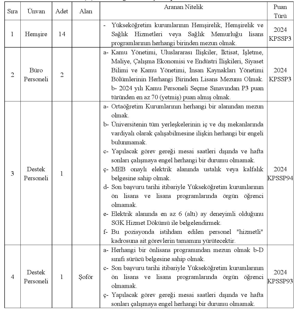 SÖZLEŞMELİ PERSONEL ALIM İLANI