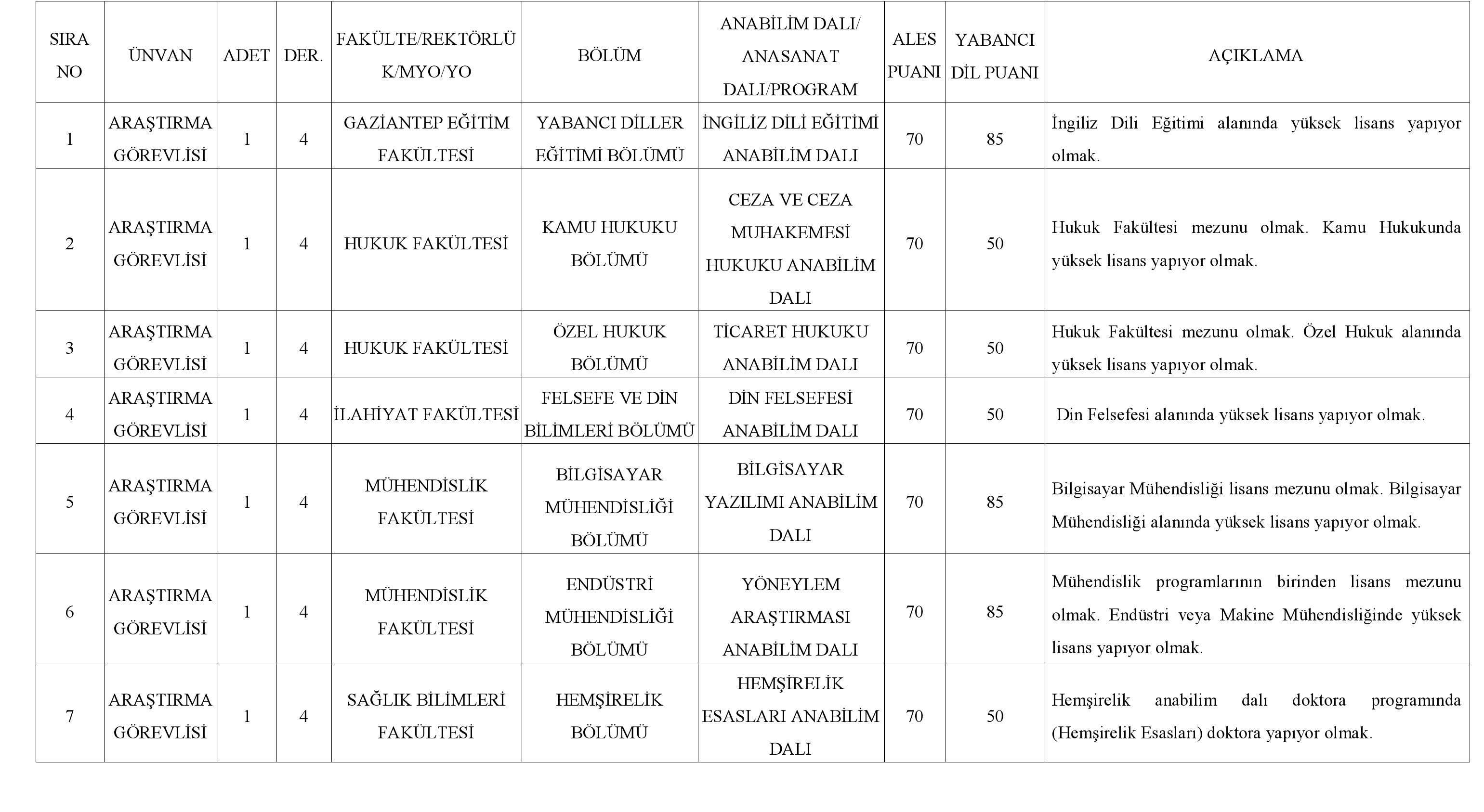 Not: Ayrıca ilanımıza Gaziantep Üniversitesi web sayfasından ulaşılabilir.