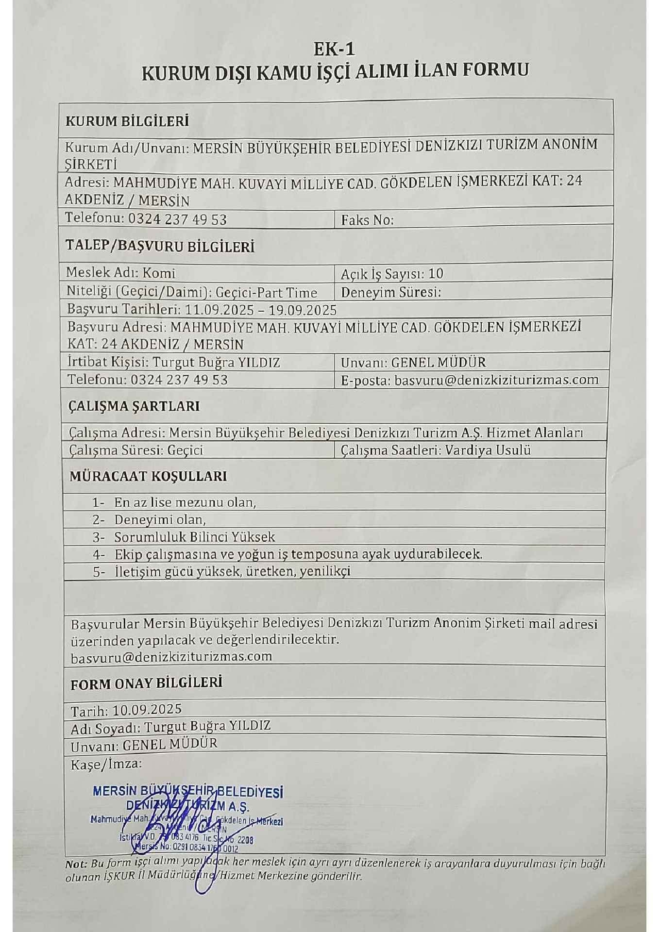 İlan Giriş : 10 Eylül 2025 23:38, Son Güncelleme : 10 Eylül 2025 23:19