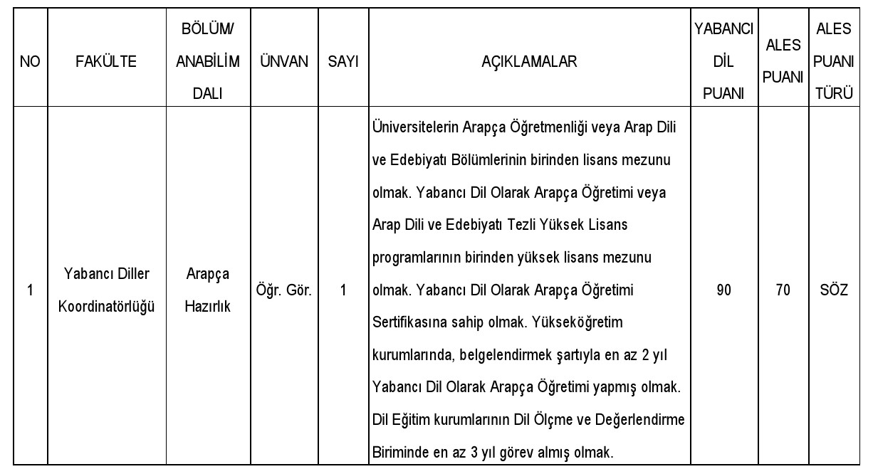 Gazete'de yayımlanan "Öğretim Üyesi Dışındaki Öğretim Elemanı Kadrolarına Yapılacak Atamalarda Uygulanacak Merkezi Sınav ile Giriş Sınavlarına İlişkin Usul ve Esaslar Hakkındaki Yönetmelik" te yer alan genel ve özel koşulları taşıyor olmak.