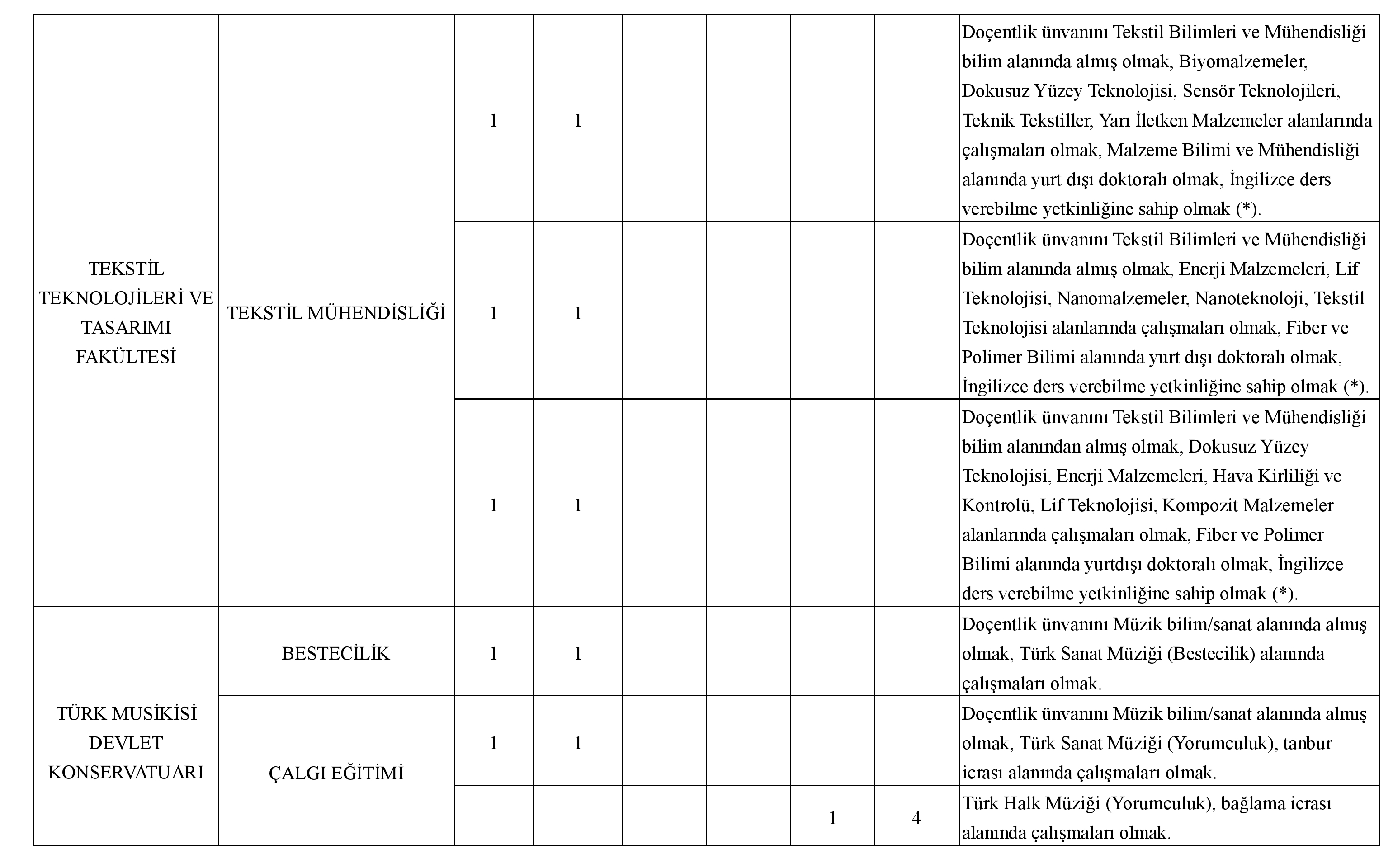 (*) 23.03.2016 tarih ve 29662 sayılı Resmi Gazete'de yayımlanan "Yüksek Öğretim Kurumlarında Yabancı Dil Öğretimi ve Yabancı Dille Öğretim Yapılmasında Uyulacak Esaslara İlişkin Yönetmelik" uyarınca İngilizce ders verebilme yetkinliğine sahip olmak. (İlgili yönetmeliğin son haline www.mevzuat.gov.tr adresinden ulaşılmakta olup kanıtlayıcı belgenin sunulması gerekmektedir.)