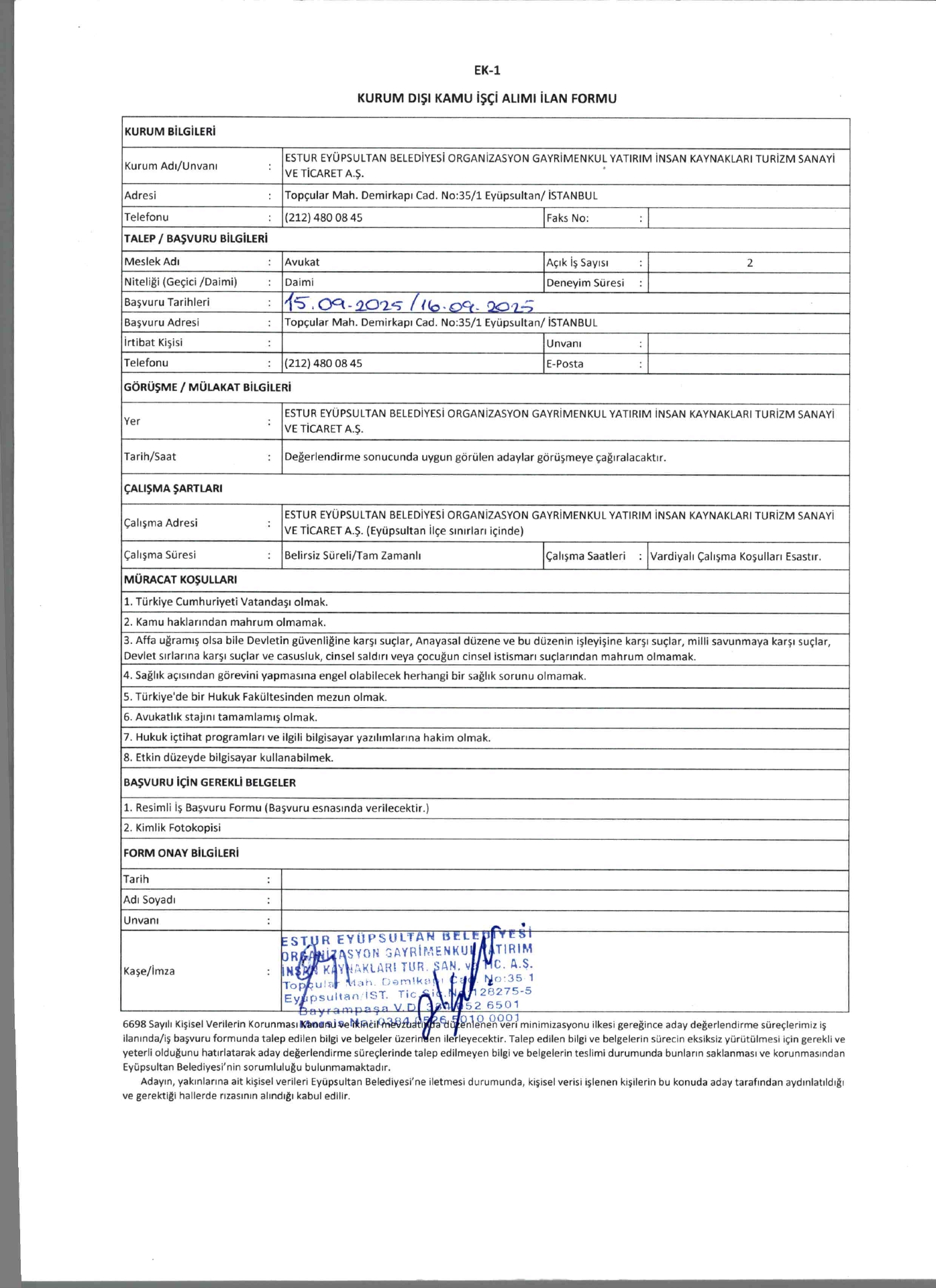 İstanbul Estur 2 İşçi Alacak. Son başvuru tarihi 16 eylül 2025