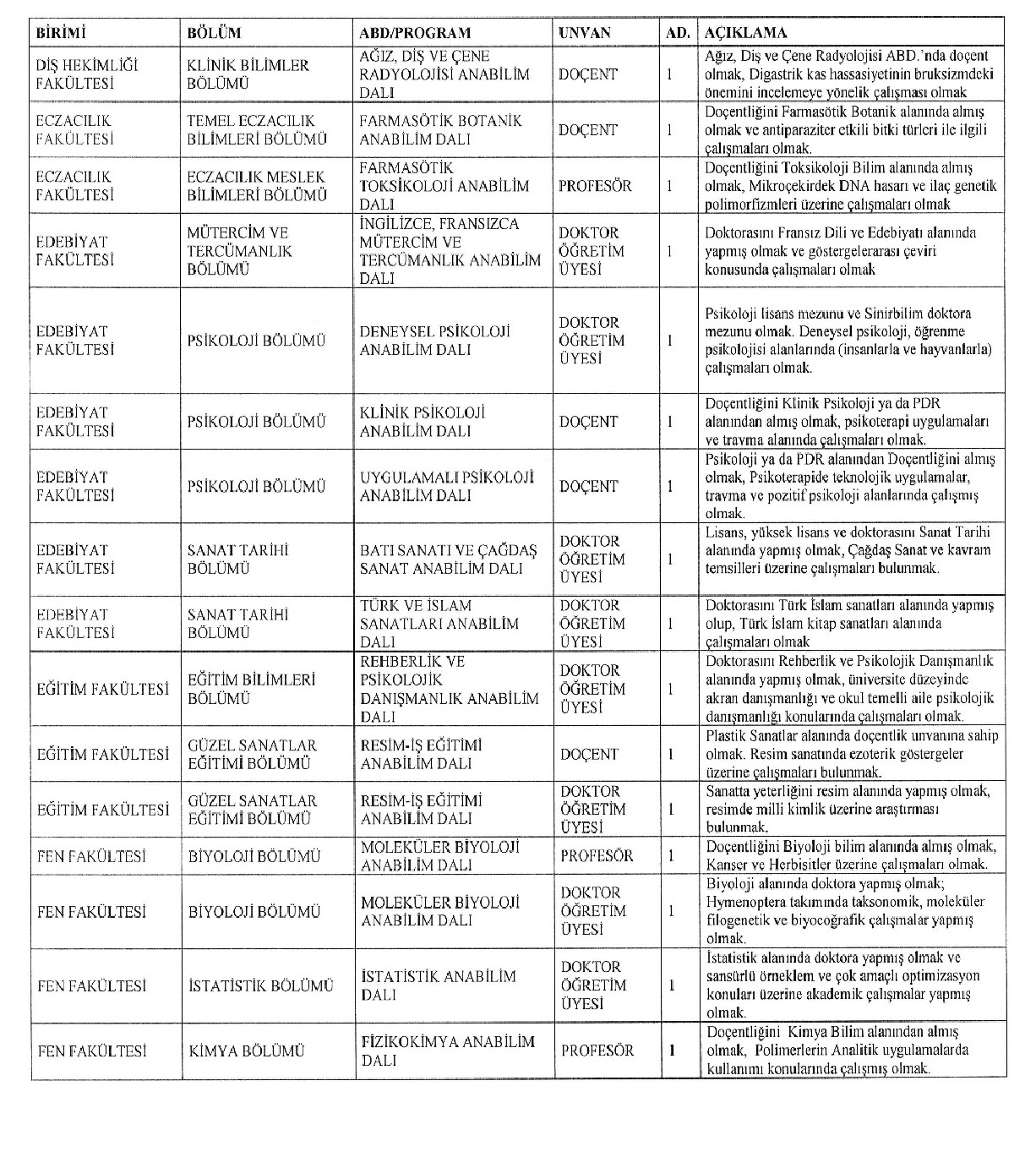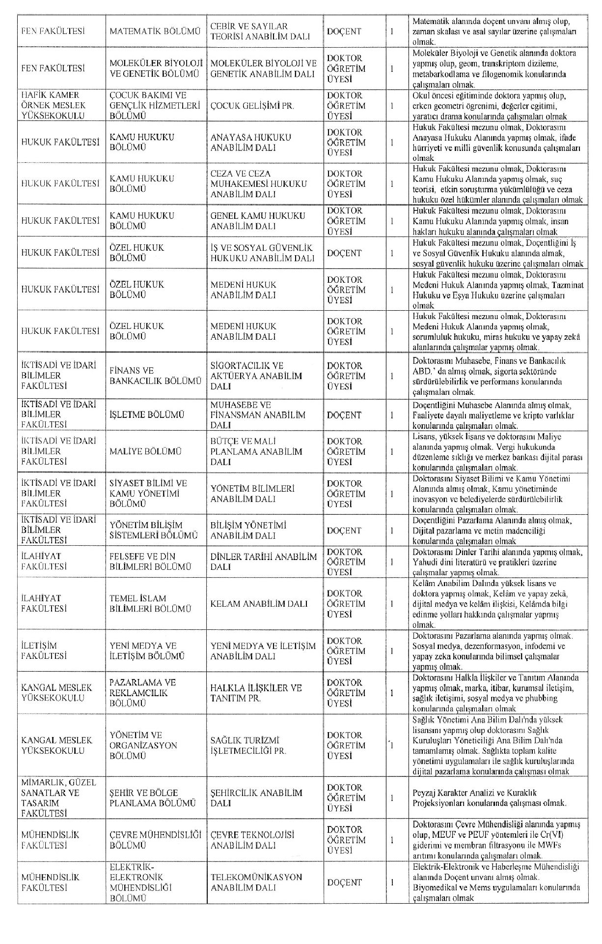 ÖĞRETİM ÜYESİ ALIM İLANI