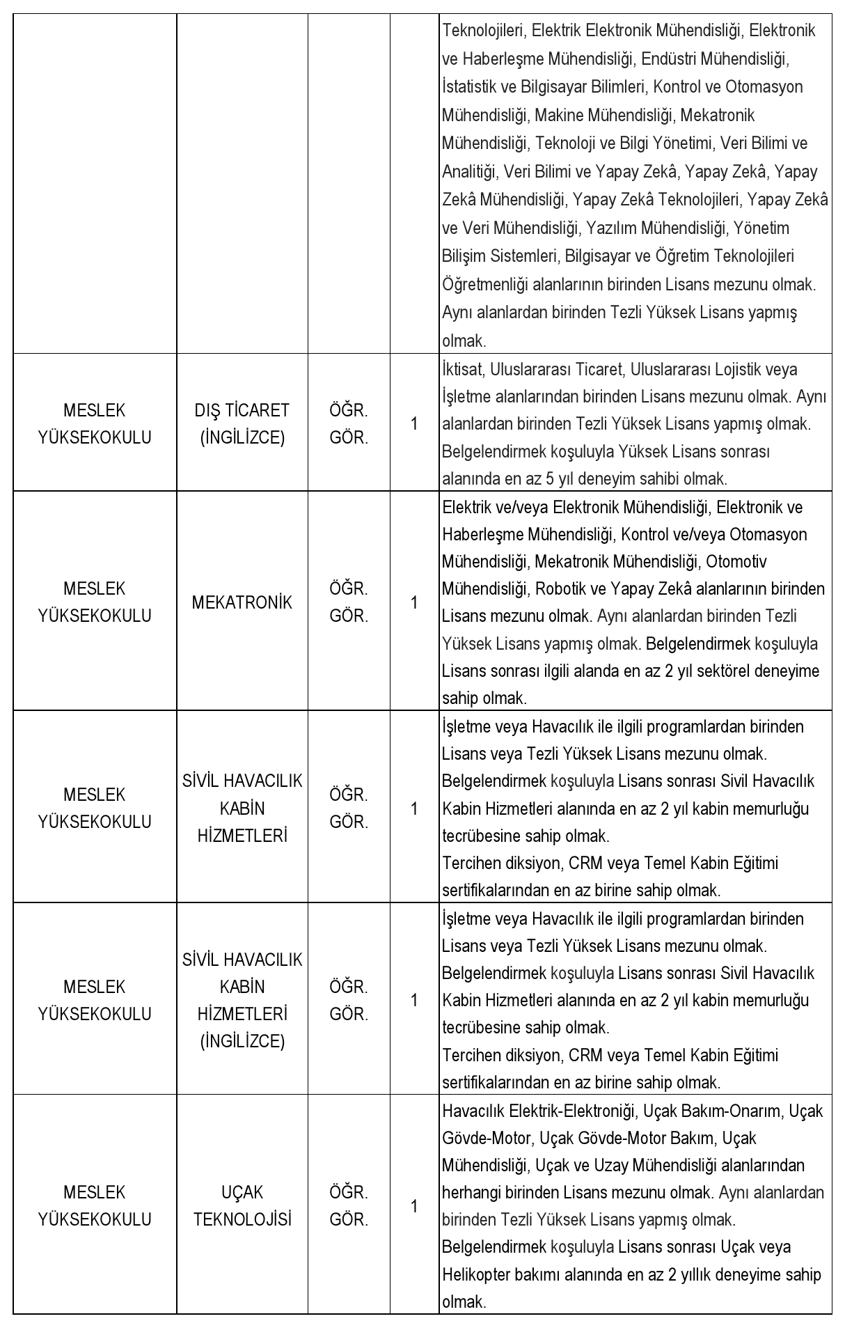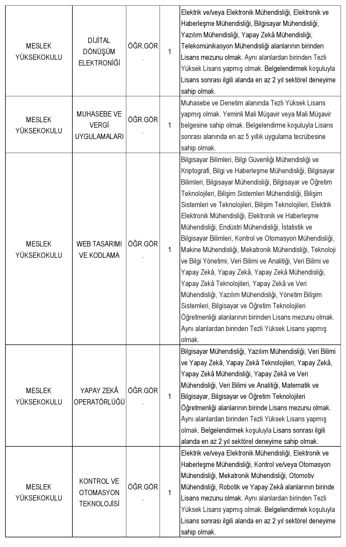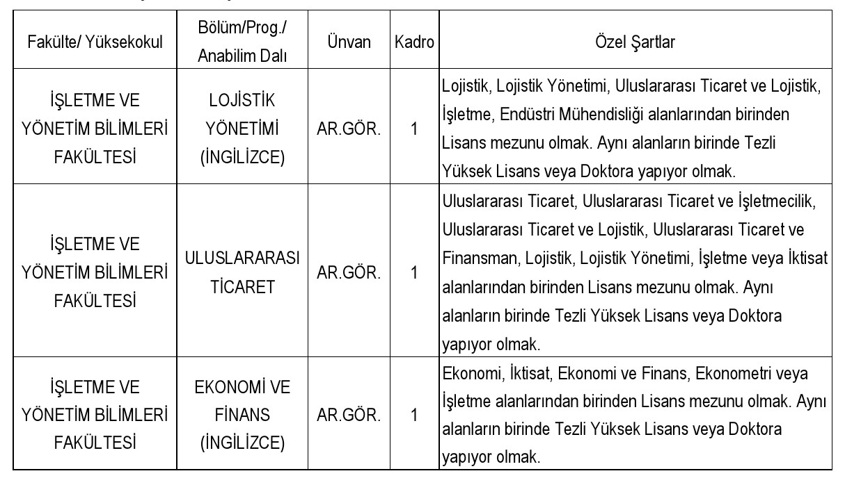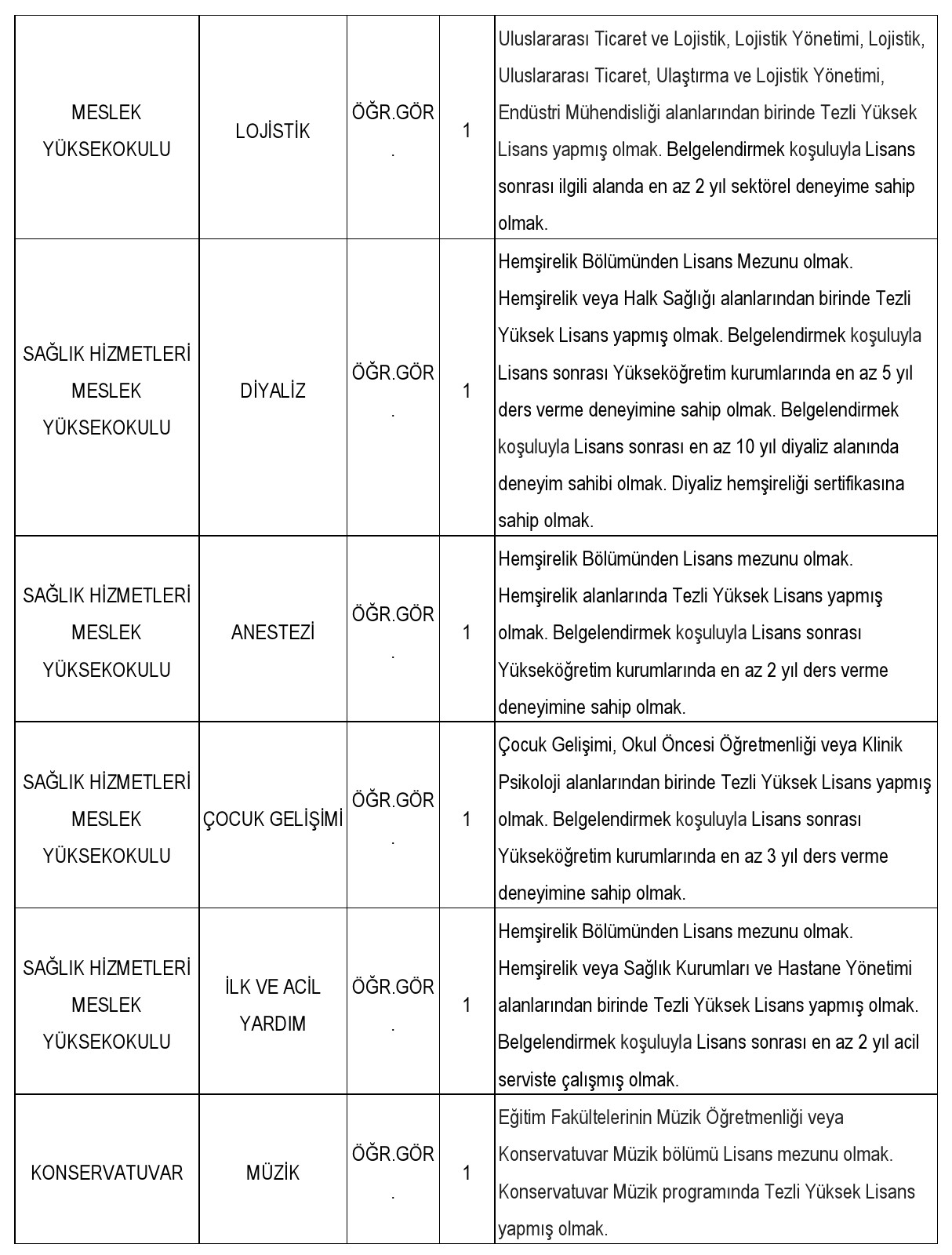 Üniversitemize 2547 sayılı Yükseköğretim Kanunu ve 09.11.2018 tarih ve 30590 sayılı Resmi Gazetede yayımlanarak yürürlüğe giren "Öğretim Üyeliği Dışındaki Öğretim Elemanı Kadrolarına Yapılacak Atamalarda Uygulanacak Merkezi Sınav İle Giriş Sınavlarına İlişkin Usul ve Esaslar Hakkında Yönetmeliği'nin" ilgili maddeleri uyarınca aşağıda nitelikleri belirtilen kadrolara Öğretim Elemanları alınacaktır.