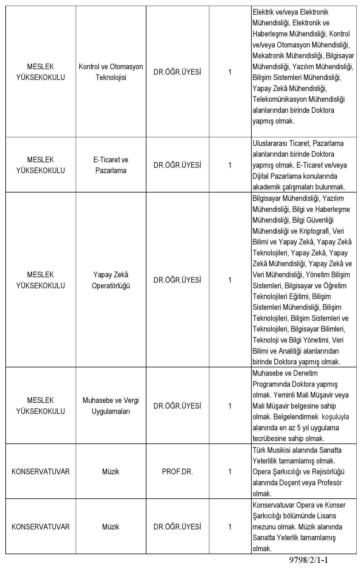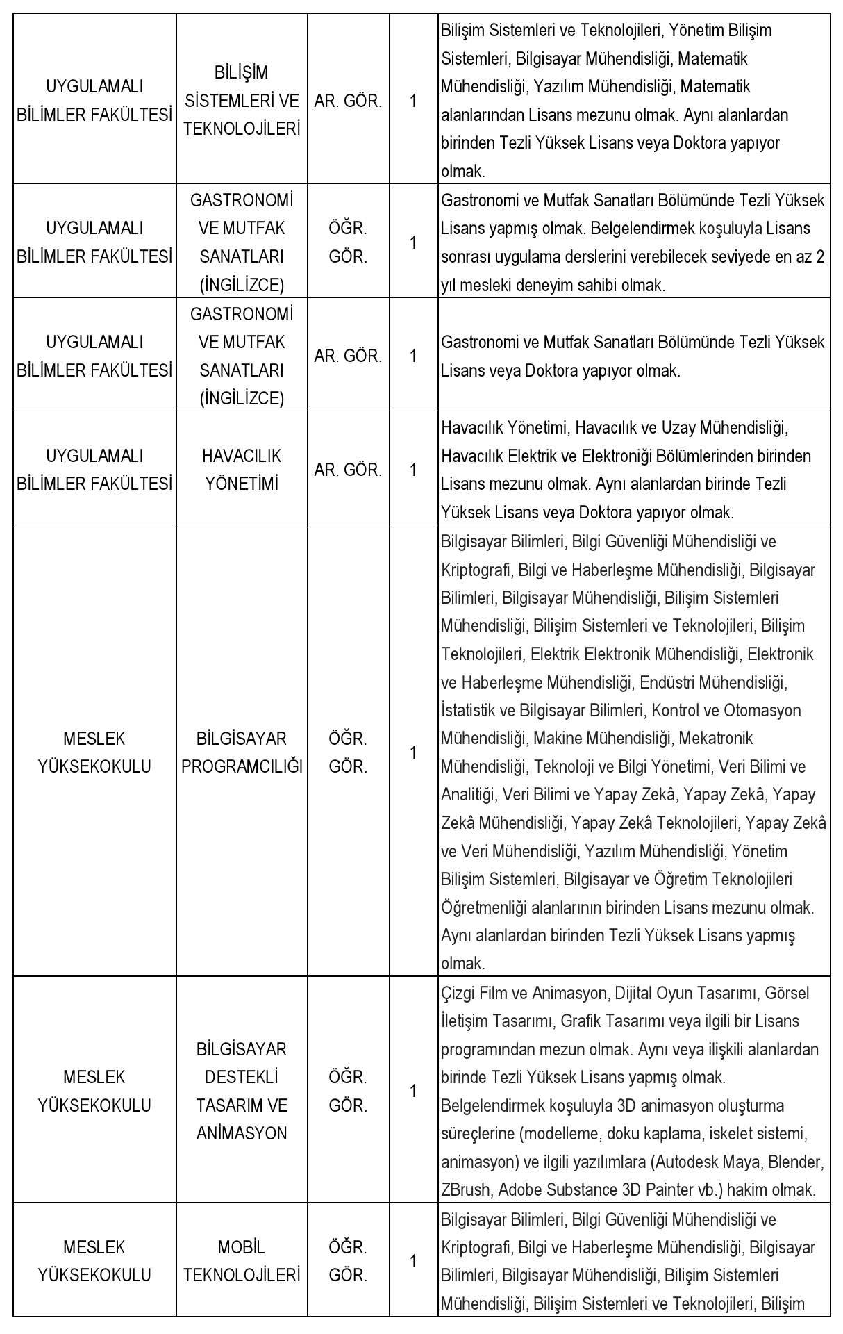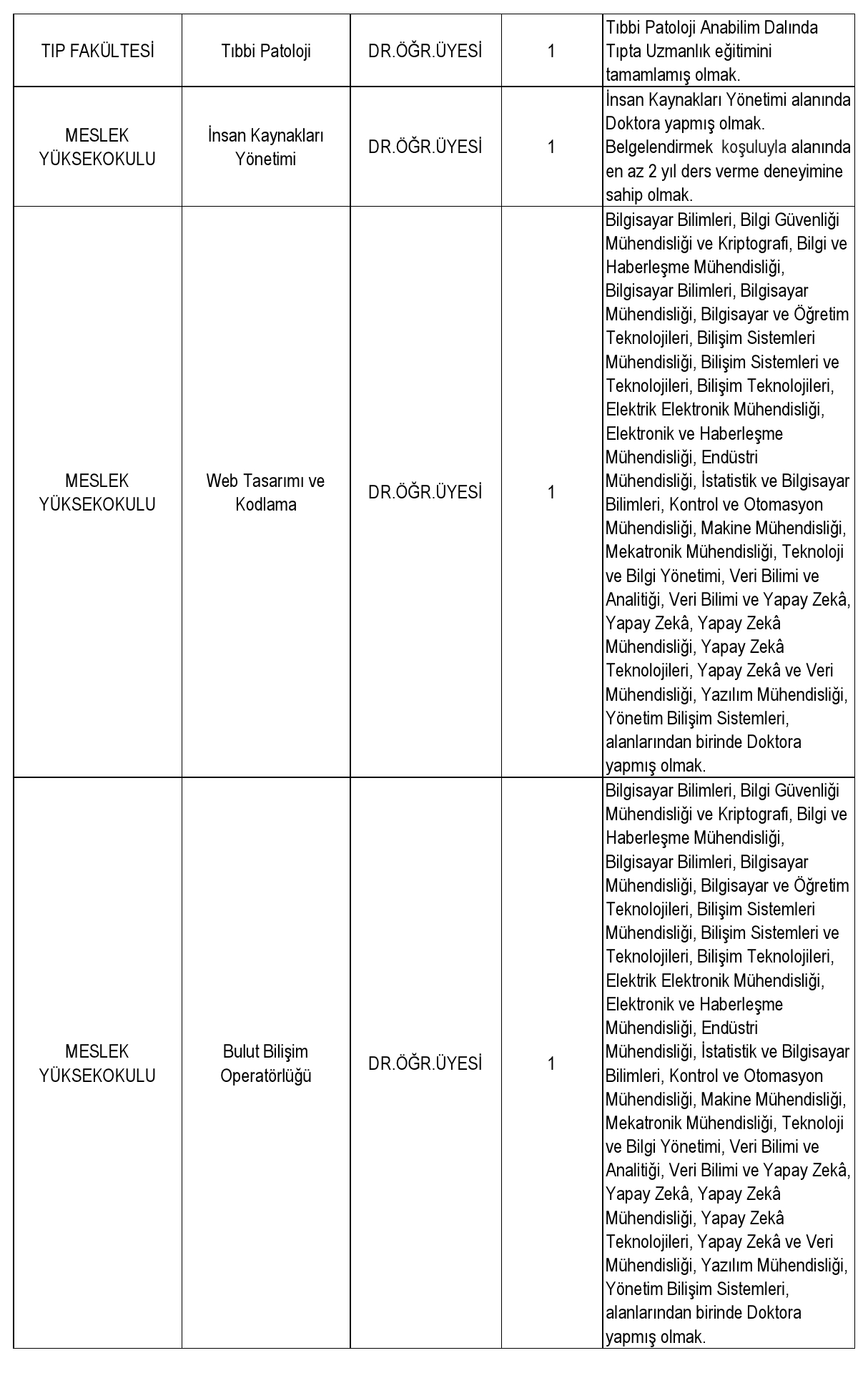 Üniversitemize 2547 sayılı Yükseköğretim Kanunu ve 12.06.2018 tarih ve 30449 sayılı Resmi Gazete'de yayımlanarak yürürlüğe giren "Öğretim Üyeliği Yükseltilme ve Atanma Yönetmeliği'nin" ilgili maddeleri uyarınca aşağıda nitelikleri belirtilen kadrolara Öğretim Üyeleri alınacaktır.