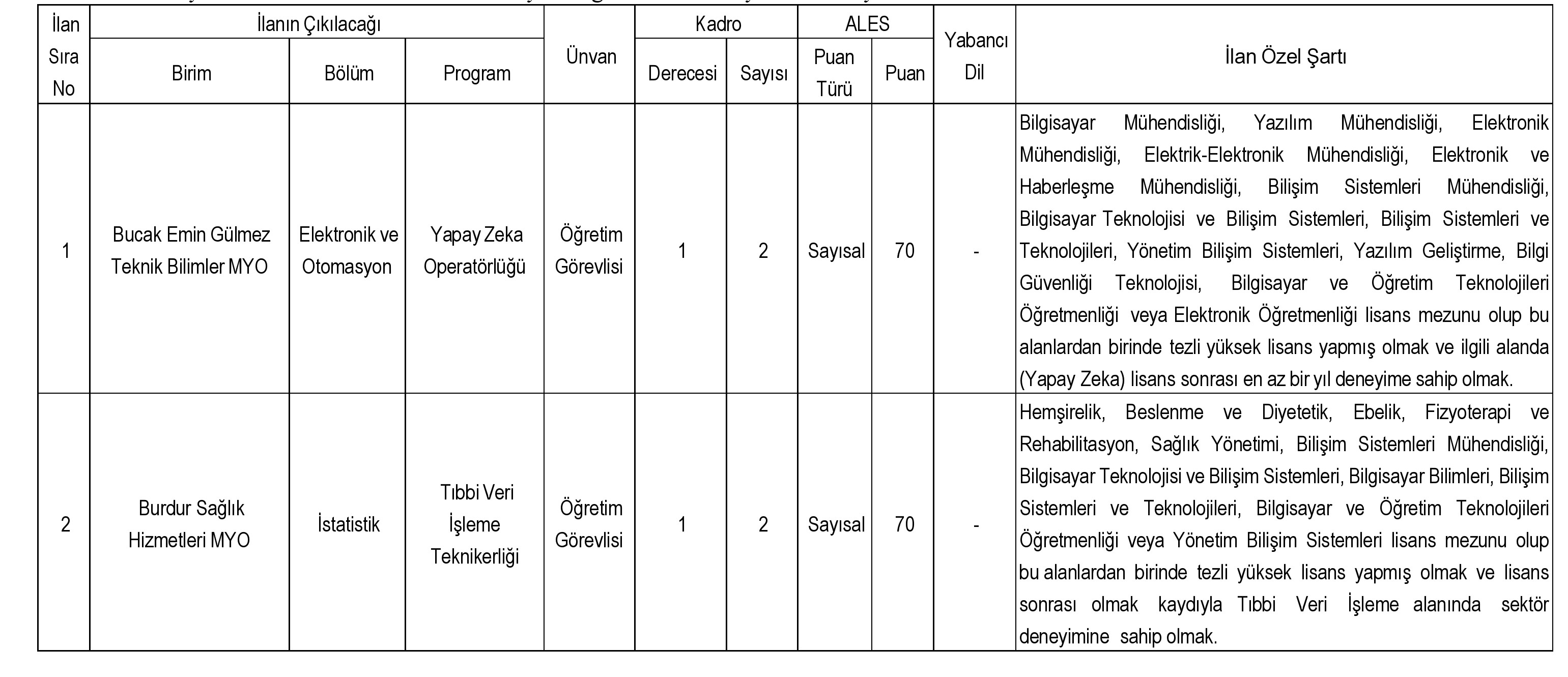 Burdur Mehmet Akif Ersoy Üniversitesi Öğretim Elemanı Alım İlanı. Son başvuru tarihi 29 Eylül 2025