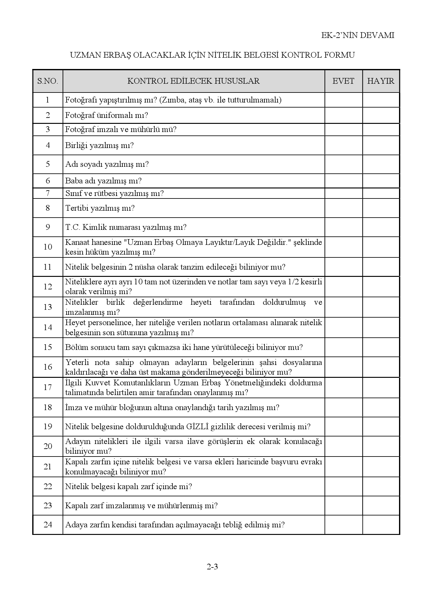 UYARI : "Uzman Erbaş olmaya layık değildir" kanaatli nitelik belgesi gönderilmeyecek, adaya tebliğ edilerek şahsi dosyasına konulacaktır. Bu adaylar sınavlara gönderilmeyecektir. Ayrıca adaya ait başvuruyla ilgili herhangi bir belge, resmi evrak kanalı ile gönderilmeyecektir.