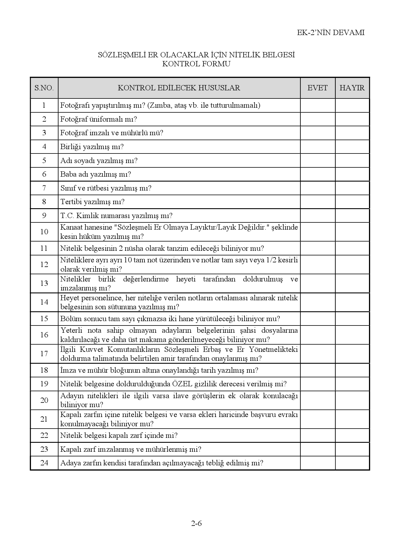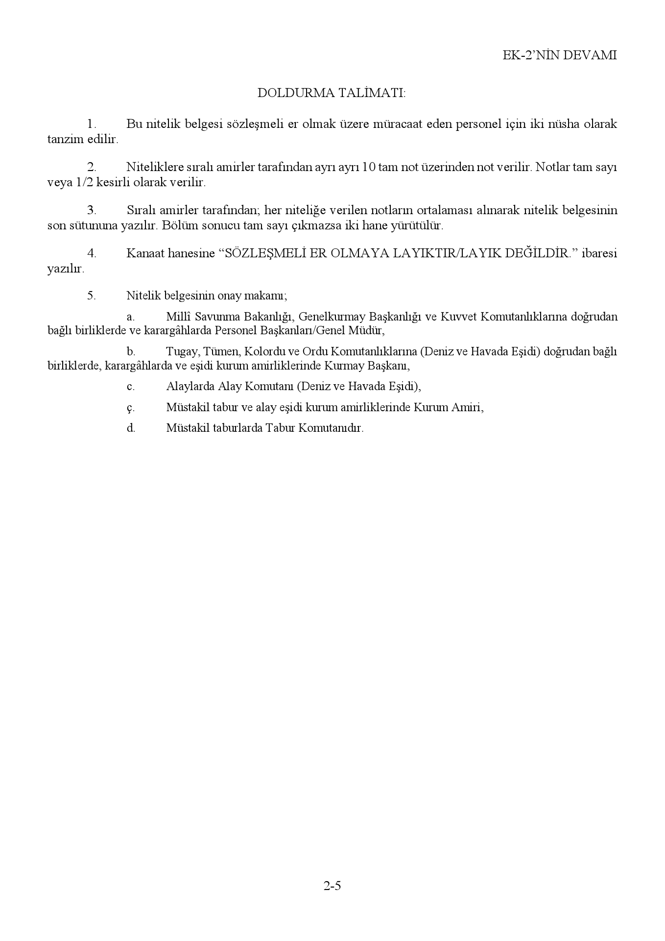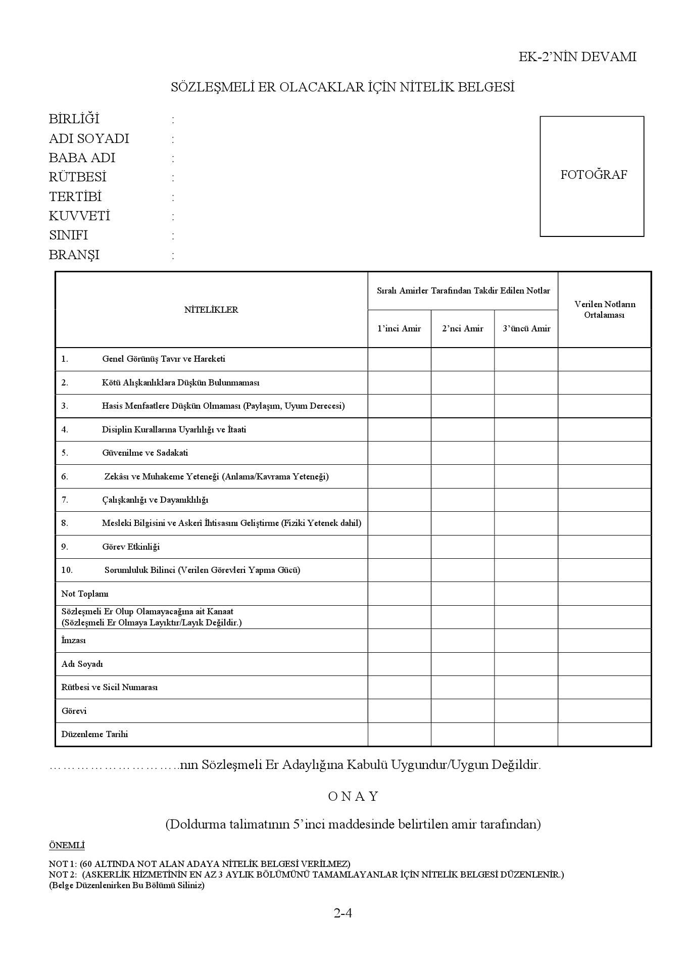 (b) Sözleşmeli Er Olacaklar İçin Nitelik Belgesi: Askerlik hizmetinin en az 3 aylık bölümünü tamamlayanlar adaylar için (Ek-2),
