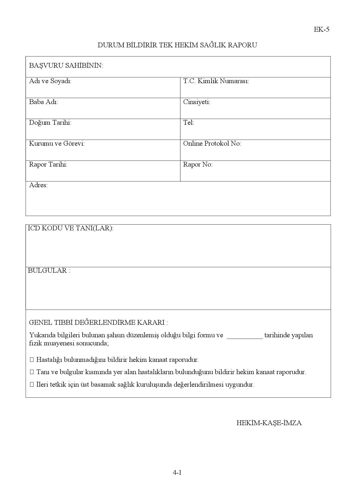 5- Durum Bildirir Tek Hekim Sağlık Raporu Örneği (1 Sayfa)